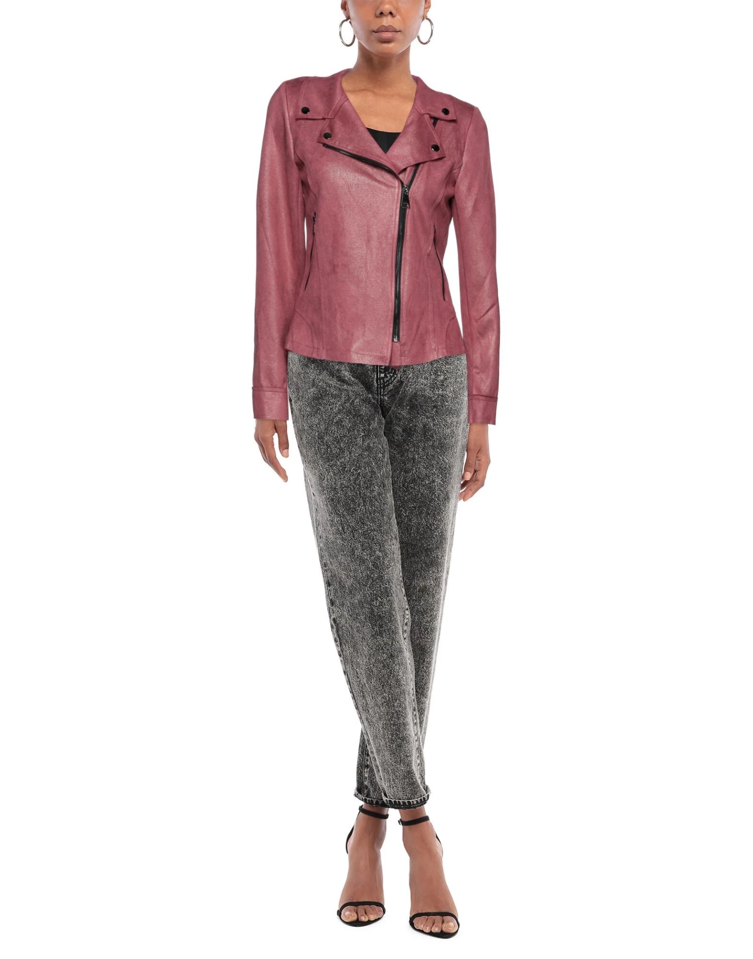 synthetic fibre, glitter, solid color, lapel collar, single-breasted , long sleeves, unlined, zipper closure, multipockets, suede effect, pocket with zipper