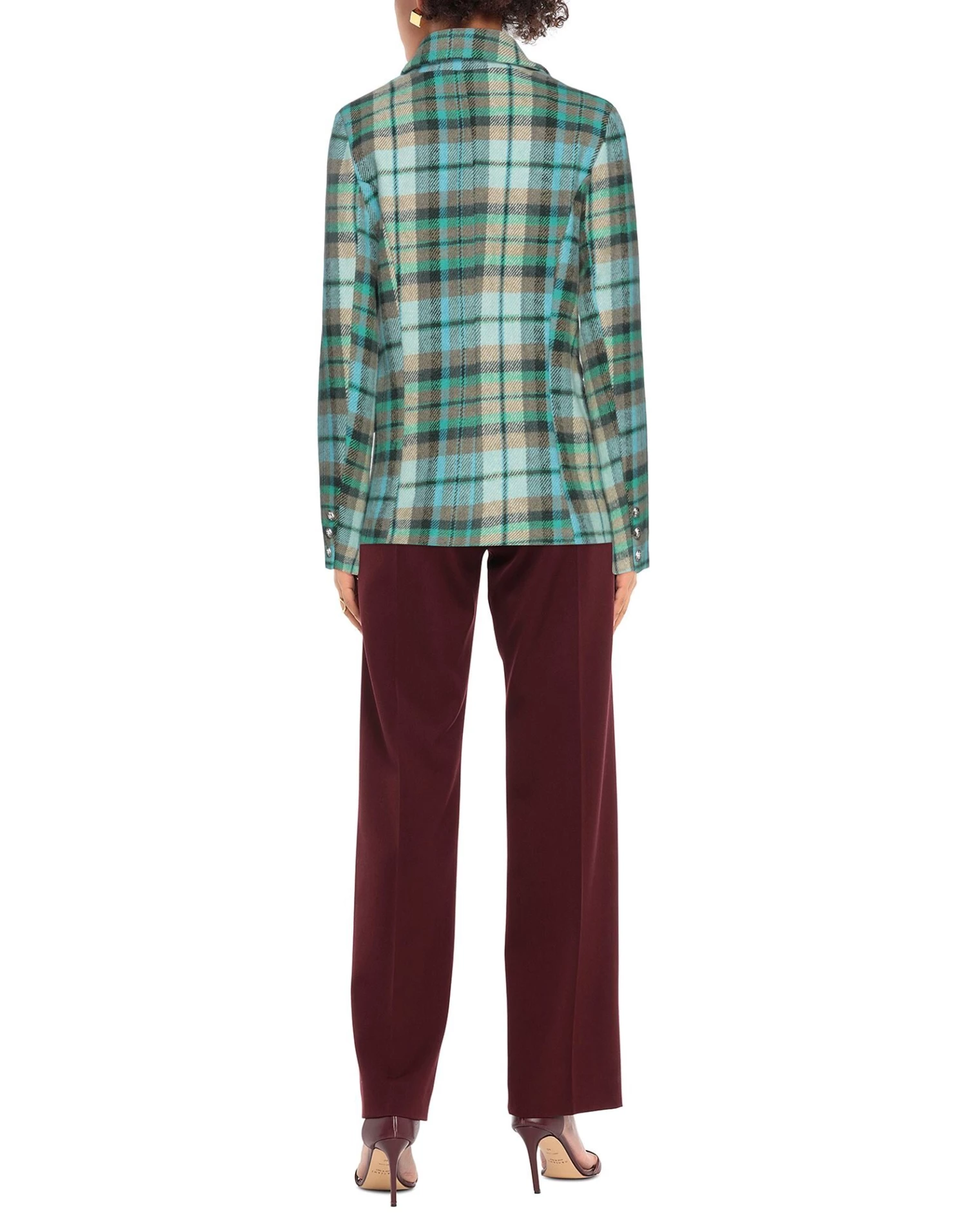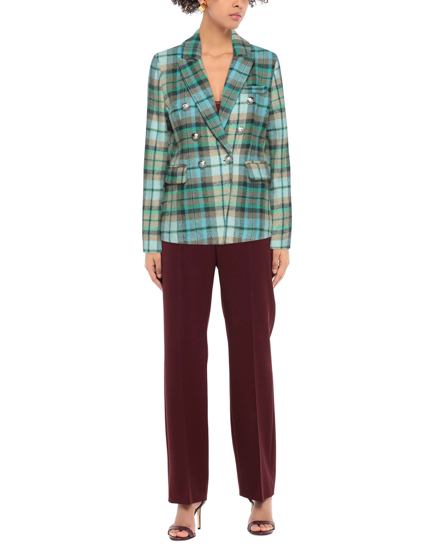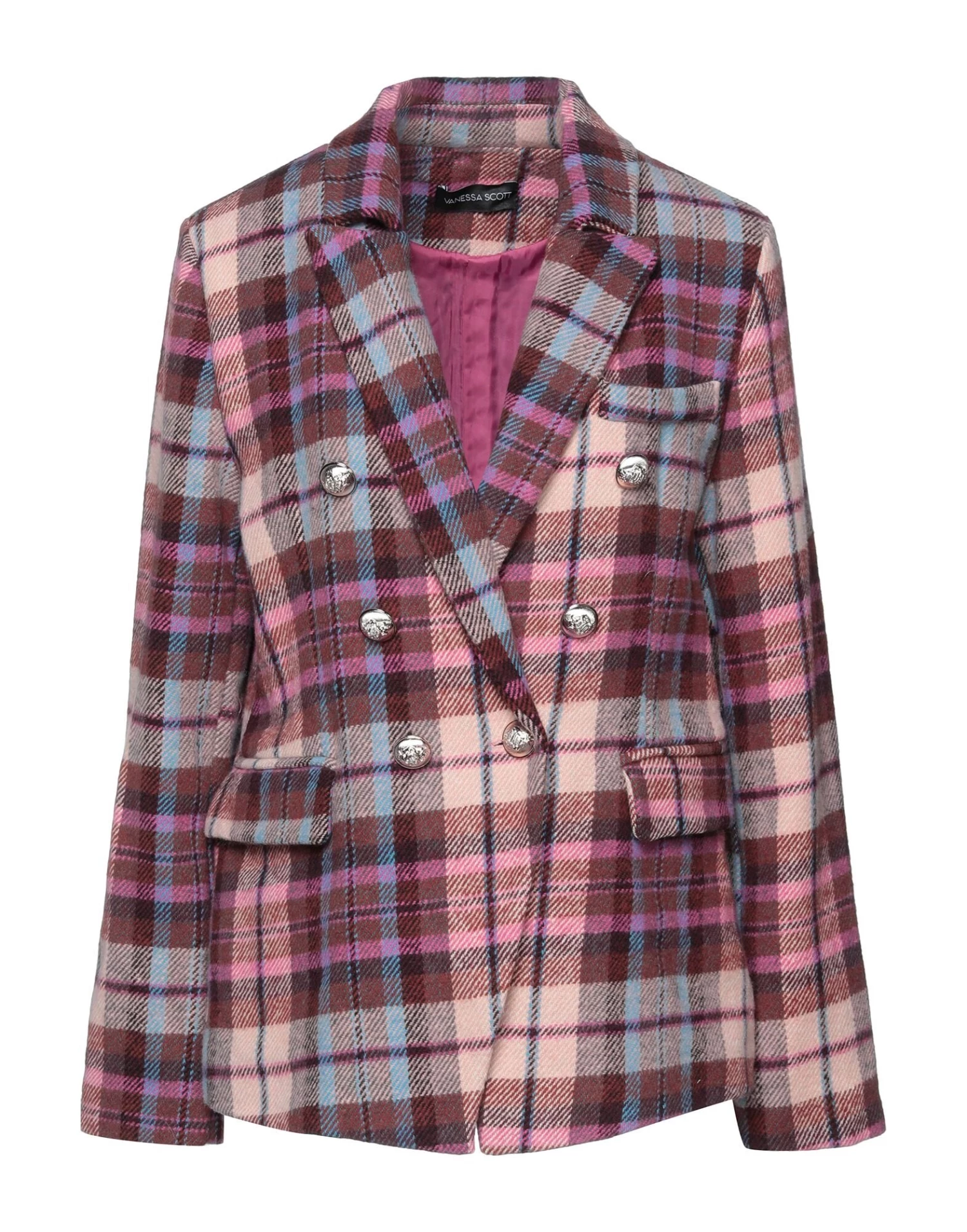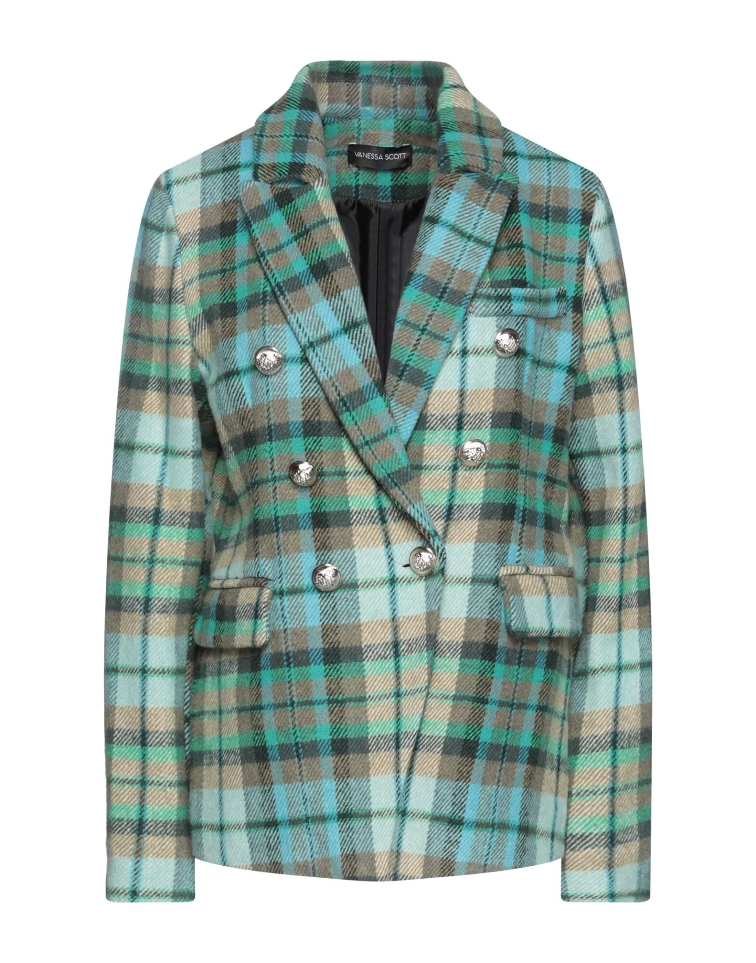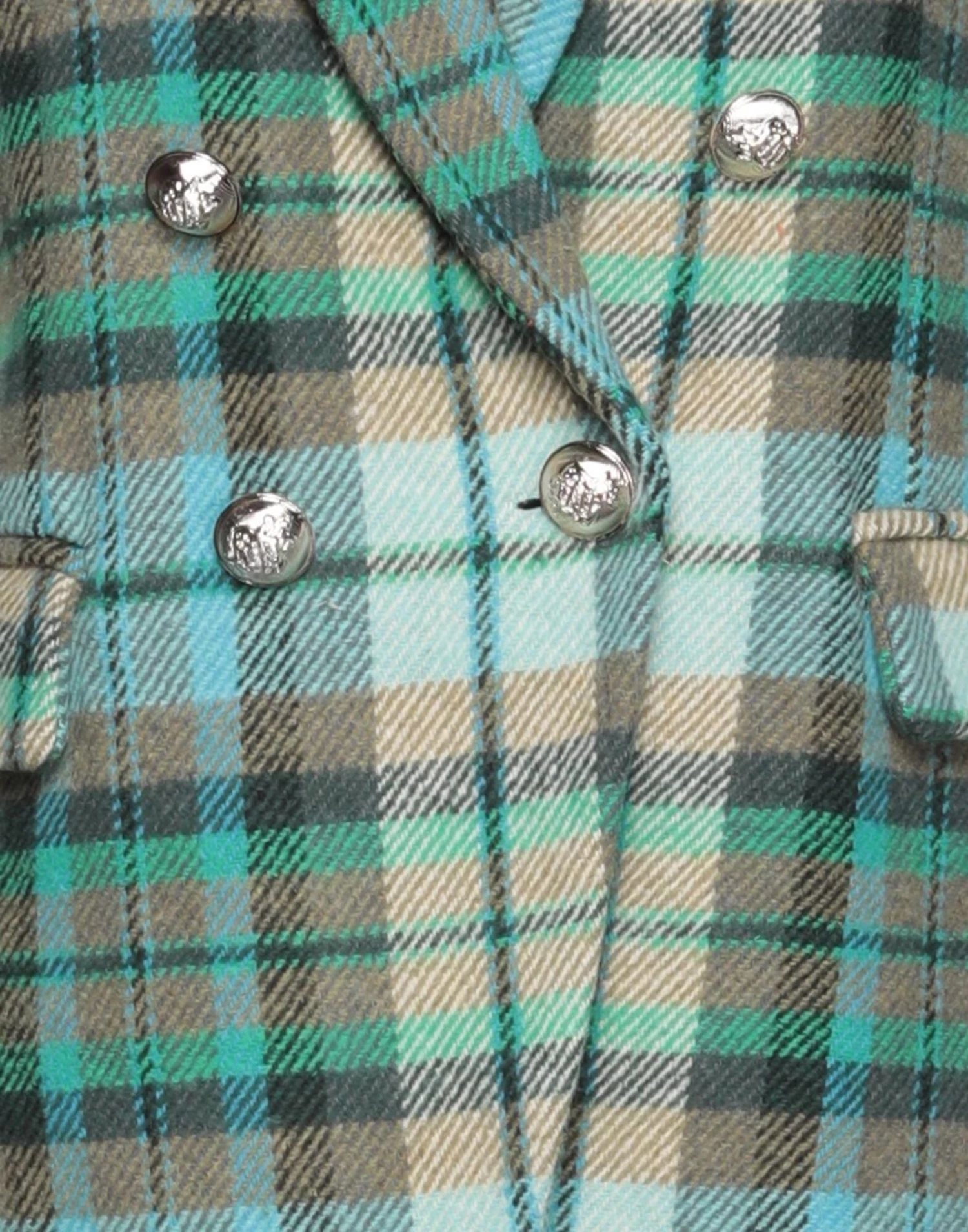 baize, contrasting applications, tartan pattern, lapel collar, double-breasted, long sleeves, fully lined, button closing, multipockets