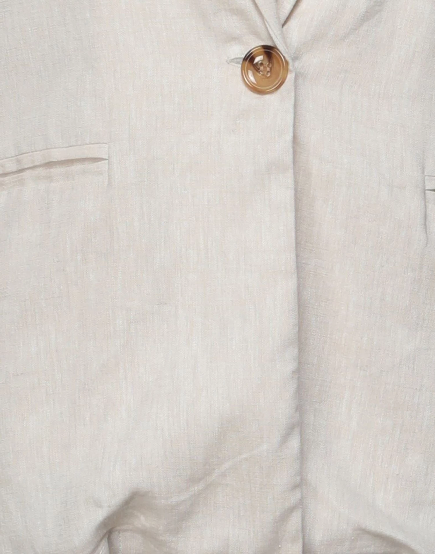 plain weave, no appliqués, solid color, single-breasted , lapel collar, long sleeves, unlined, 1 button, no pockets
