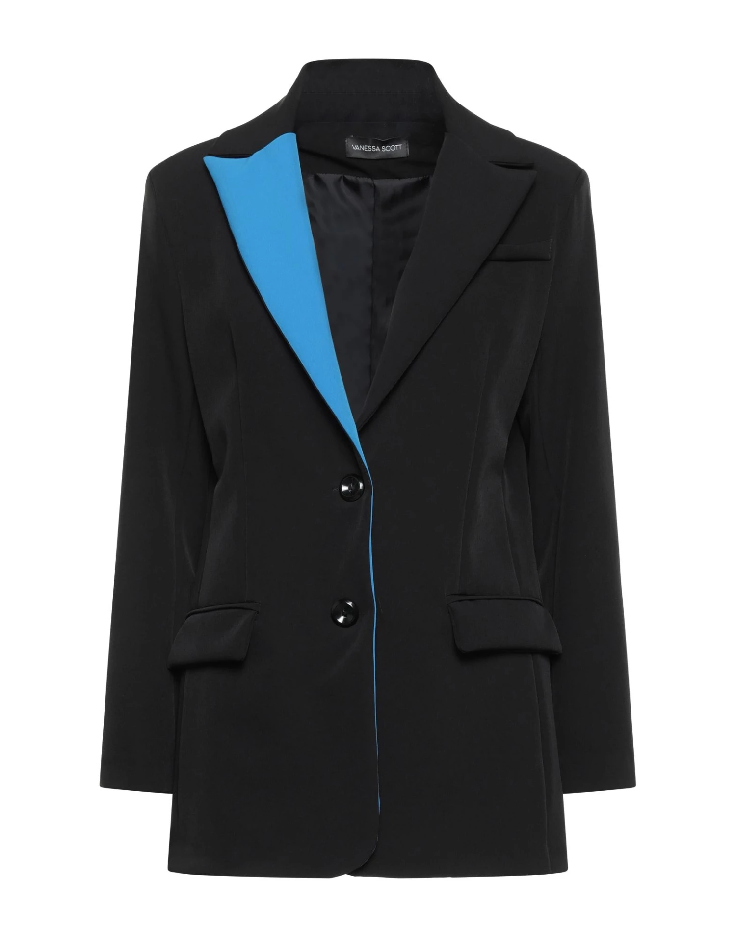 plain weave, no appliqués, two-tone, lapel collar, single-breasted , fully lined, 2 buttons, multipockets, pocket with flap, long sleeves, stretch