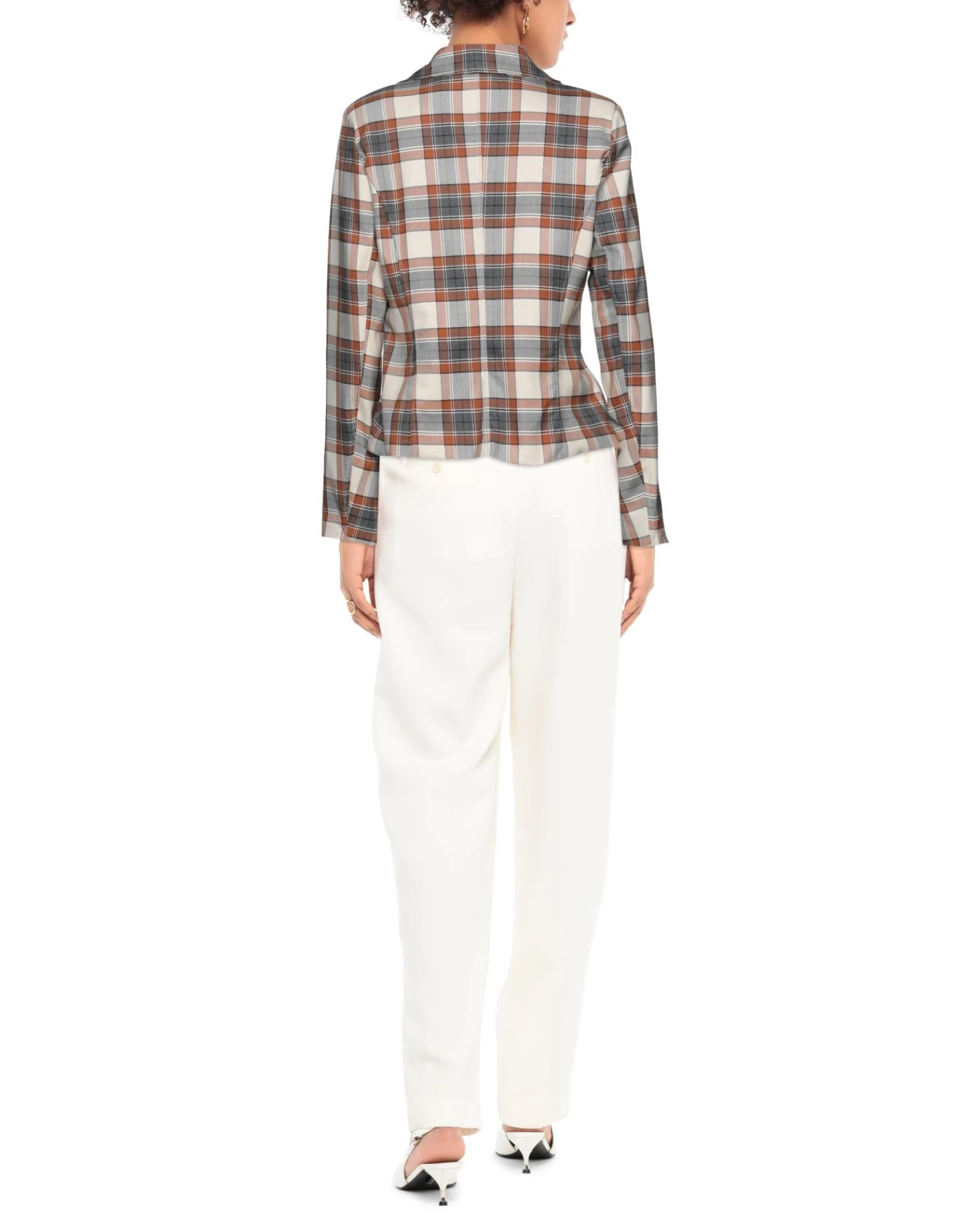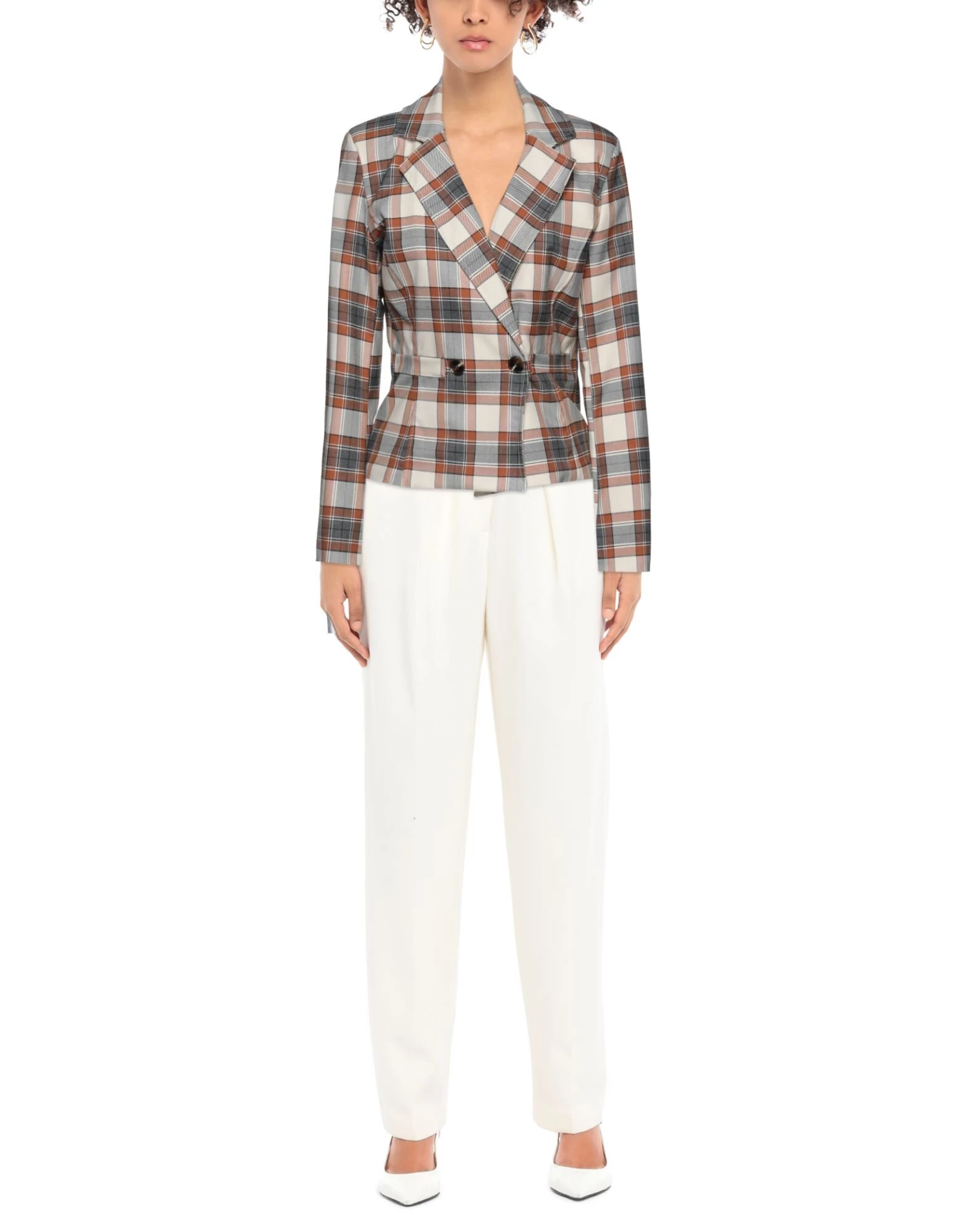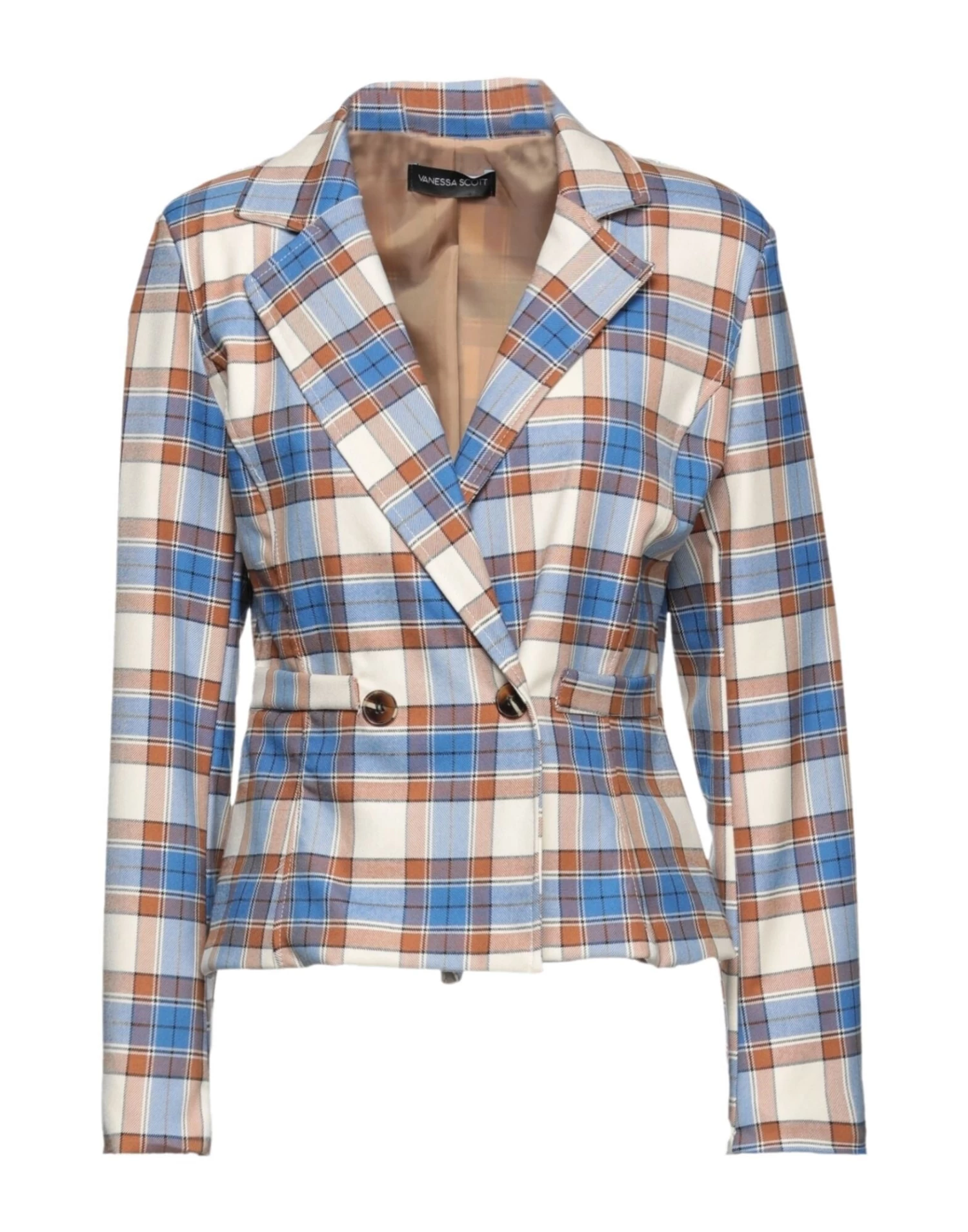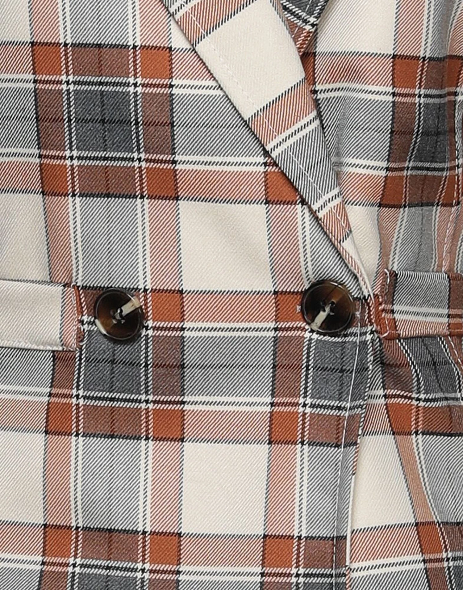 plain weave, no appliqués, lapel collar, tartan pattern, double-breasted, long sleeves, 2 buttons, multipockets, stretch, fully lined