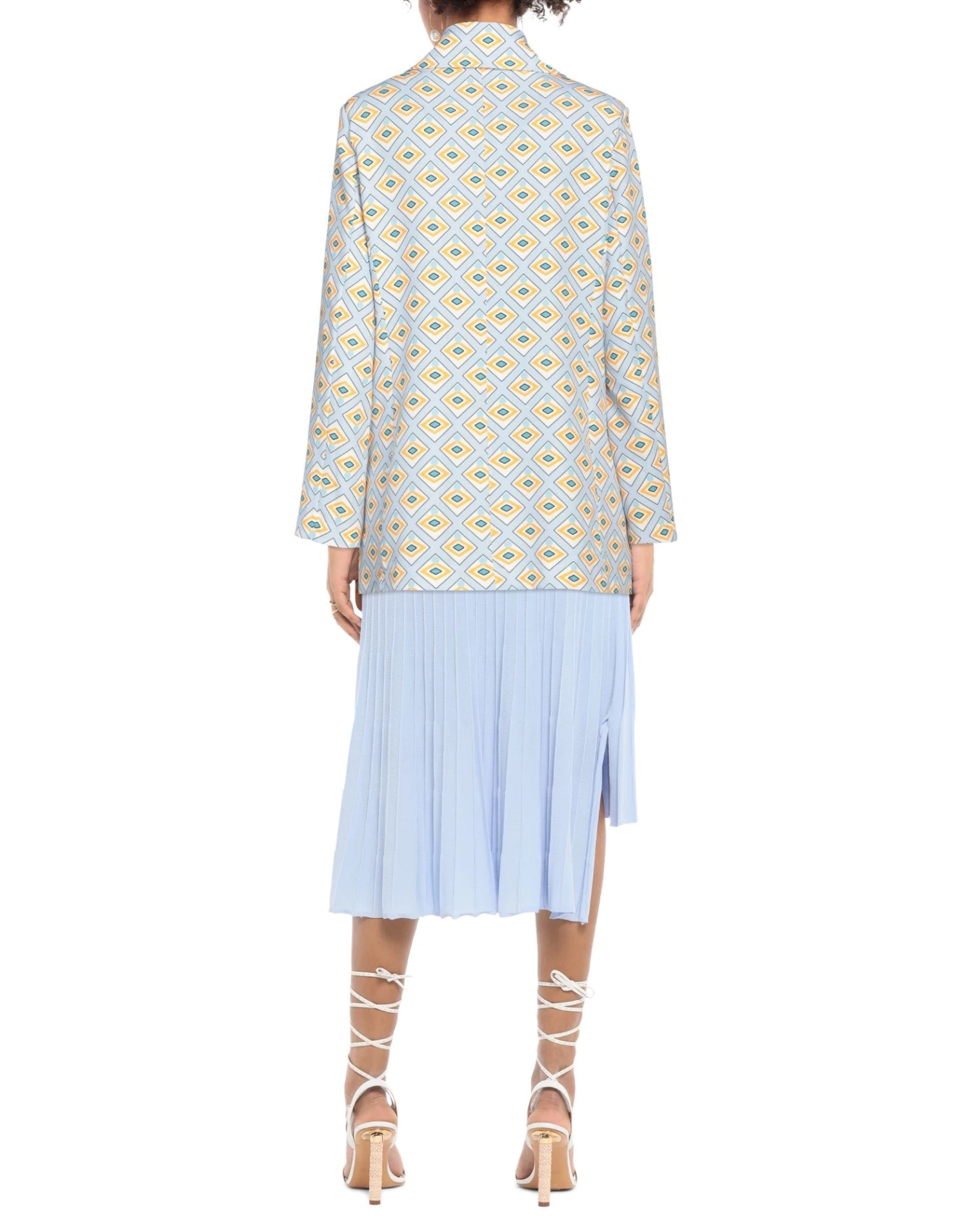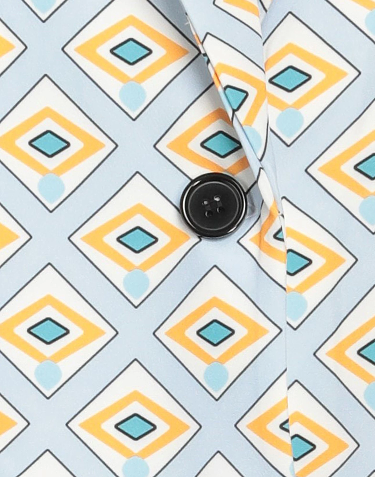 crepe, no appliqués, geometric design, multicolor pattern, single-breasted , lapel collar, long sleeves, unlined, with shoulder pad, no pockets, stretch, single-breasted jacket