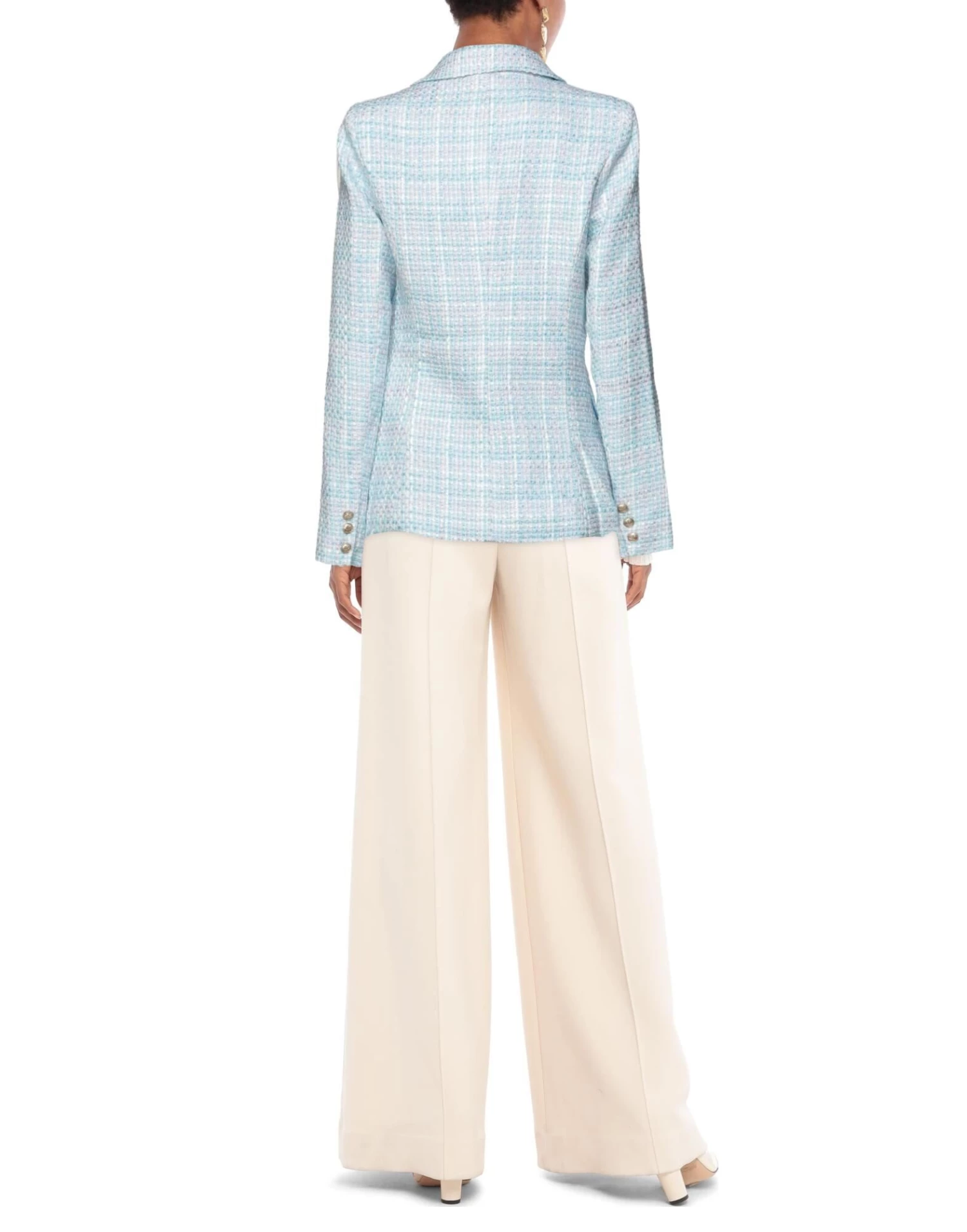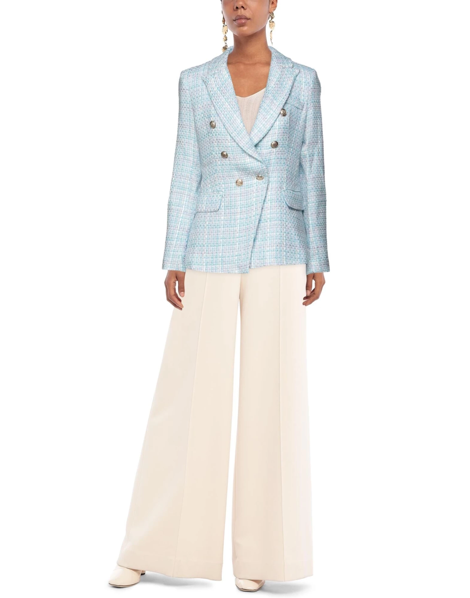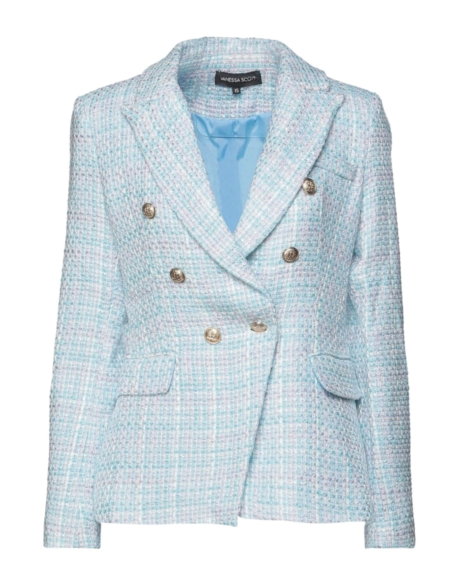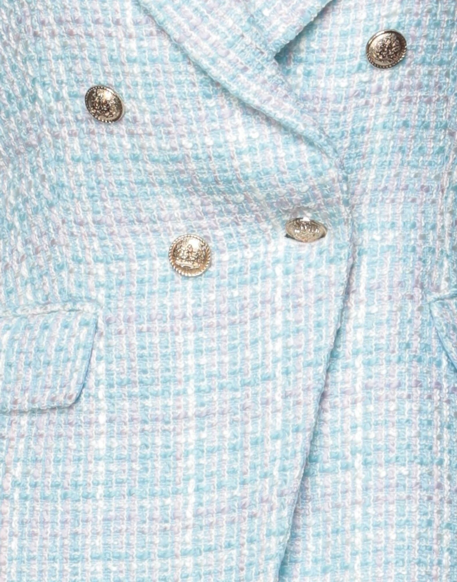 tweed, no appliqués, checked, lapel collar, double-breasted, long sleeves, fully lined, button closing, multipockets