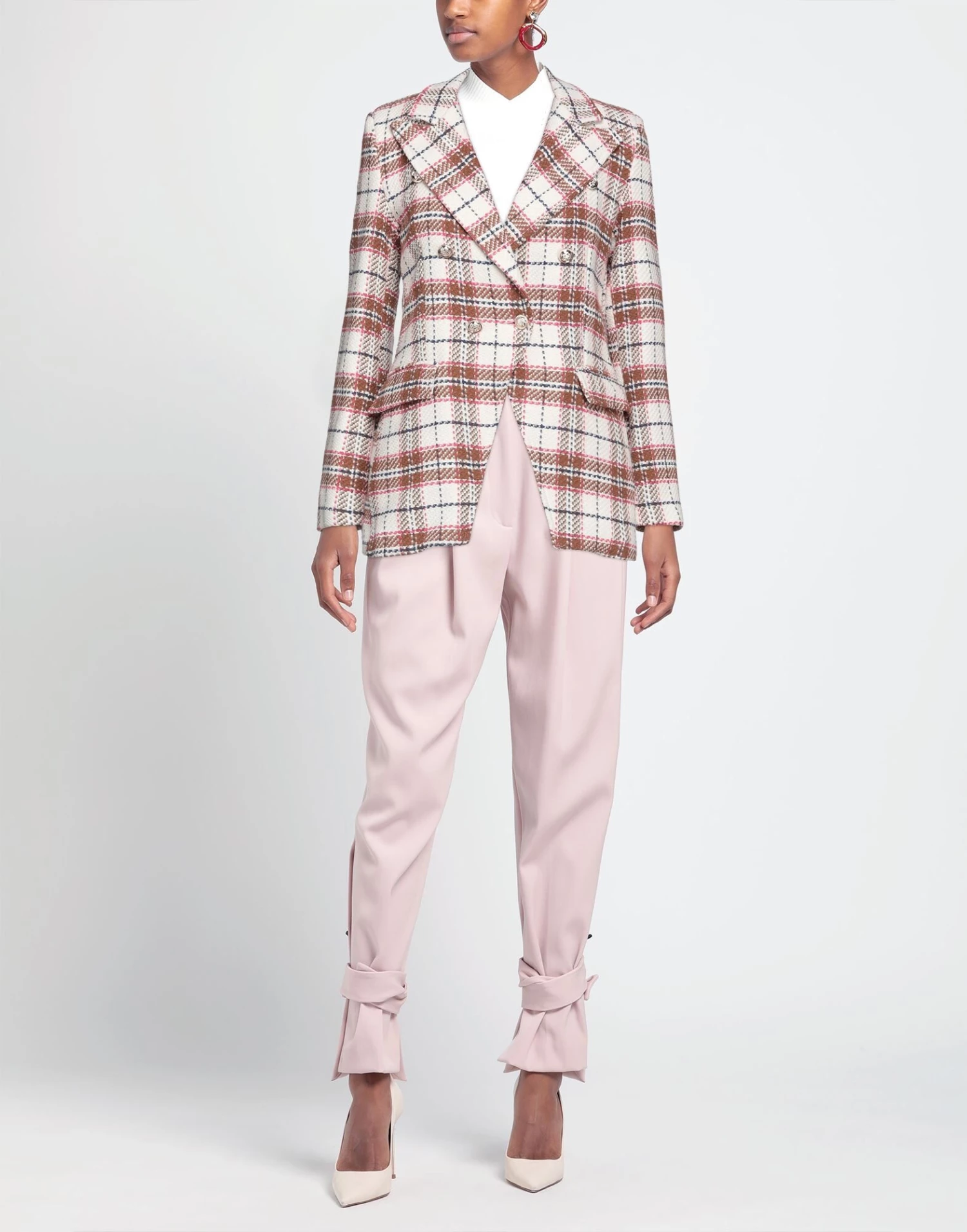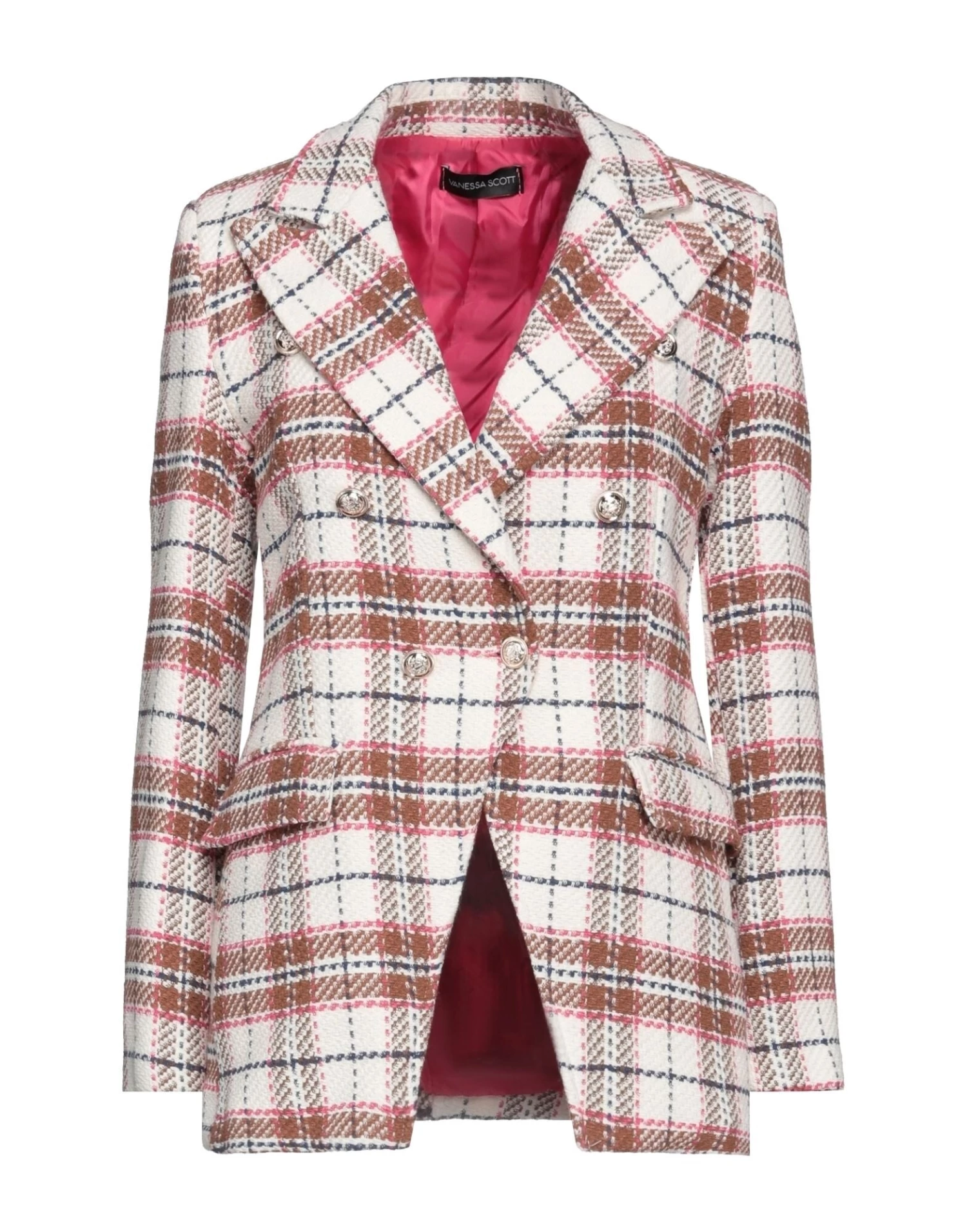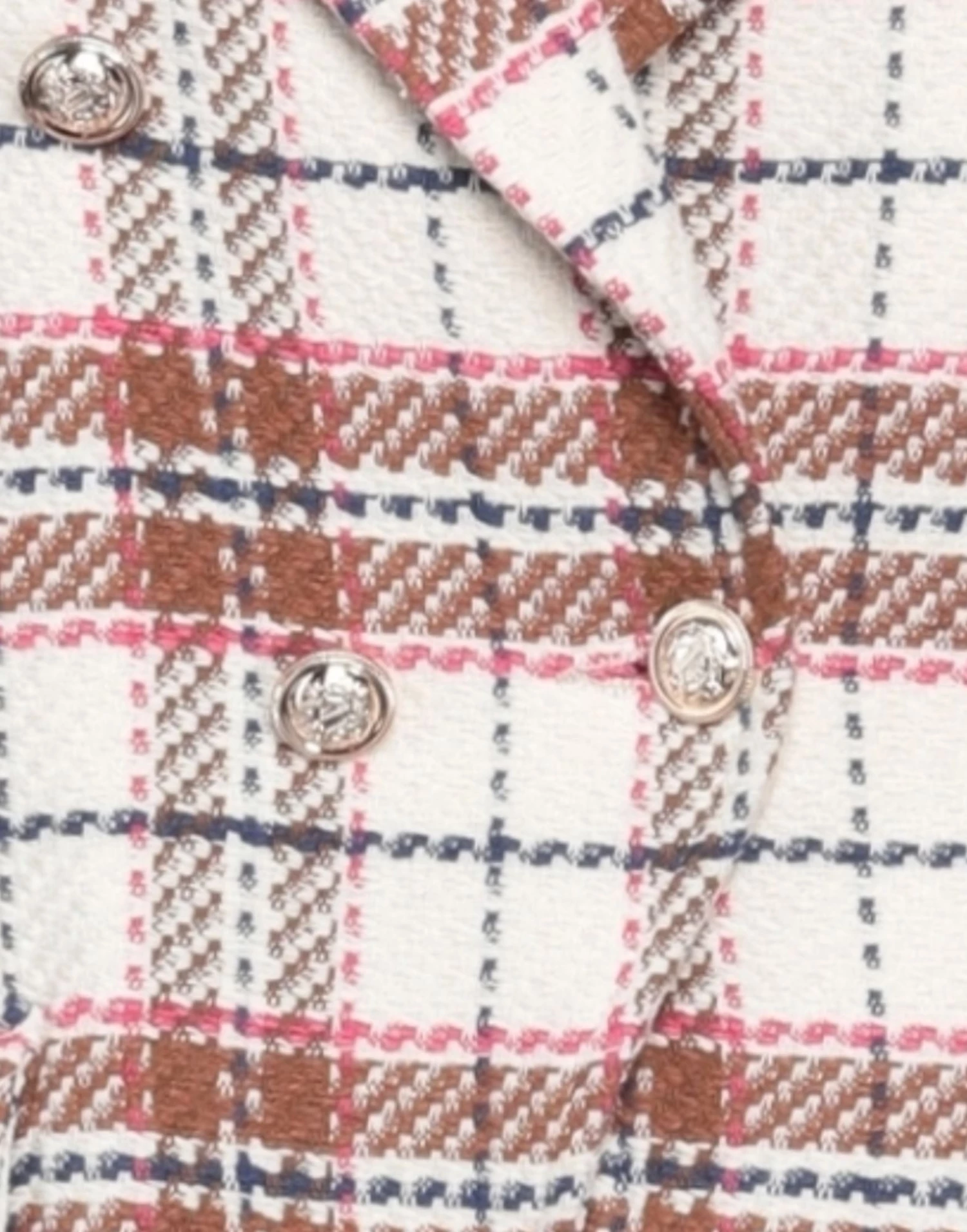 tweed, no appliqués, tartan pattern, lapel collar, double-breasted, long sleeves, with shoulder pad, fully lined, button closing, multipockets, double-breasted jacket