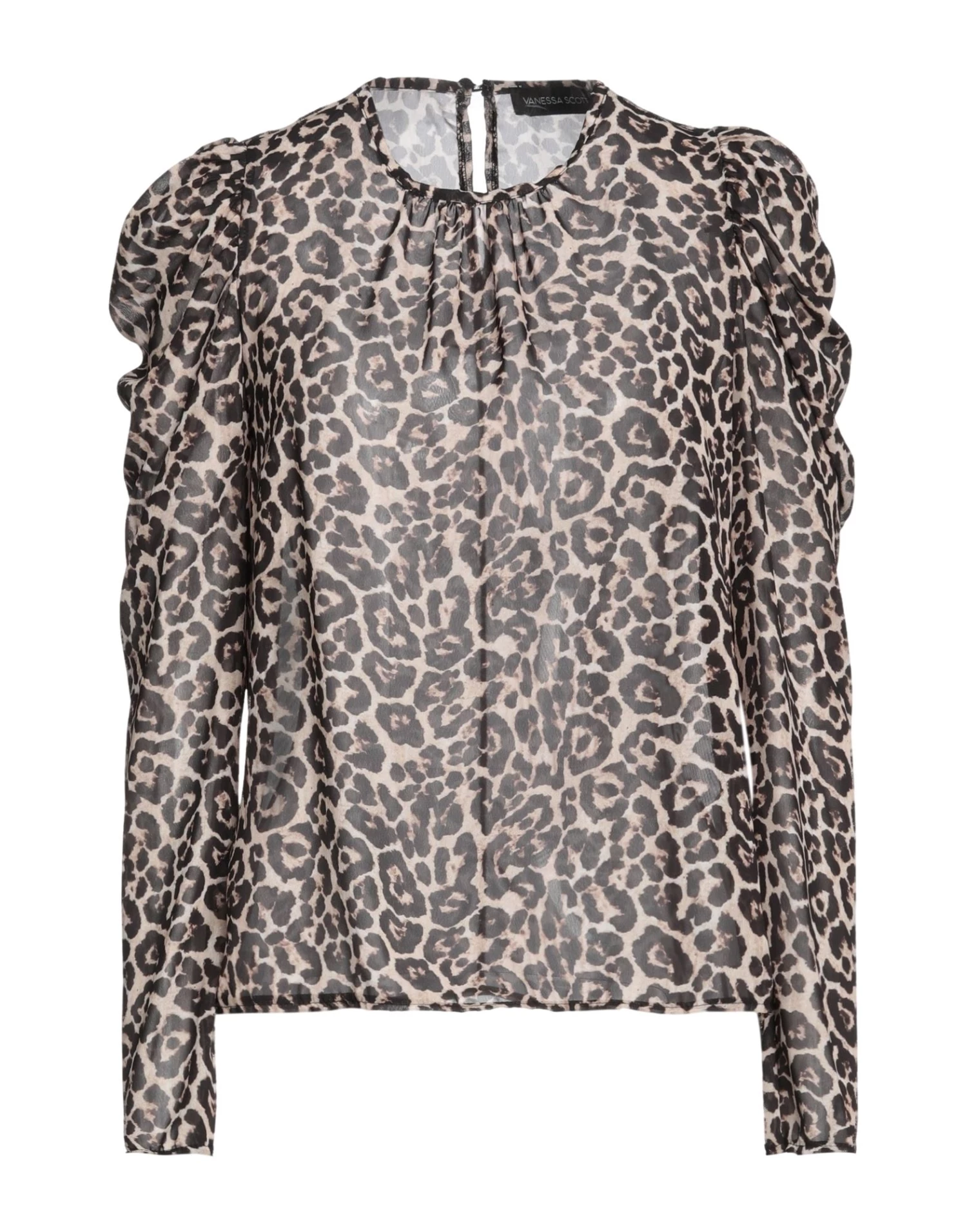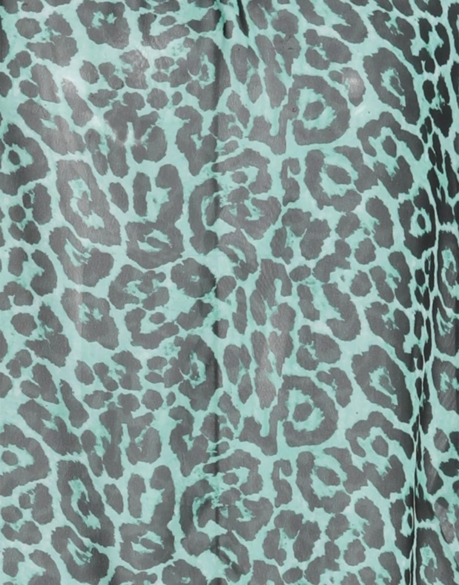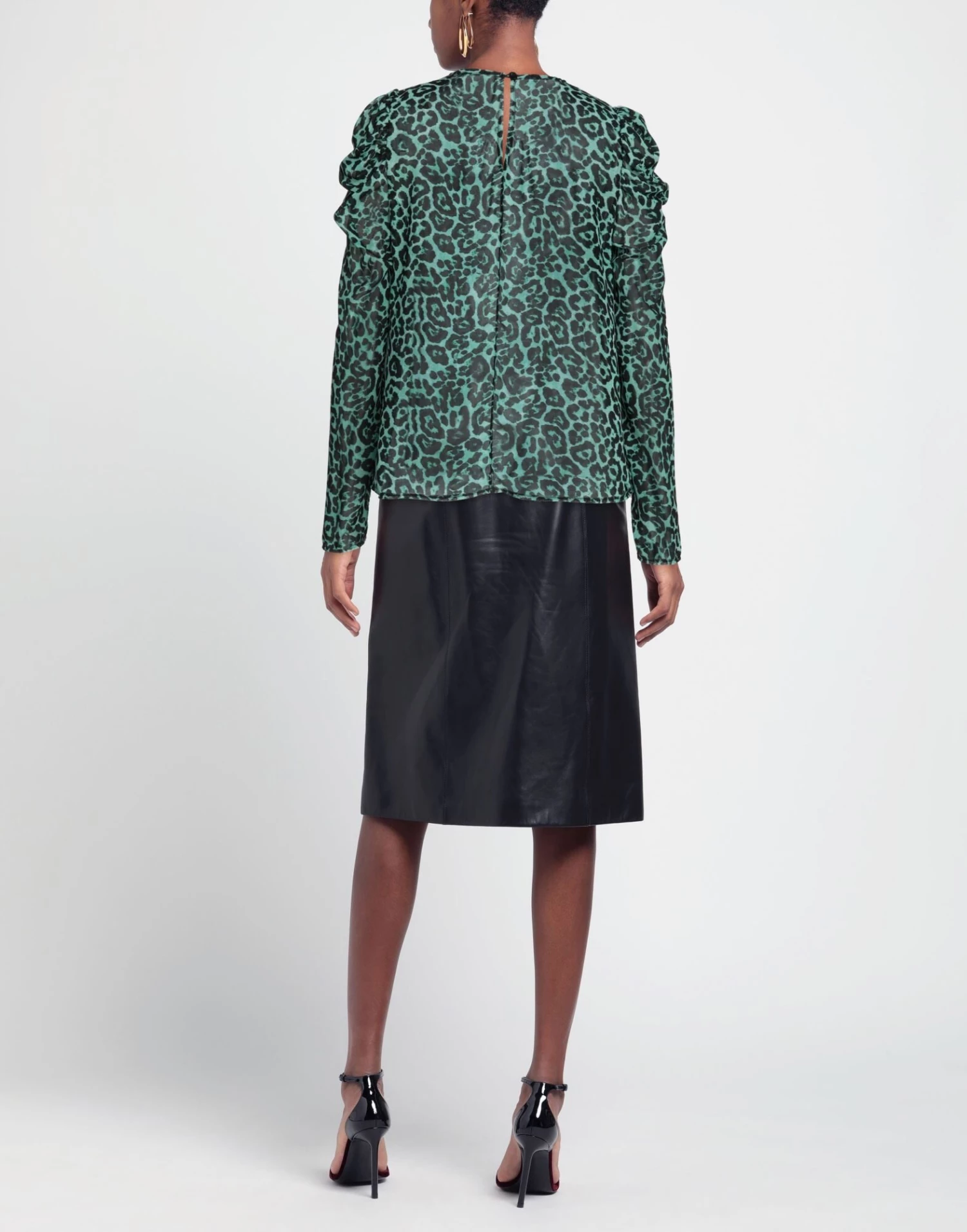 crepe, frills, leopard-print, round collar, long sleeves, 1 button, no pockets