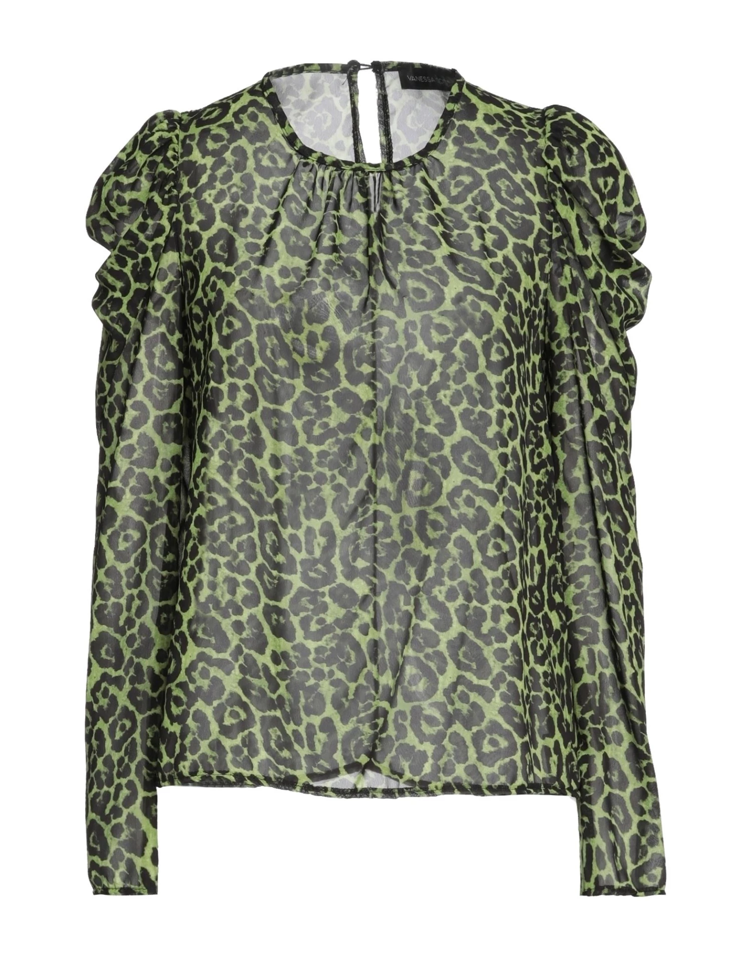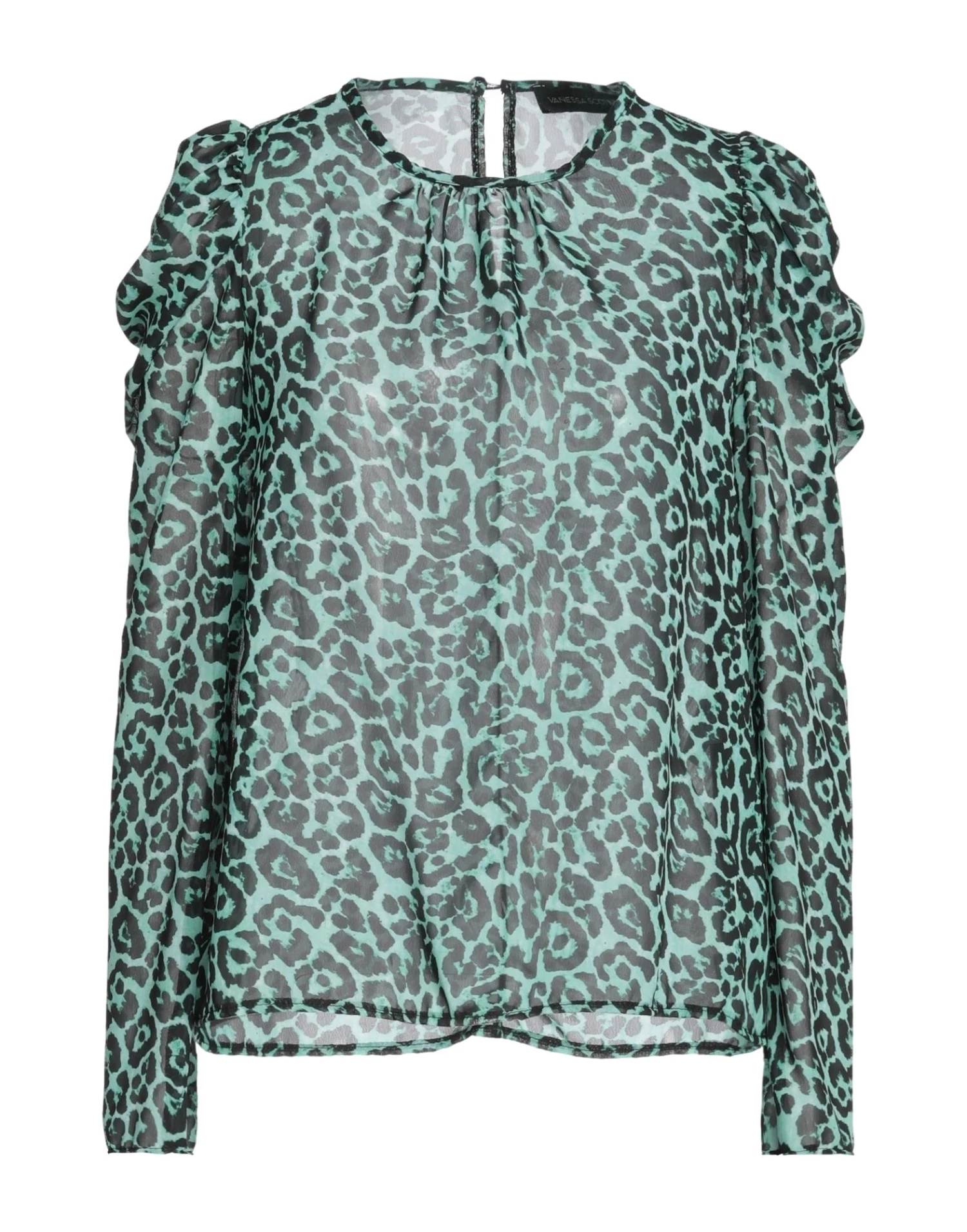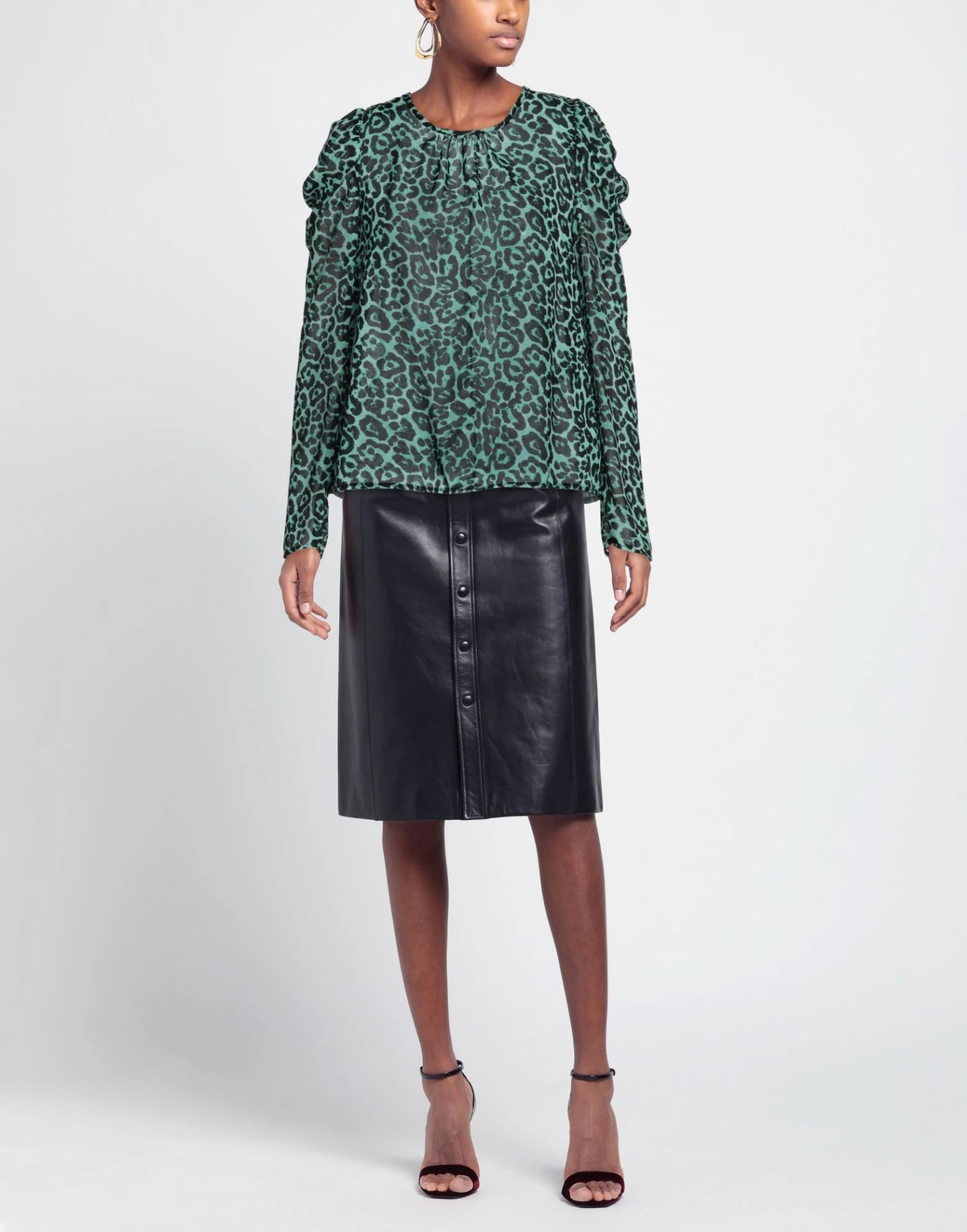 crepe, frills, leopard-print, round collar, long sleeves, 1 button, no pockets
