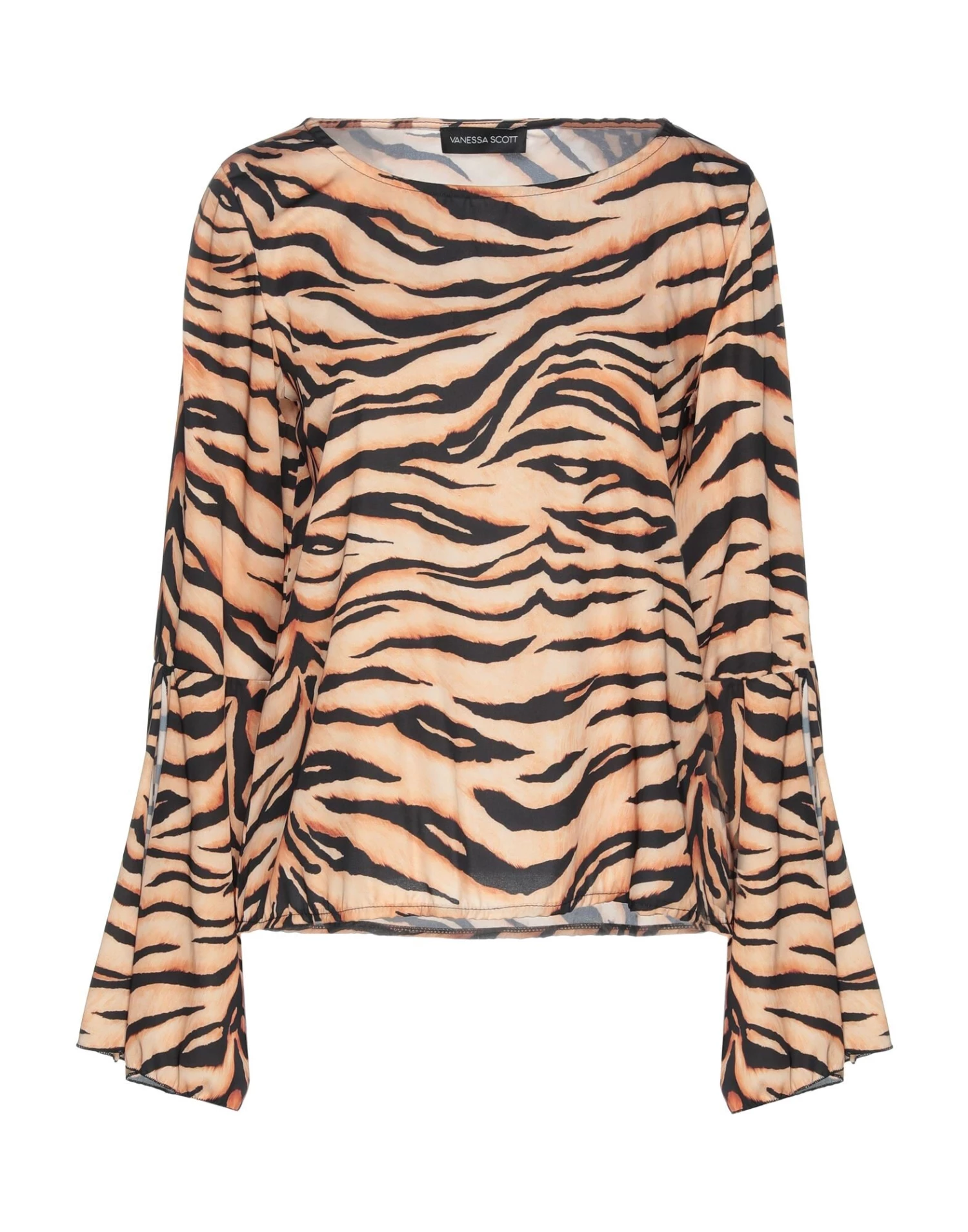 satin, no appliqués, tiger stripes, round collar, long sleeves, no pockets