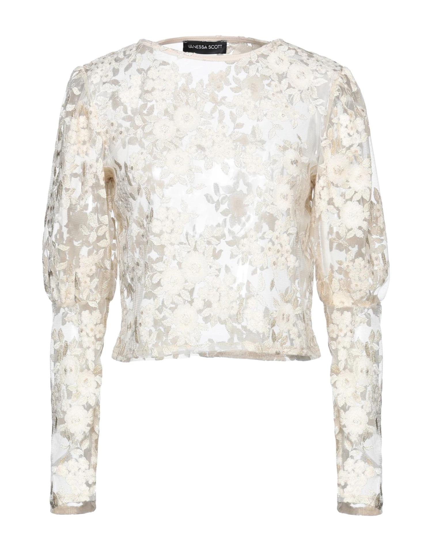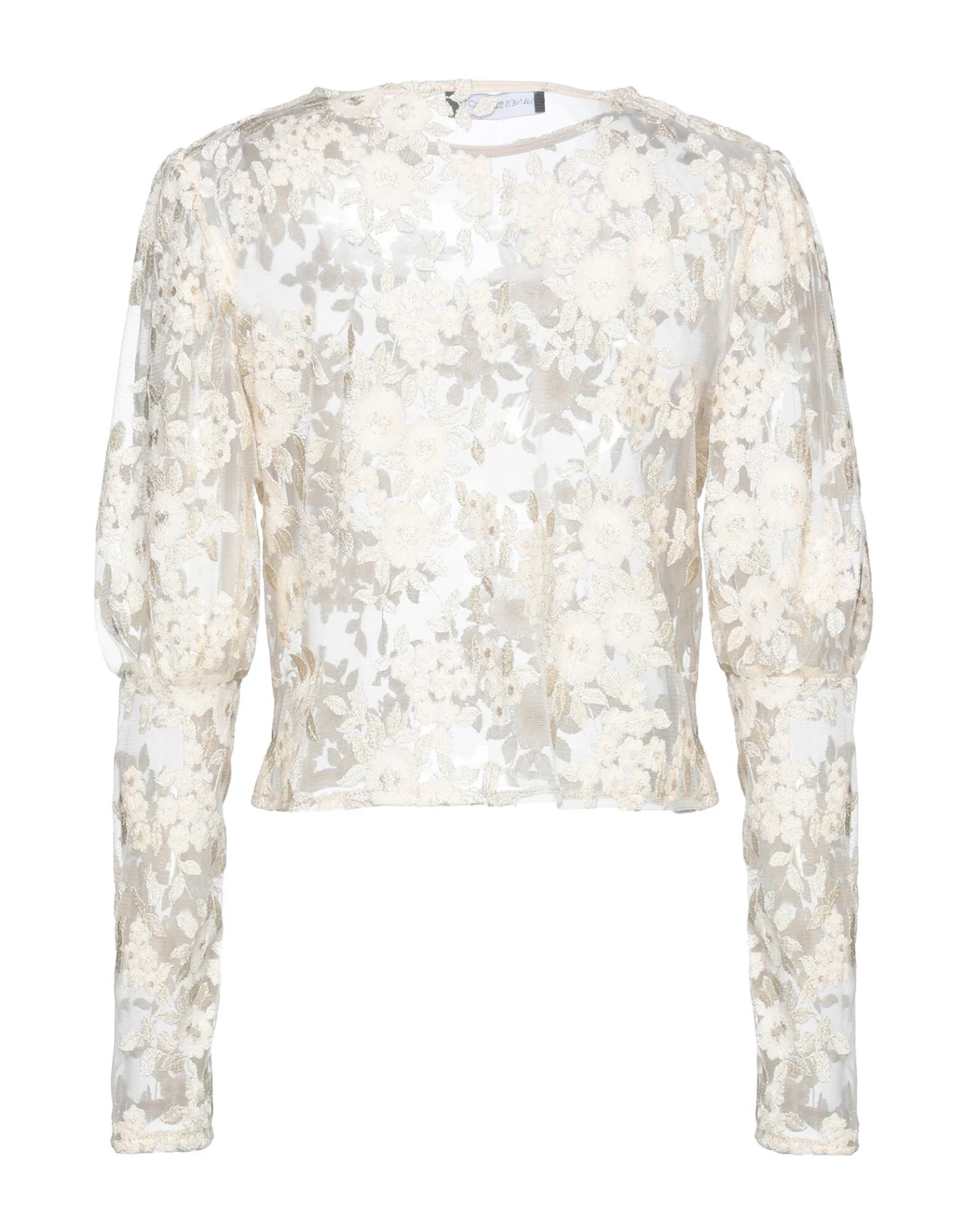 tulle, embroidered detailing, lamé, floral design, round collar, long sleeves, no pockets