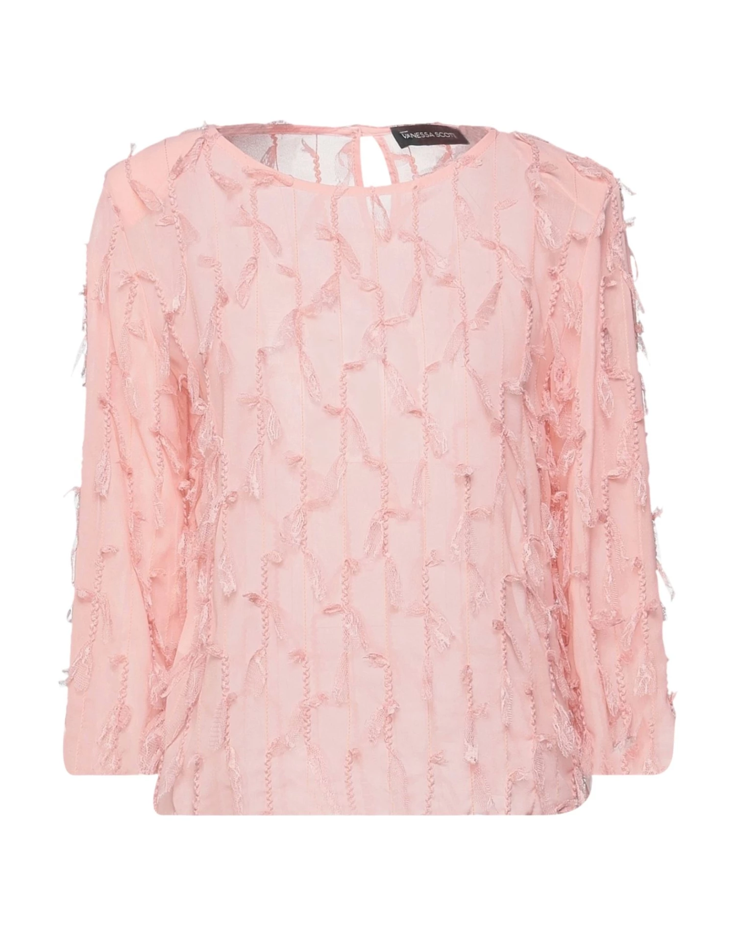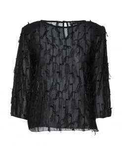 lace, crepe, contrasting applications, solid color, round collar, 1 button, no pockets, with shoulder pad, 3/4 length sleeves