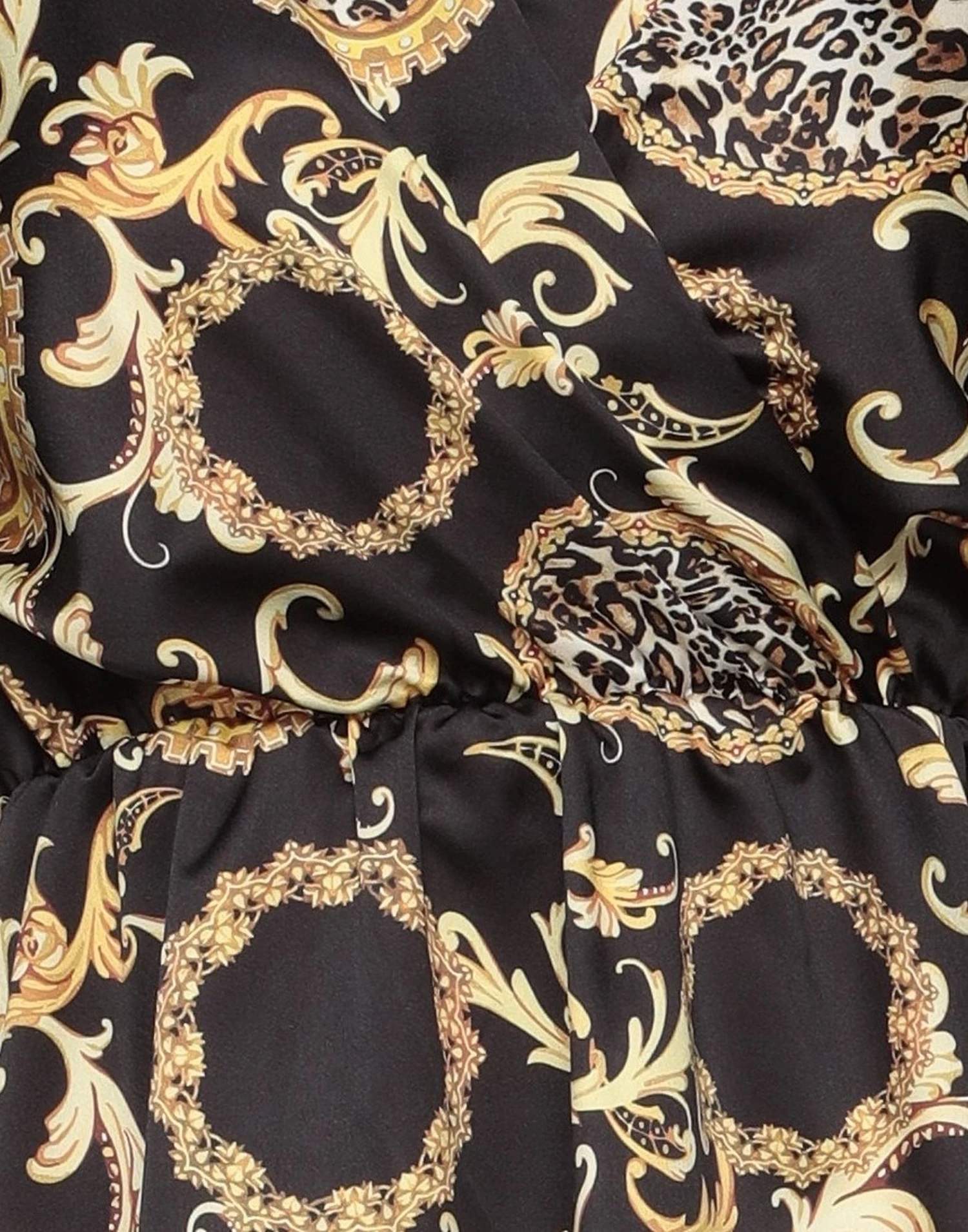 satin, no appliqués, leopard-print, floral design, deep neckline, long sleeves