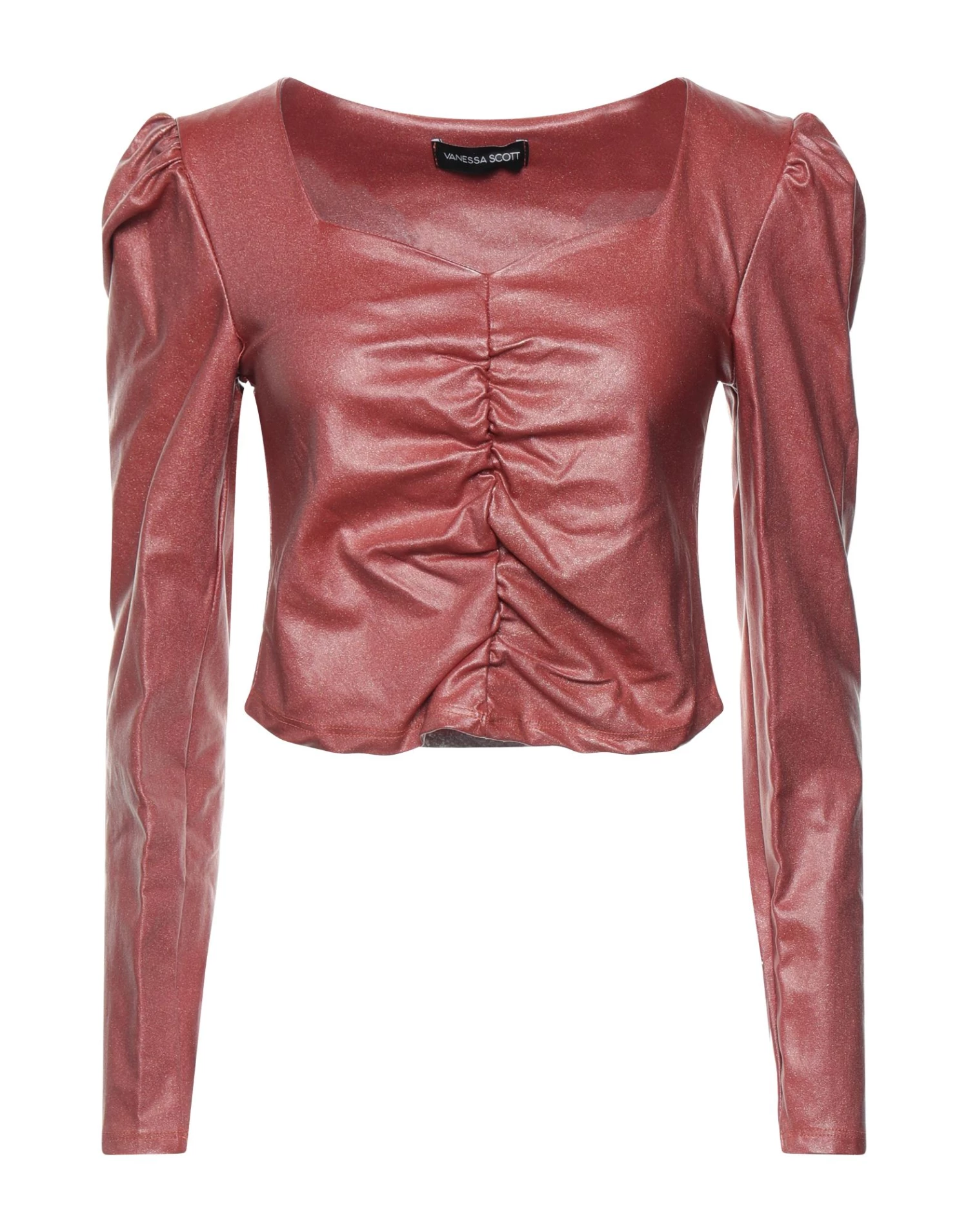jersey, coated effect, frills, glitter, solid color, deep neckline, long sleeves