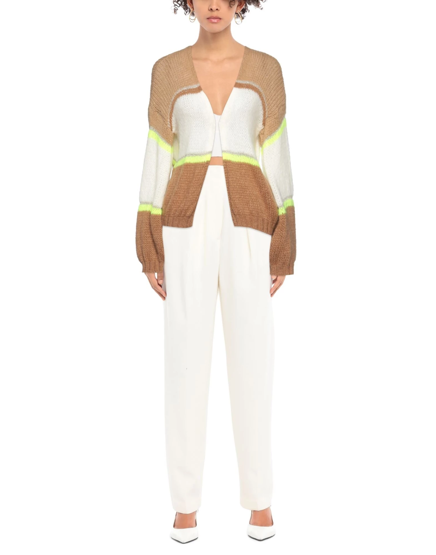 knitted, medium-weight knit, lamé, no appliqués, multicolor pattern, deep neckline, long sleeves, no pockets