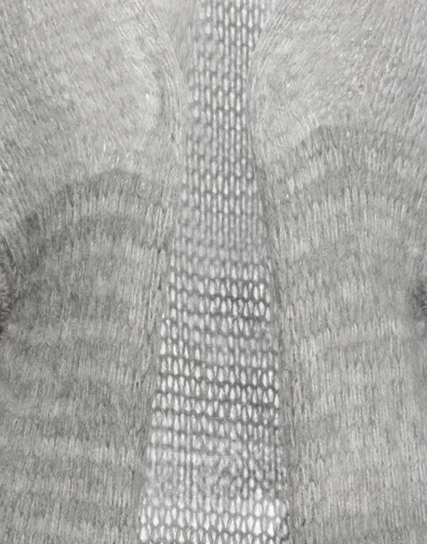 knitted, mélange, medium-weight knit, no appliqués, two-tone, deep neckline, long sleeves, no pockets