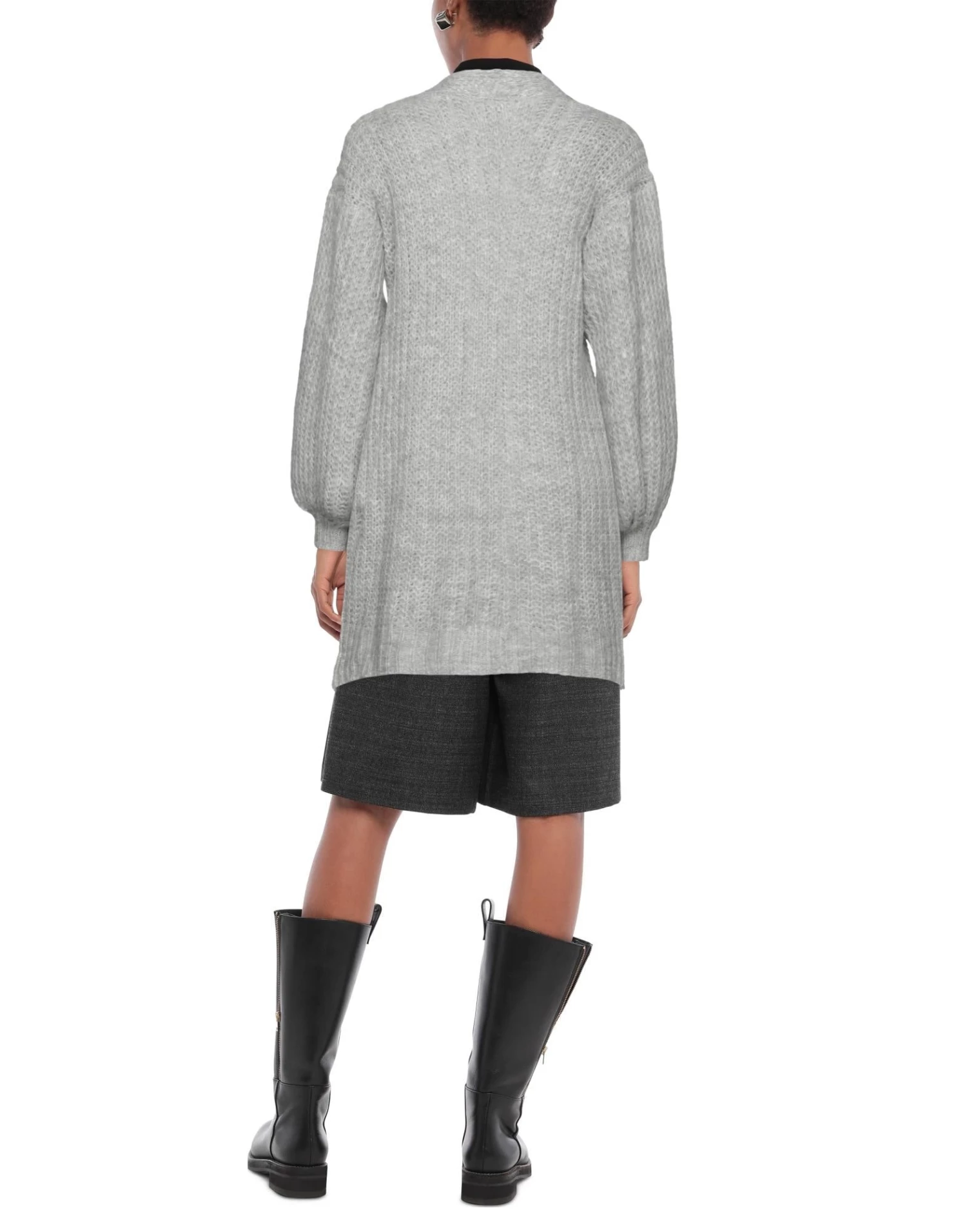 knitted, medium-weight knit, no appliqués, solid color, deep neckline, long sleeves, no pockets, mélange