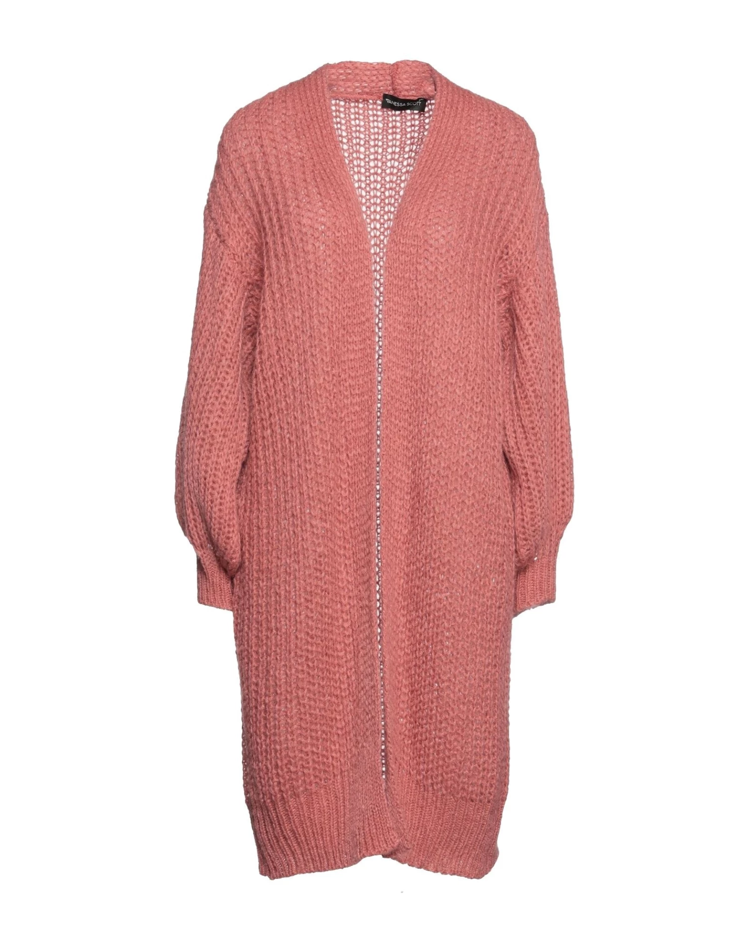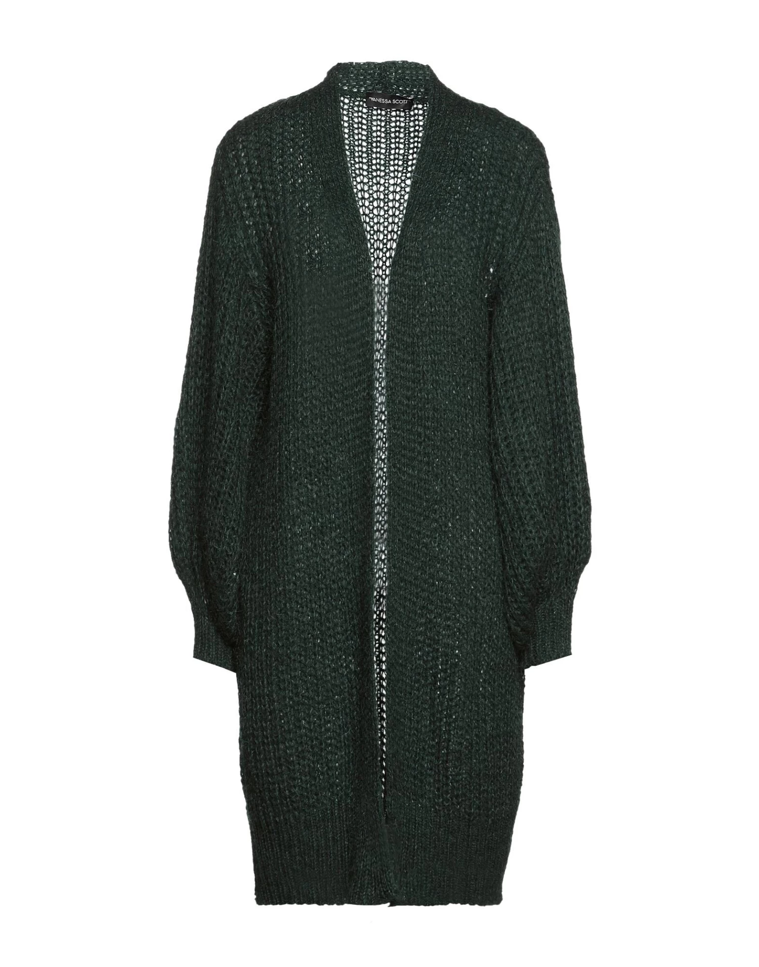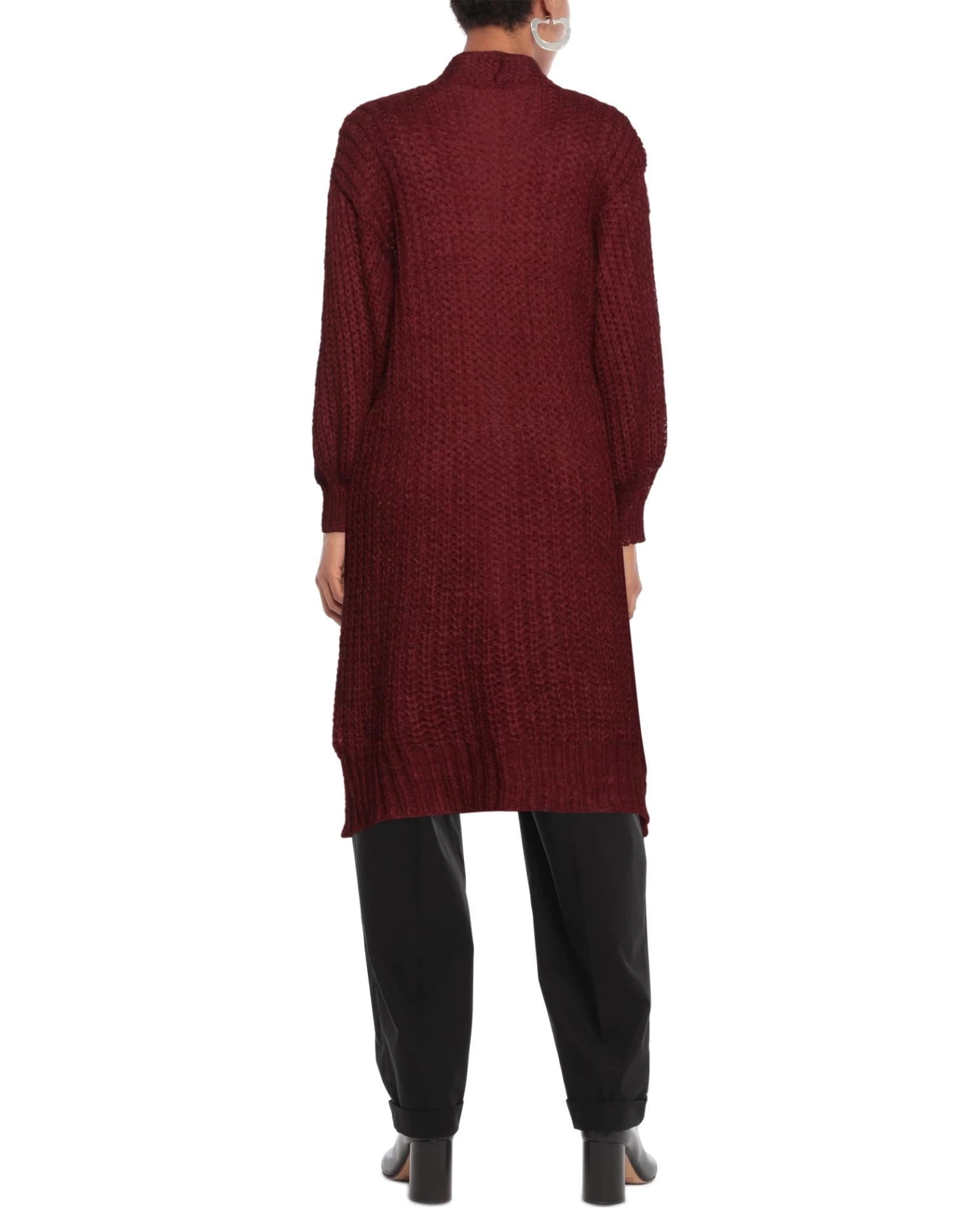 knitted, medium-weight knit, no appliqués, solid color, deep neckline, long sleeves, no pockets