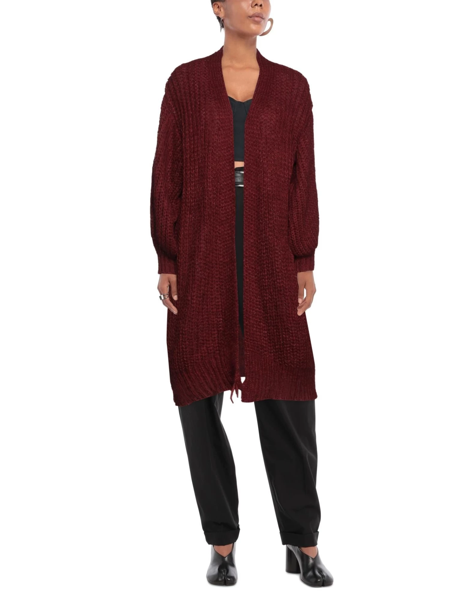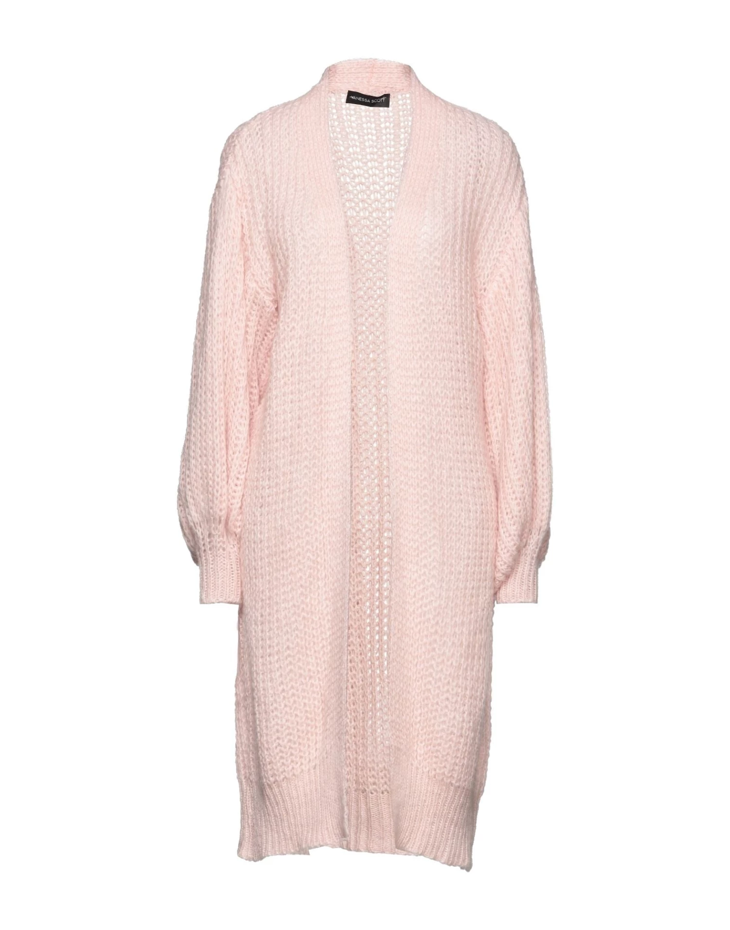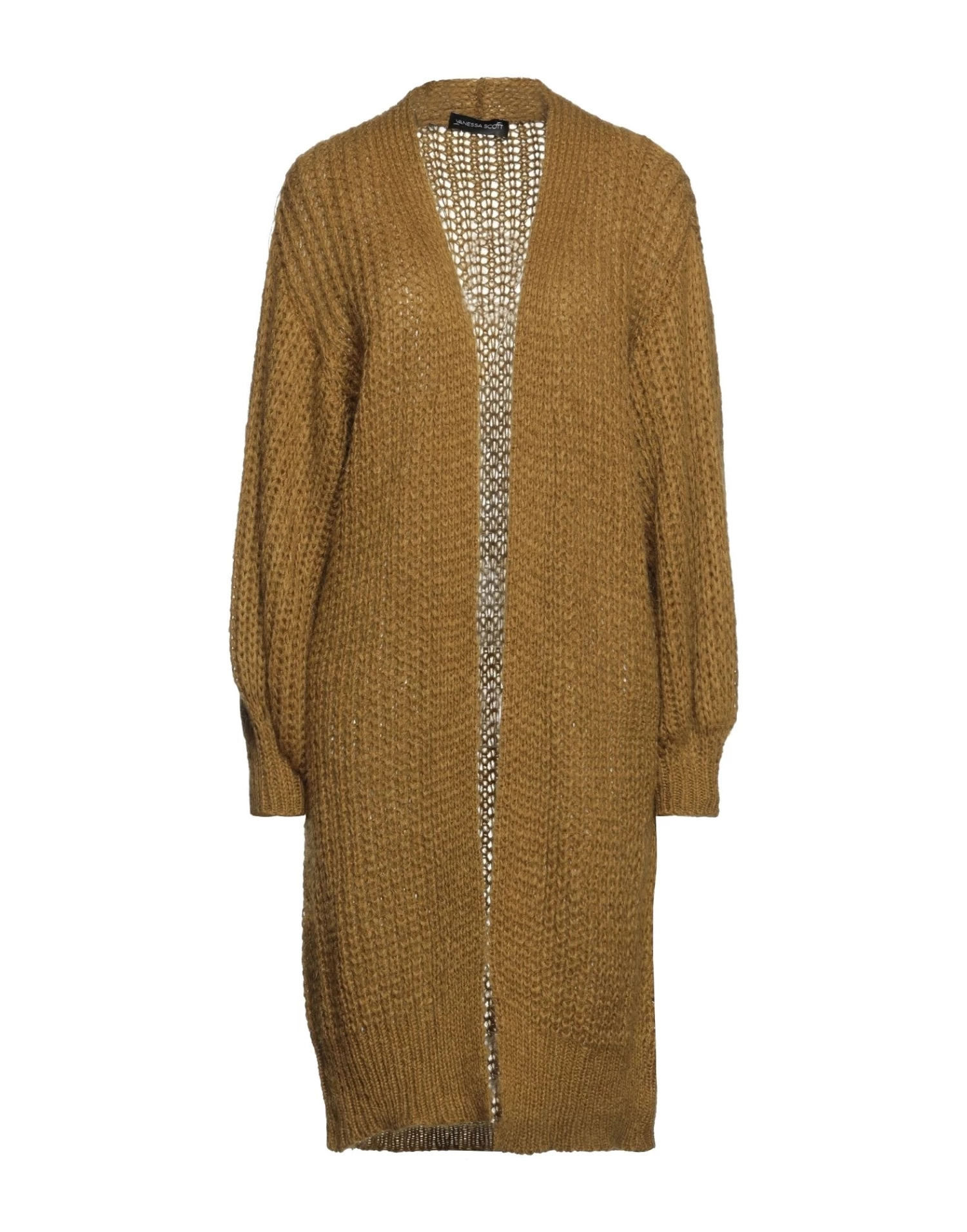 knitted, medium-weight knit, no appliqués, solid color, deep neckline, long sleeves, no pockets