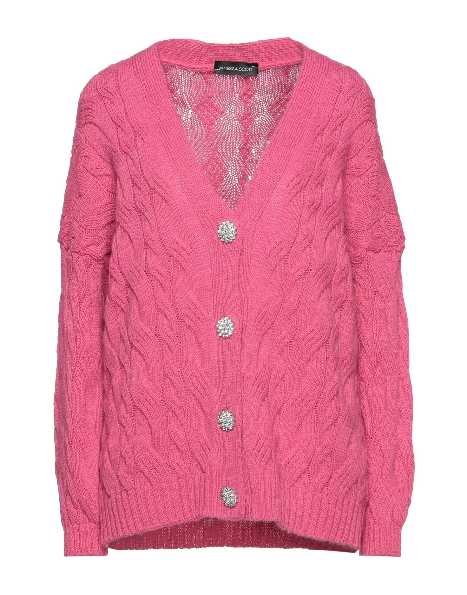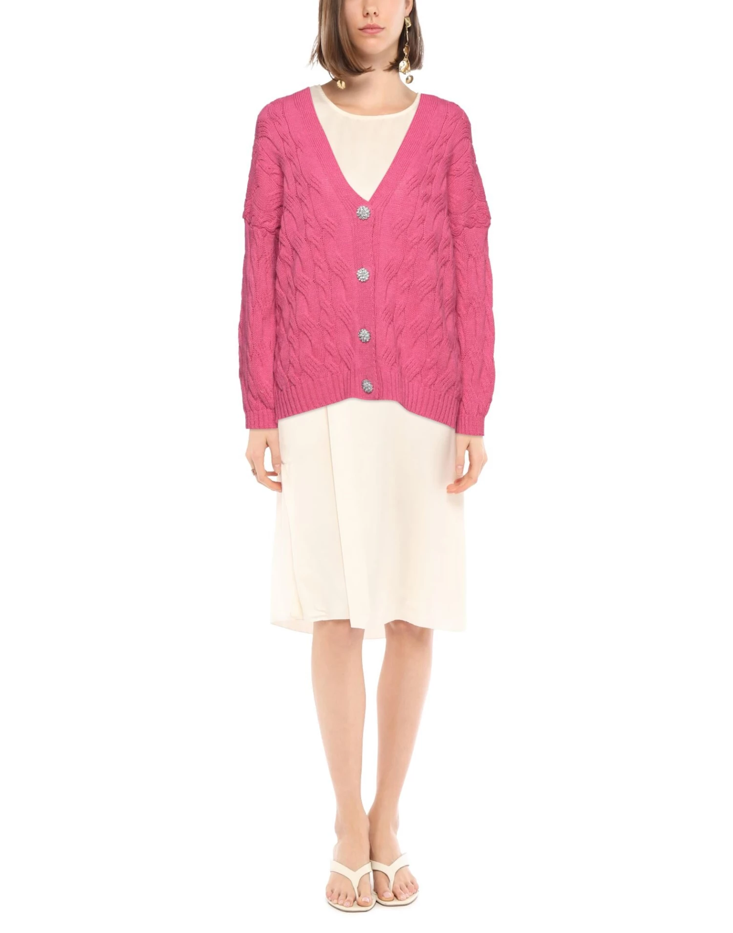 knitted, mélange, medium-weight knit, no appliqués, solid color, v-neck, long sleeves, button closing, no pockets