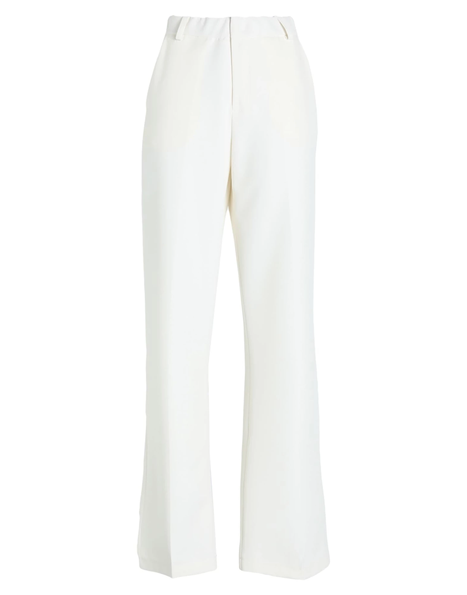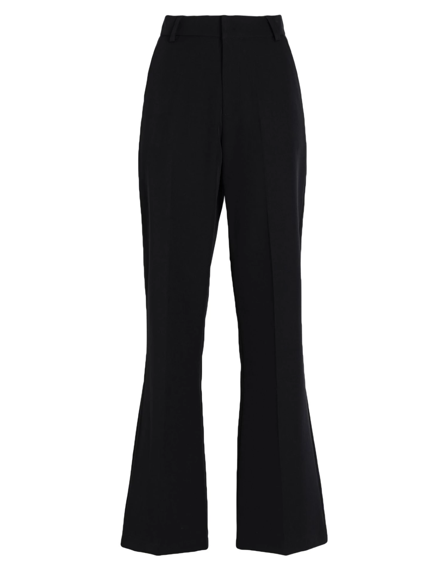 crepe, no appliqués, solid color, high waisted, flared cut, slim-leg pants, hook-and-eye closure, zipper closure, multipockets, stretch