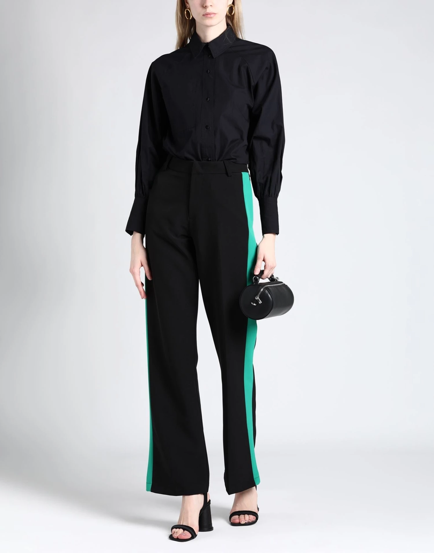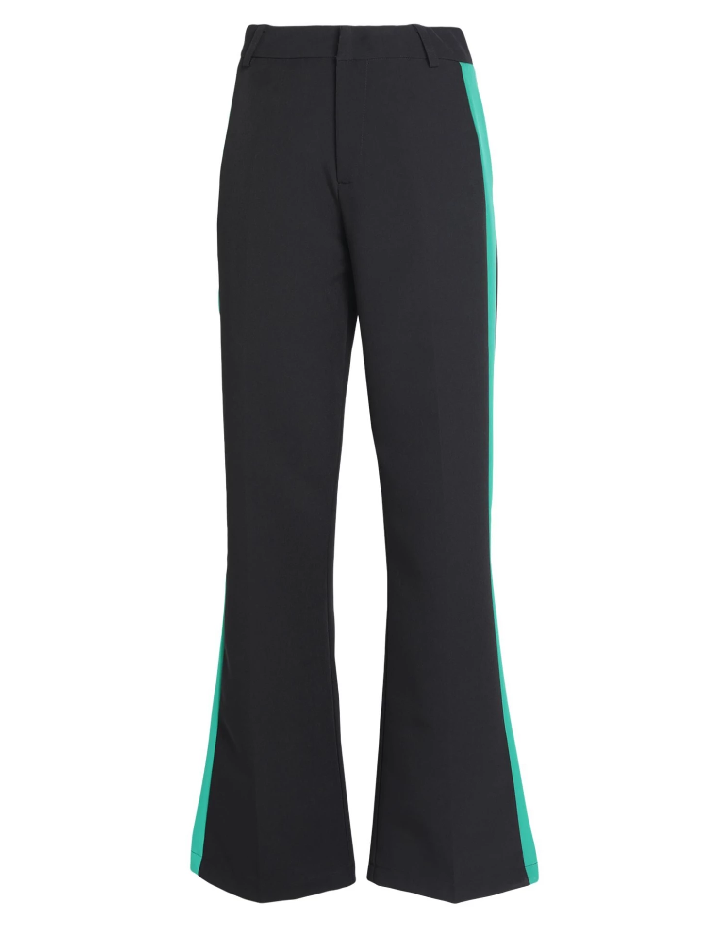 plain weave, side seam stripes, solid colour with appliqués, high waisted, elasticized waist, flared cut, regular fit, zipper closure, hook-and-eye closure, multipockets, stretch