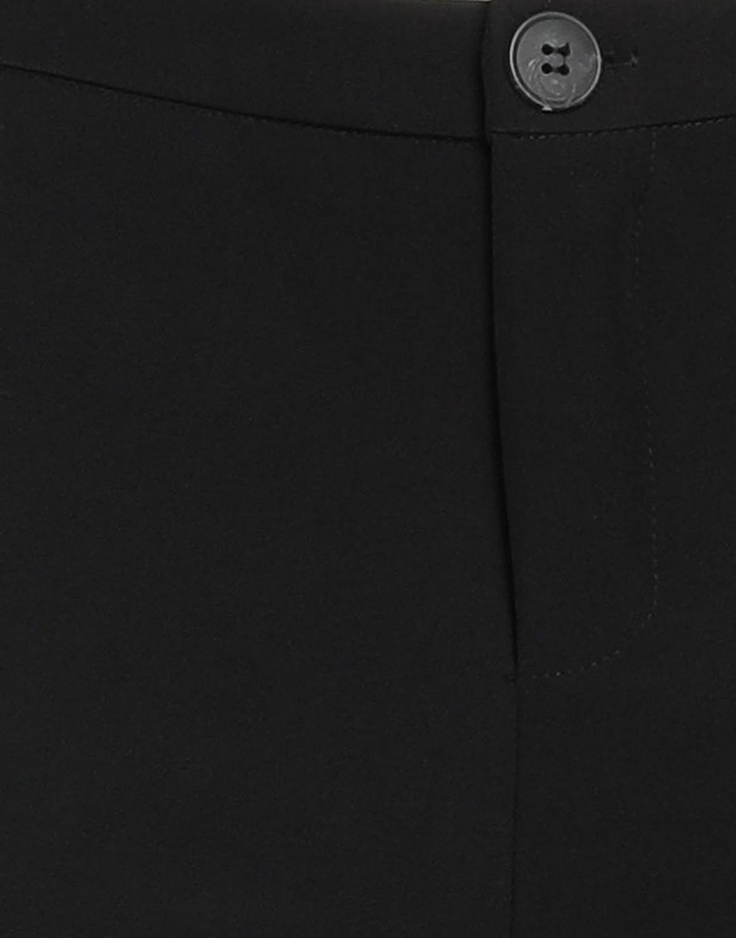 plain weave, no appliqués, solid color, mid rise, regular fit, tapered leg, 1 button, zipper closure, multipockets, tailored