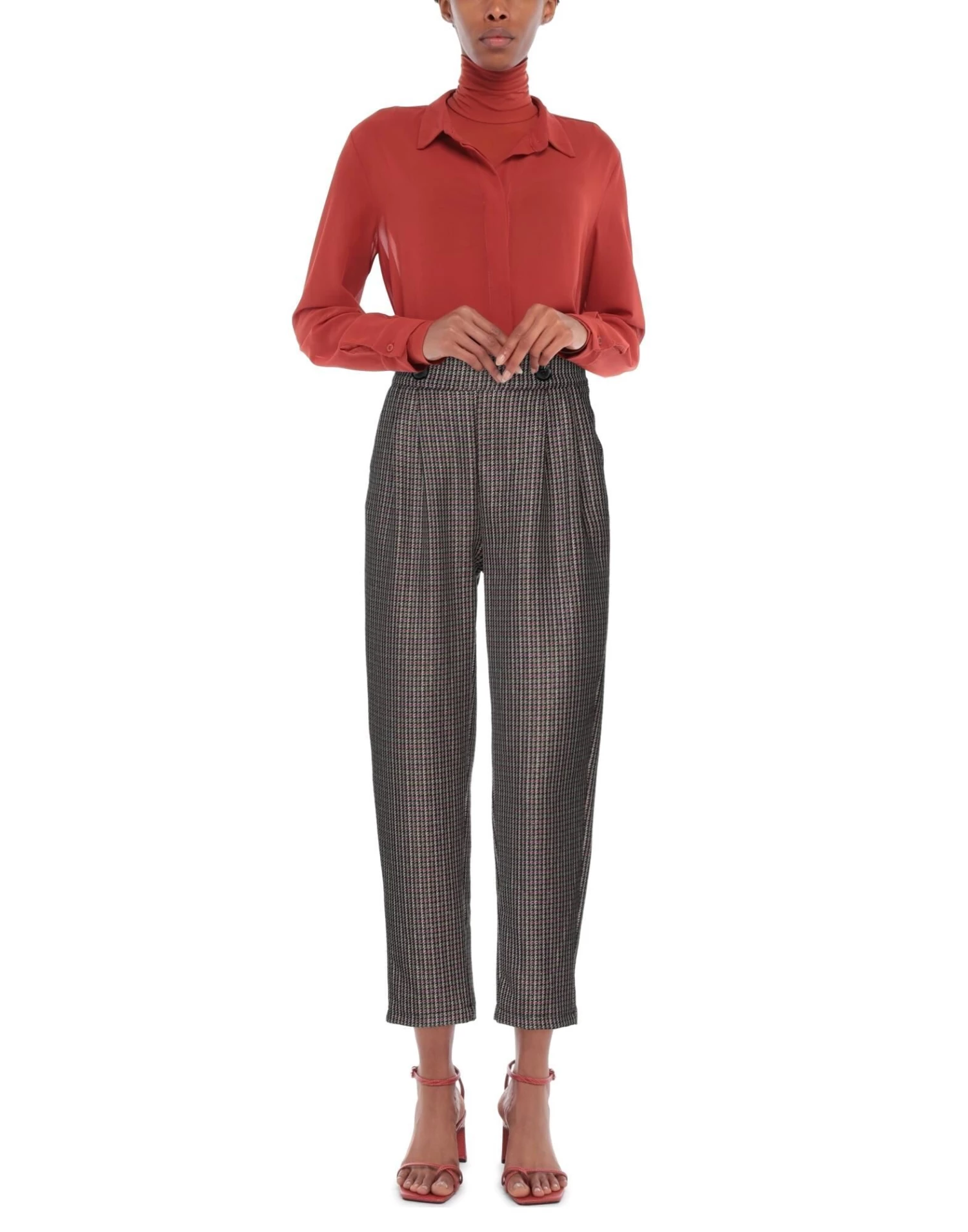 jacquard, flannel, lamé, no appliqués, houndstooth, high waisted, darted waistline, tapered leg, regular fit, zipper closure, multipockets