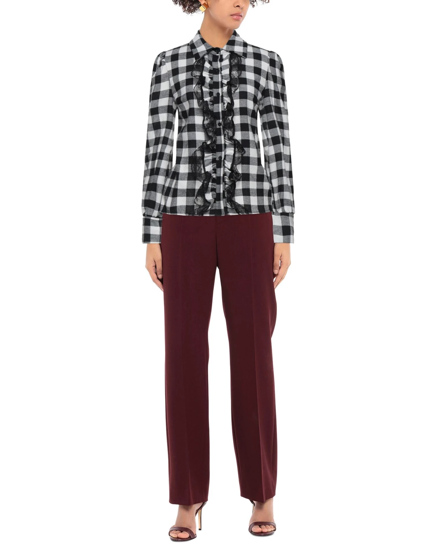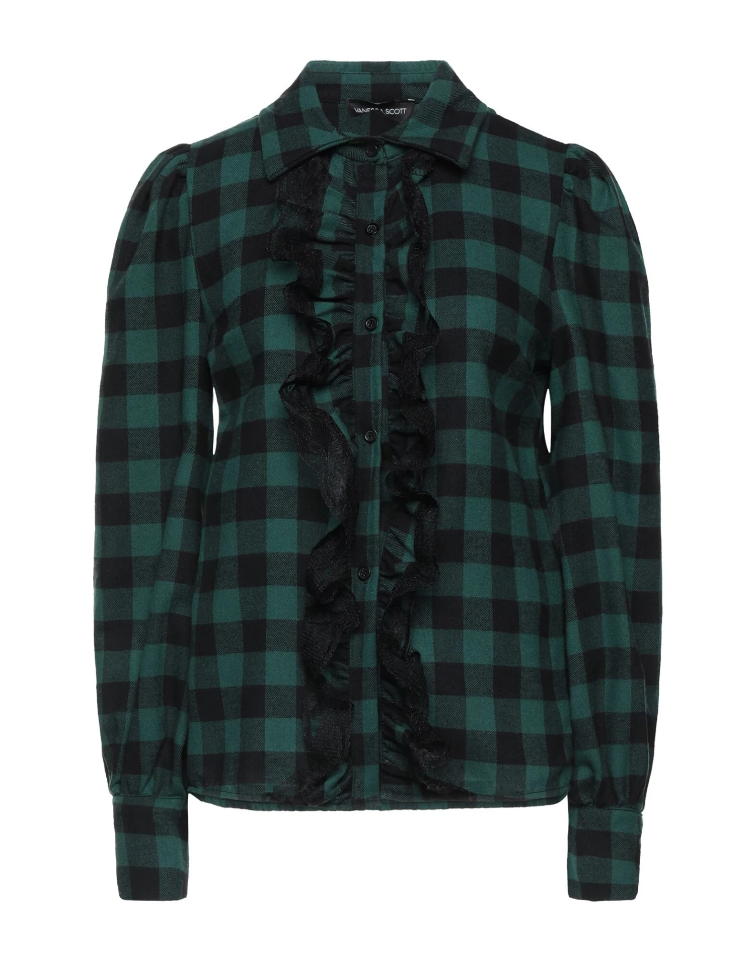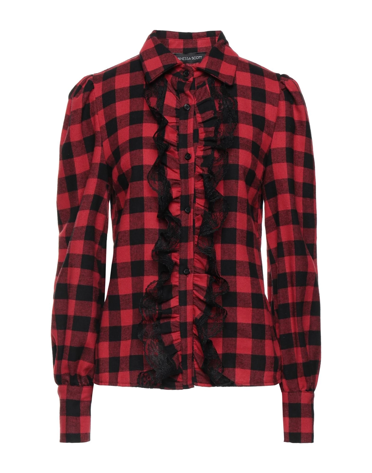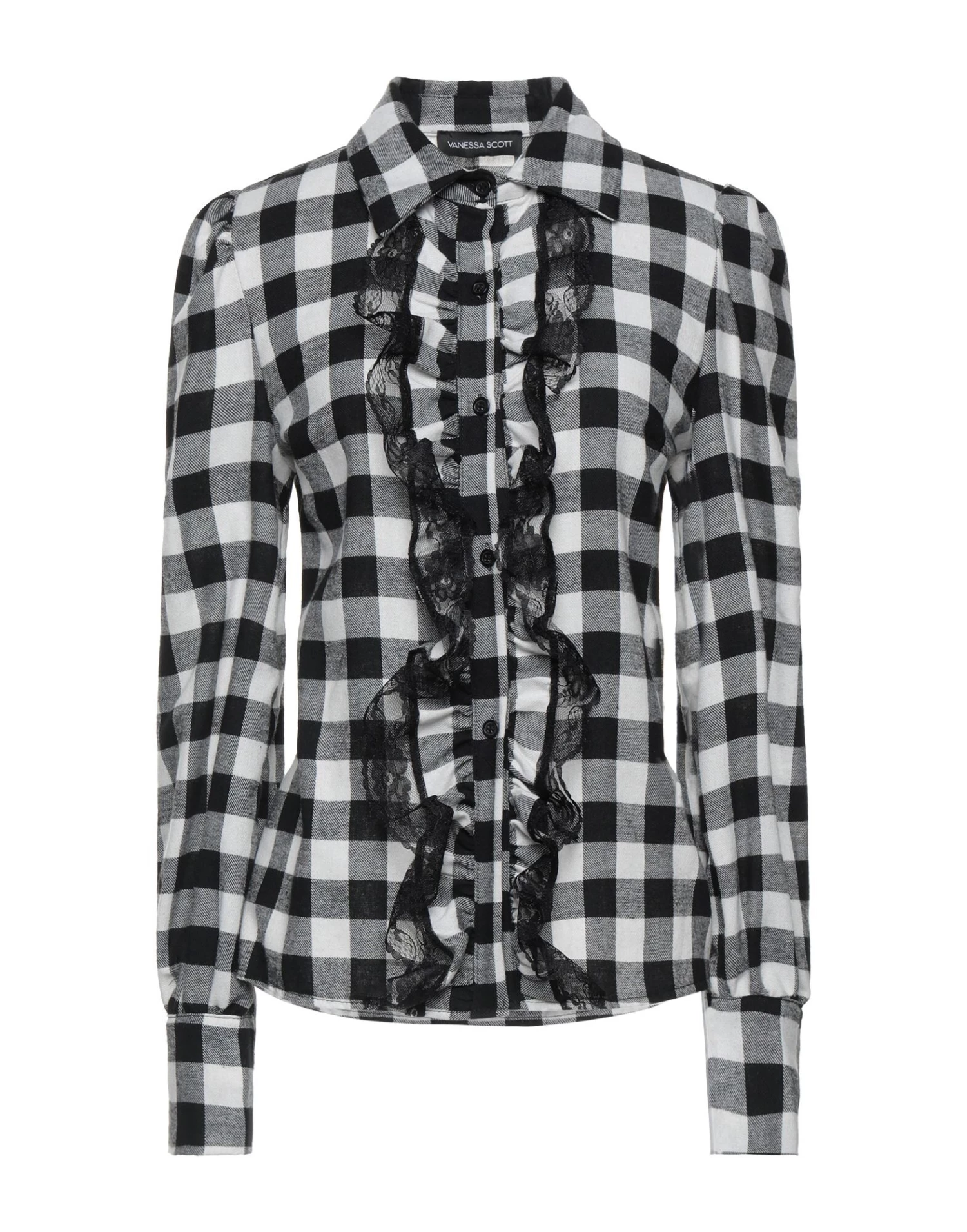 lace, flannel, ruffles, checked, classic neckline, long sleeves, buttoned cuffs, button closing, no pockets
