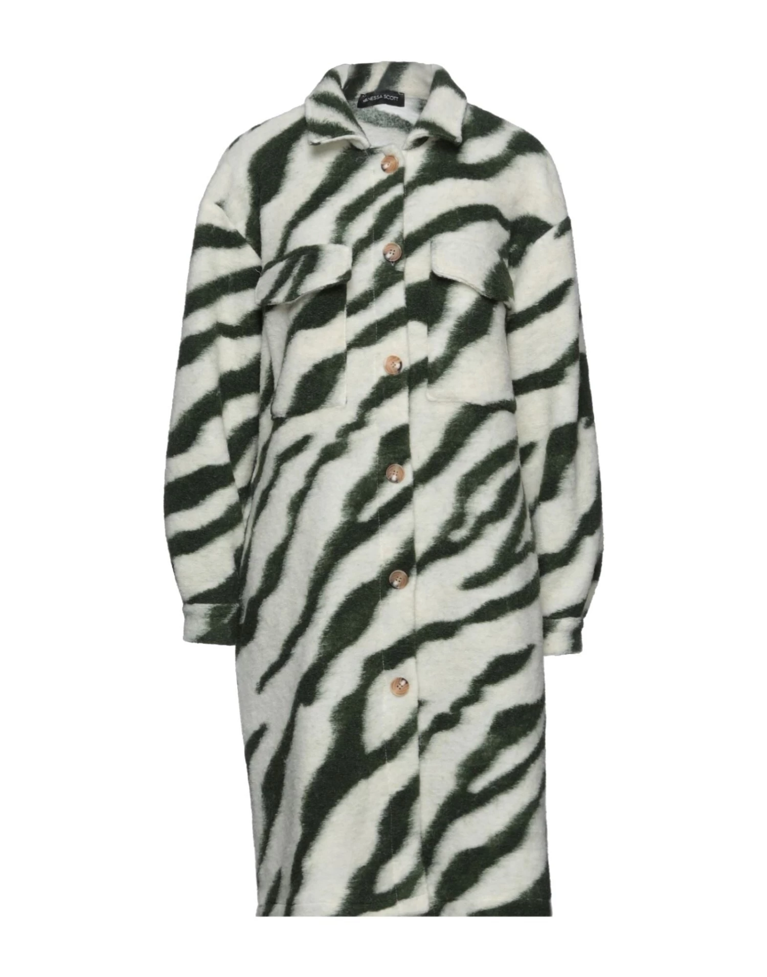 boiled wool, no appliqués, zebra stripes, classic neckline, single-breasted , long sleeves, unlined, button closing, multipockets