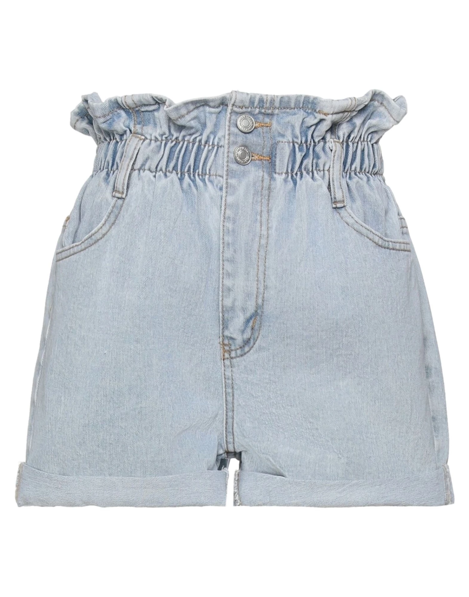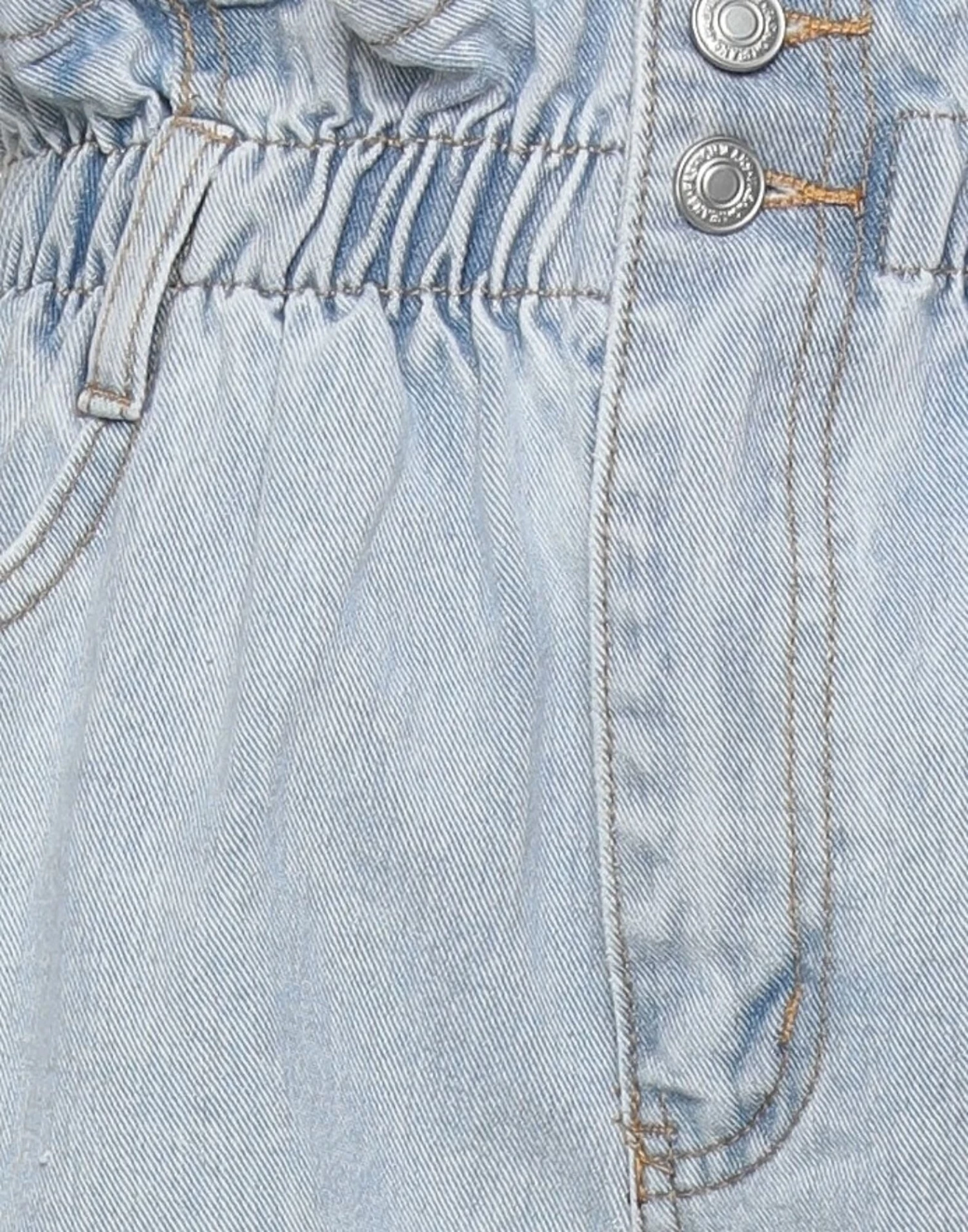 denim, light wash, no appliqués, high waisted, solid color, zipper closure, multipockets, cuffed hems, stretch