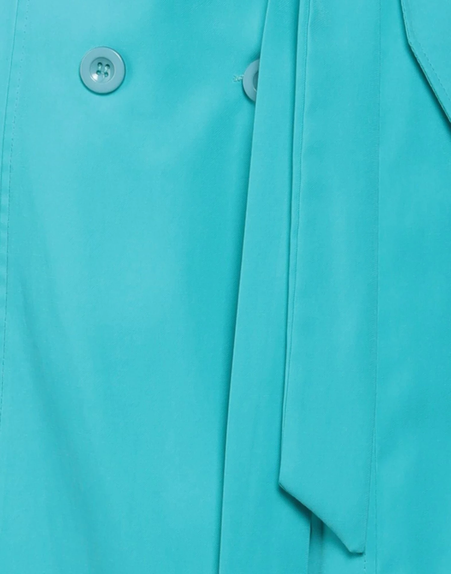 plain weave, belt, solid color, lapel collar, double-breasted, long sleeves, with shoulder pad, strapped cuffs, fully lined, button closing, multipockets, stretch, trench