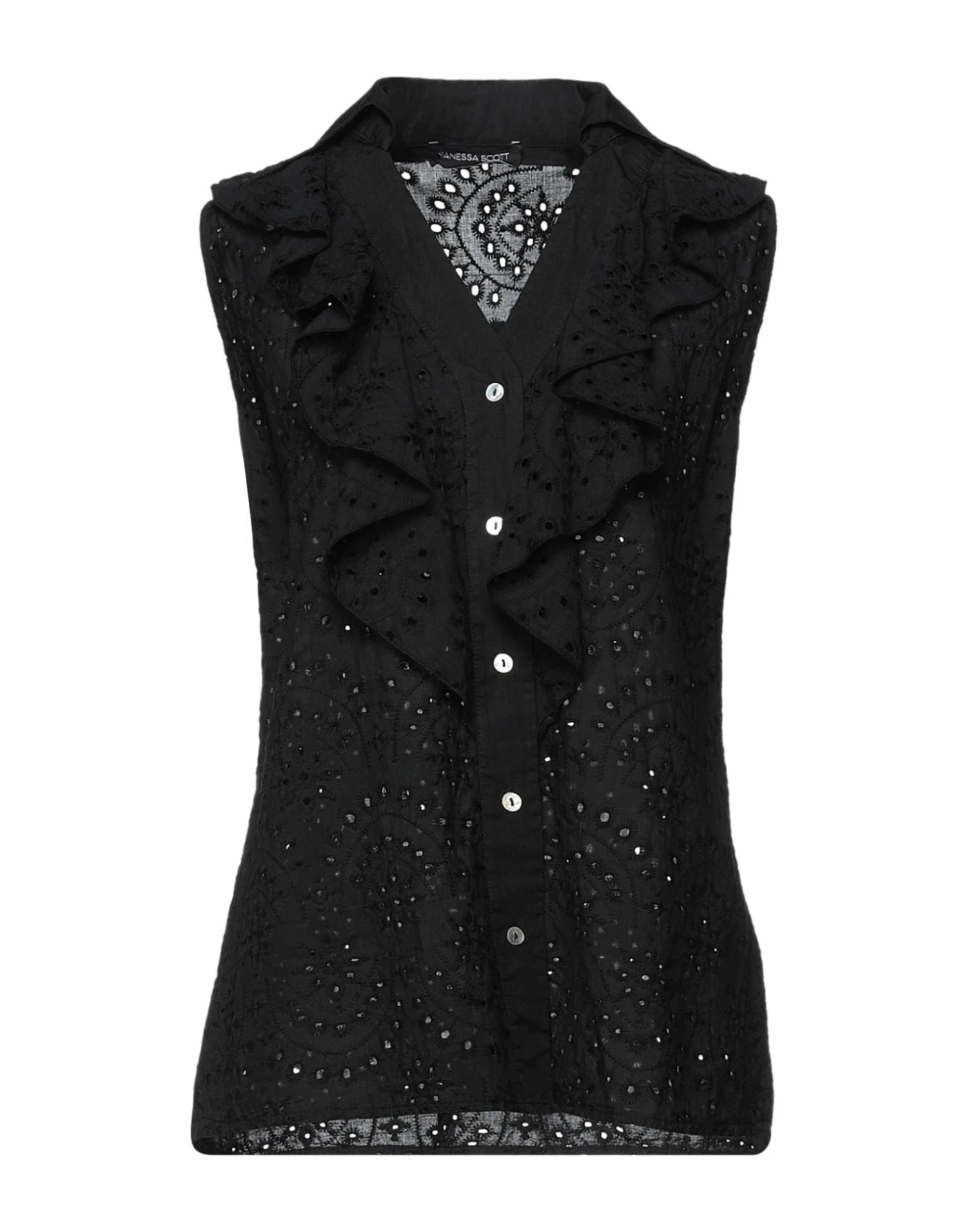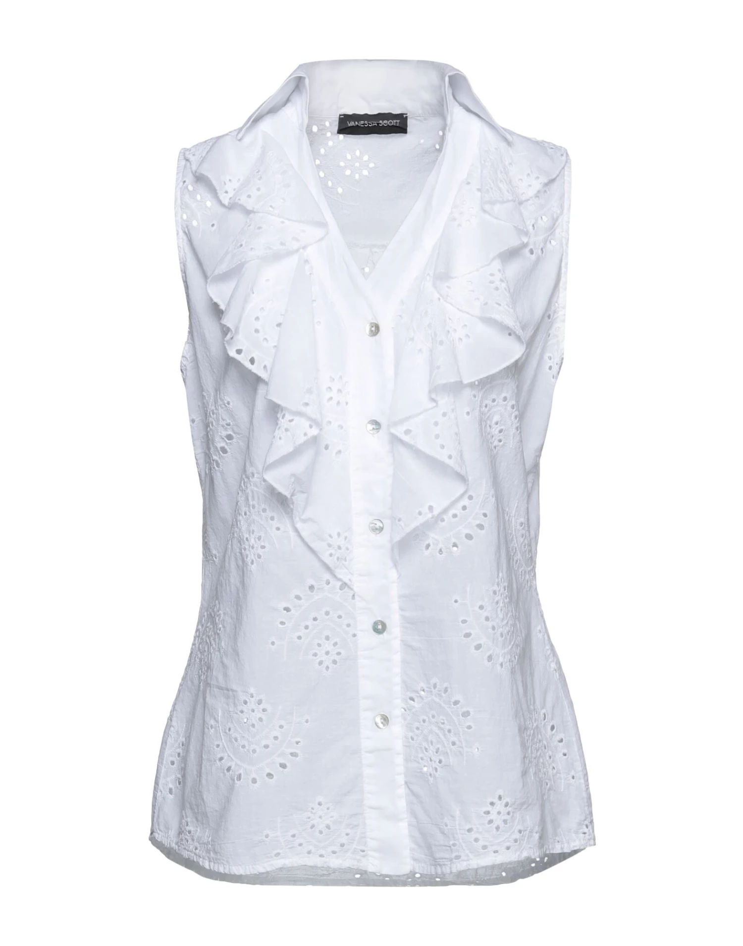 lace, ruffles, solid color, v-neck, sleeveless, button closing, no pockets