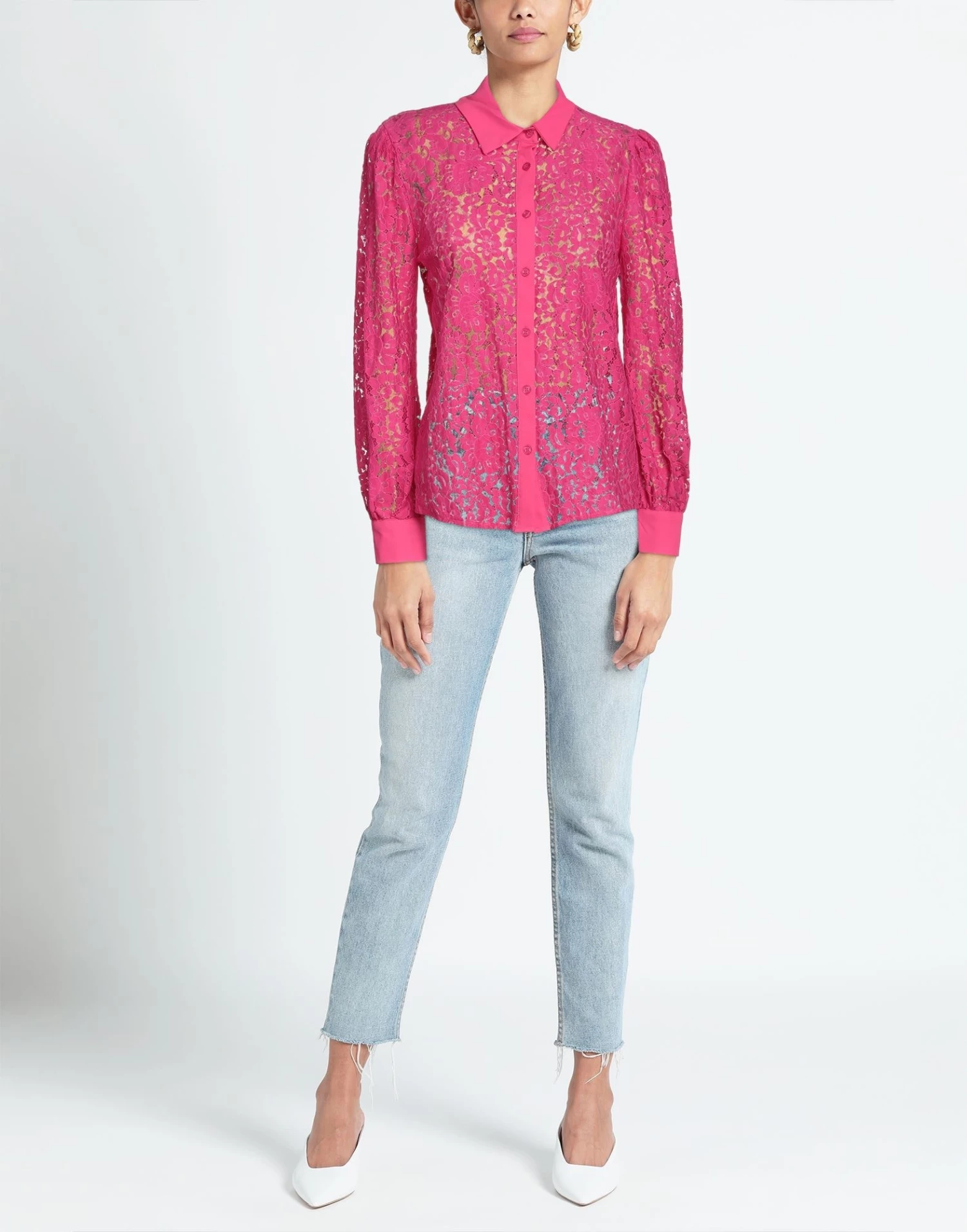 crepe, lace, no appliqués, solid color, classic neckline, long sleeves, buttoned cuffs, button closing, no pockets