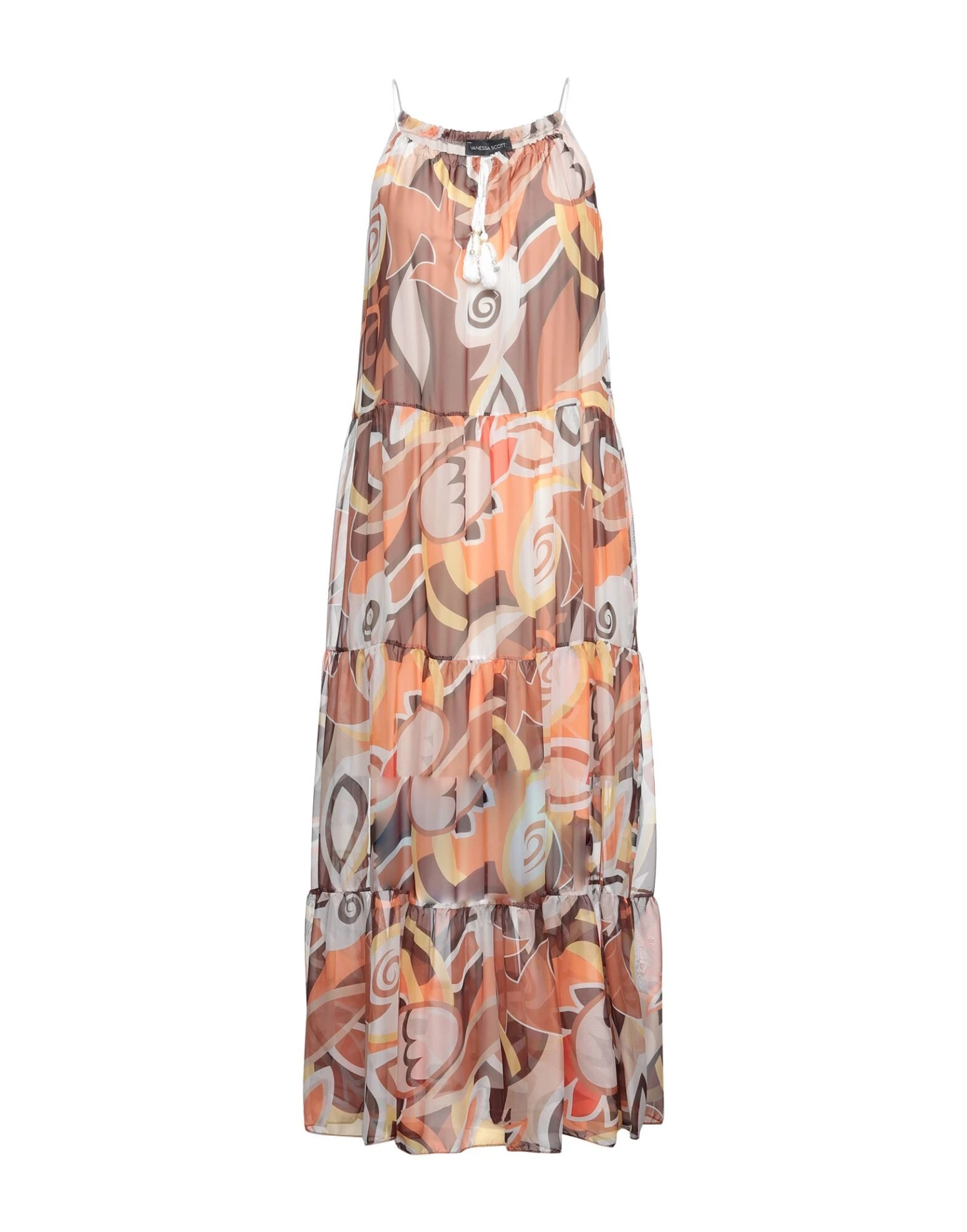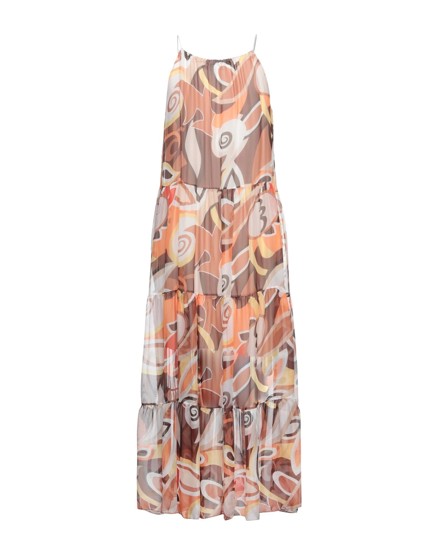 chiffon, tassels, frills, multicolor pattern, deep neckline, sleeveless, no pockets, self-tie closure, fully lined