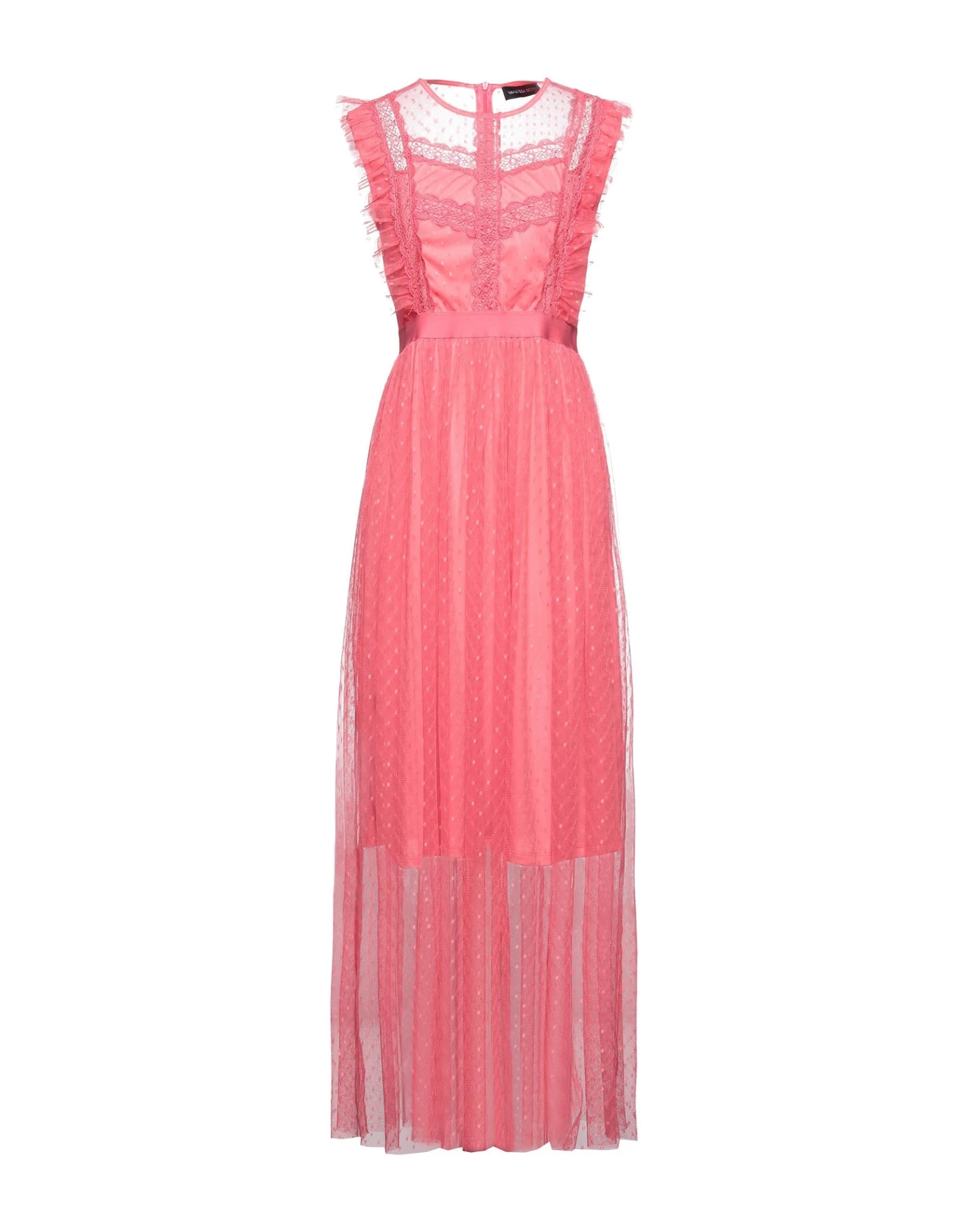 tulle, lace, ruffles, solid color, round collar, sleeveless, partially lined interior, zipper closure, no pockets, raw-cut hem, stretch