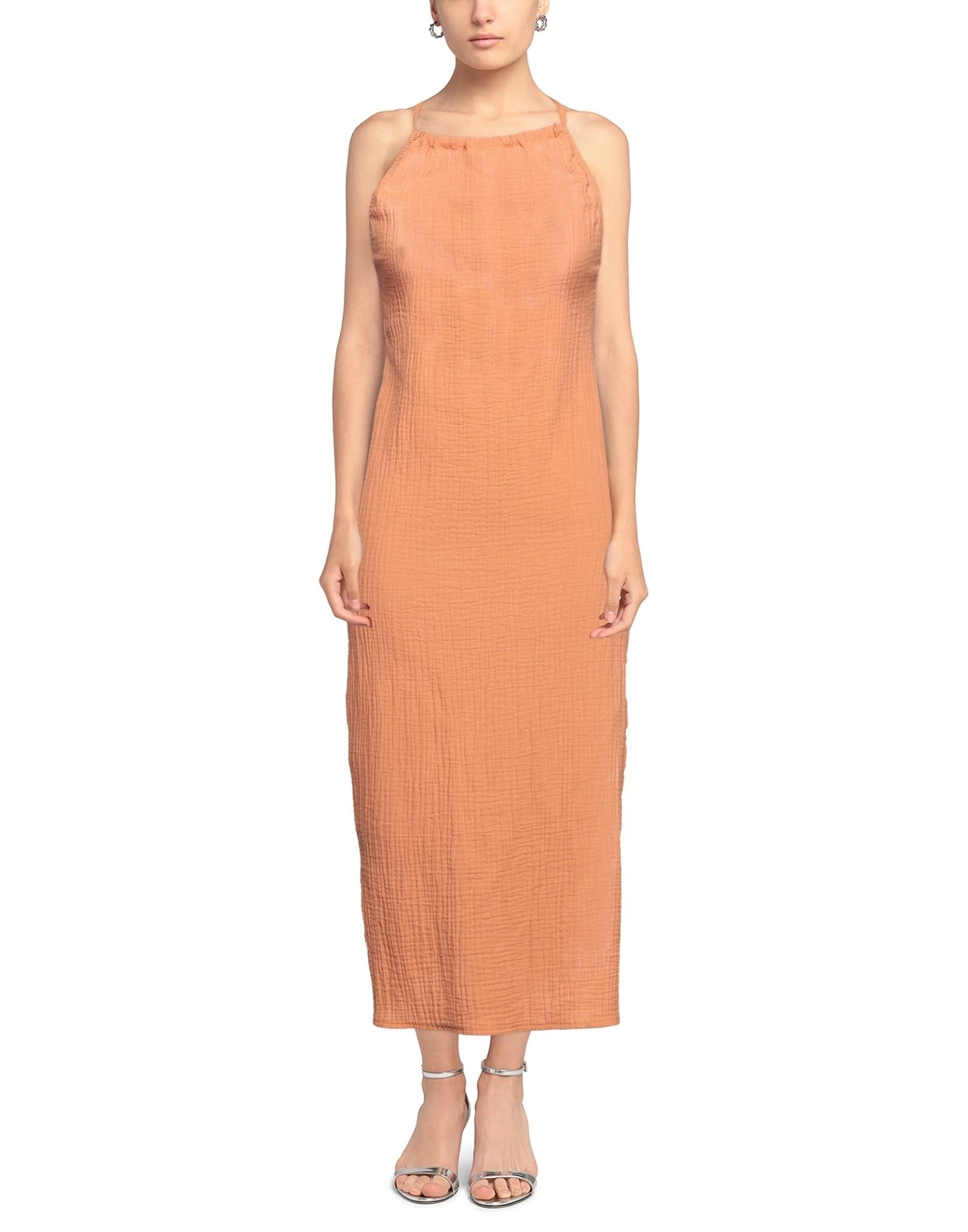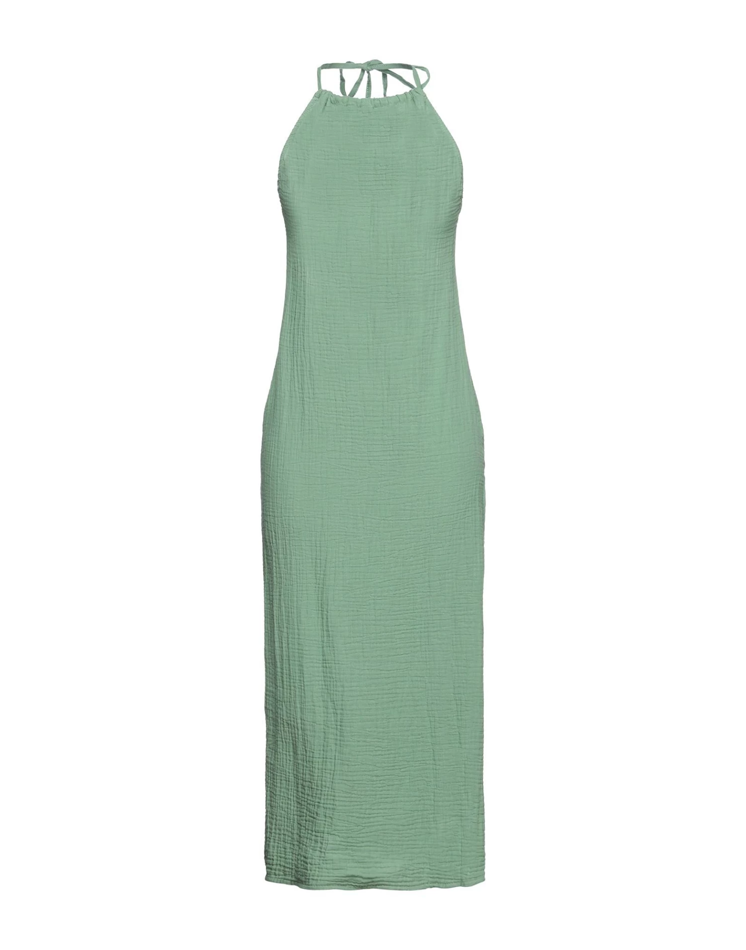 gauze, no appliqués, solid color, round collar, sleeveless, no pockets, self-tie closure, unlined, side slit