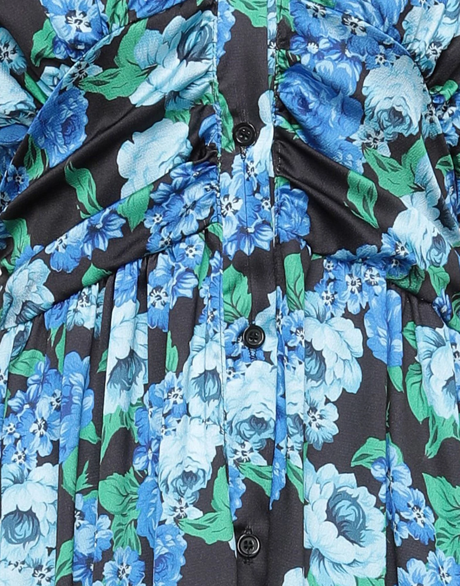 satin, draped detailing, floral design, v-neck, long sleeves, unlined, button closing, no pockets, with shoulder pad
