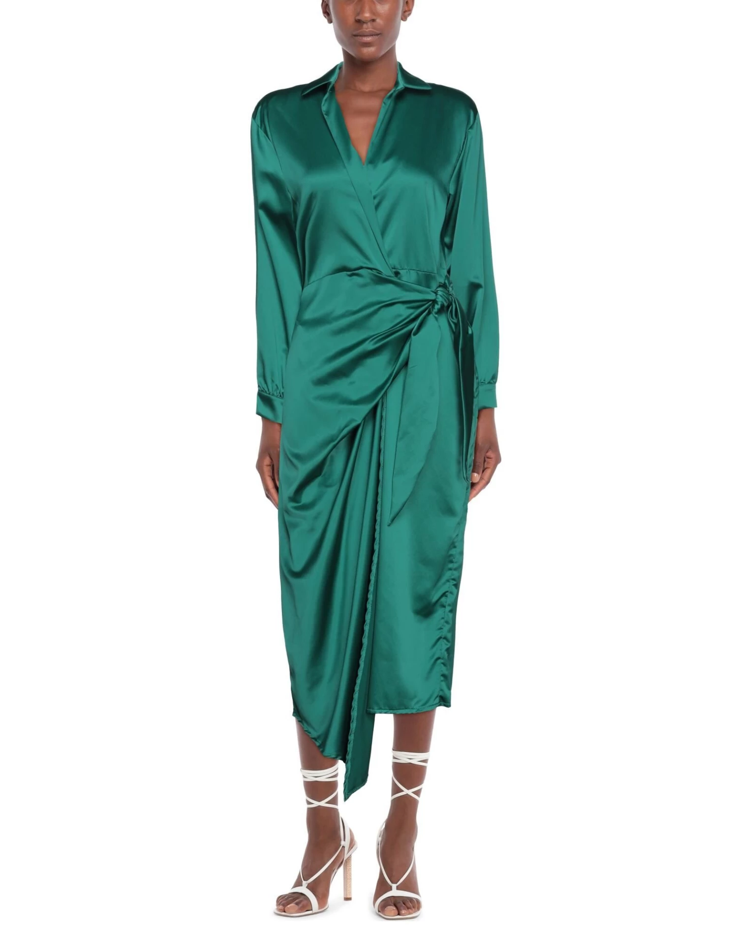 satin, no appliqués, solid color, v-neck, long sleeves, buttoned cuffs, unlined, self-tie closure, 1 button