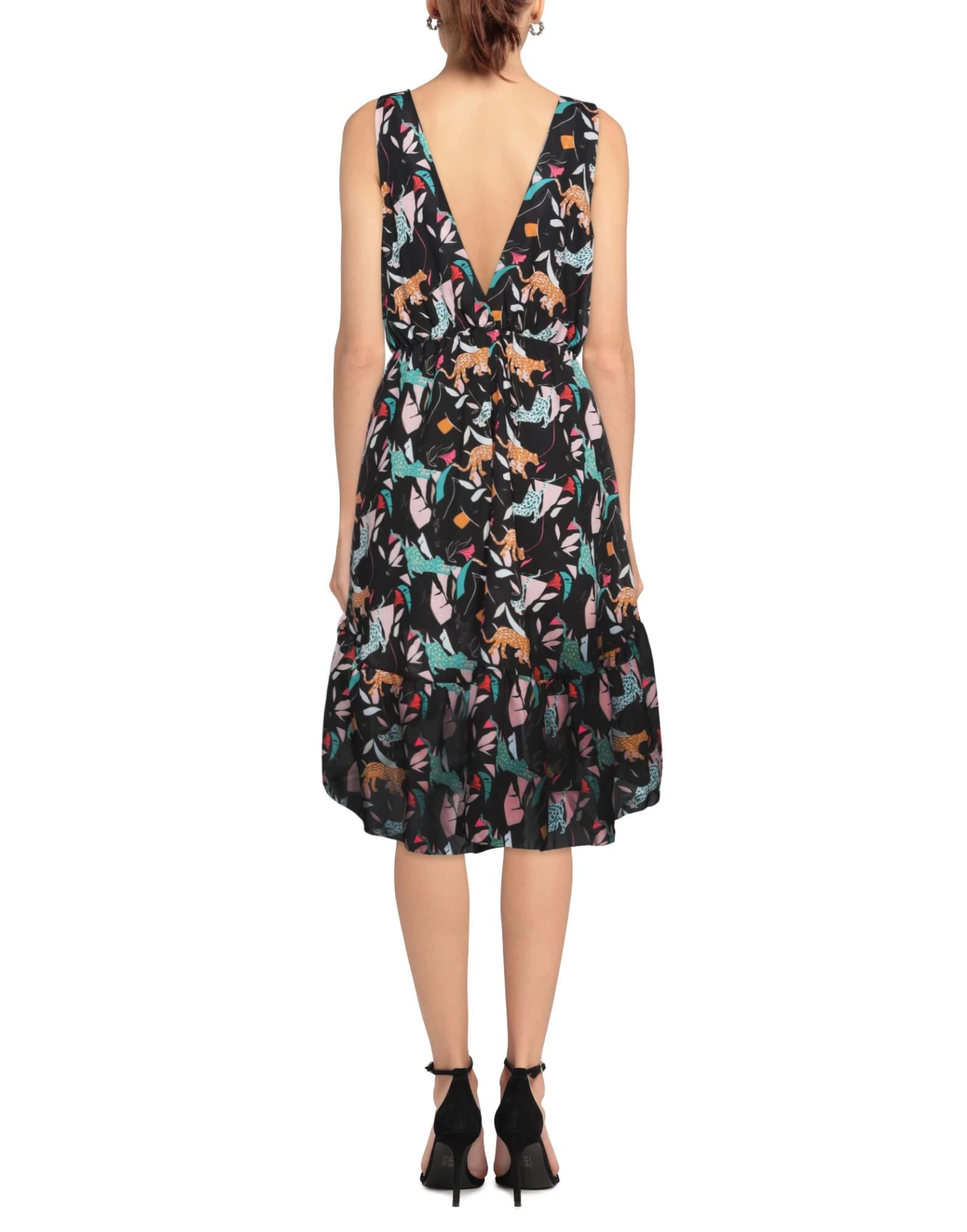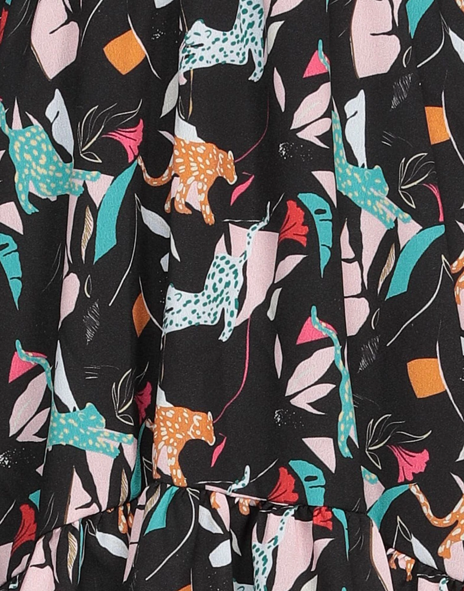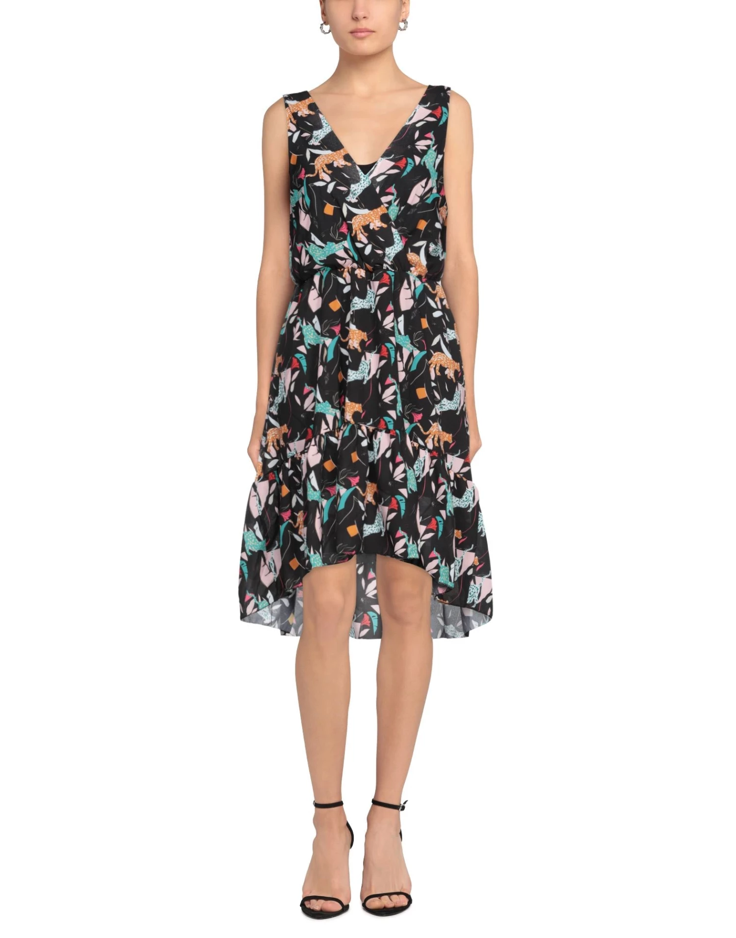 crepe, no appliqués, floral design, deep neckline, sleeveless, no pockets, fully lined