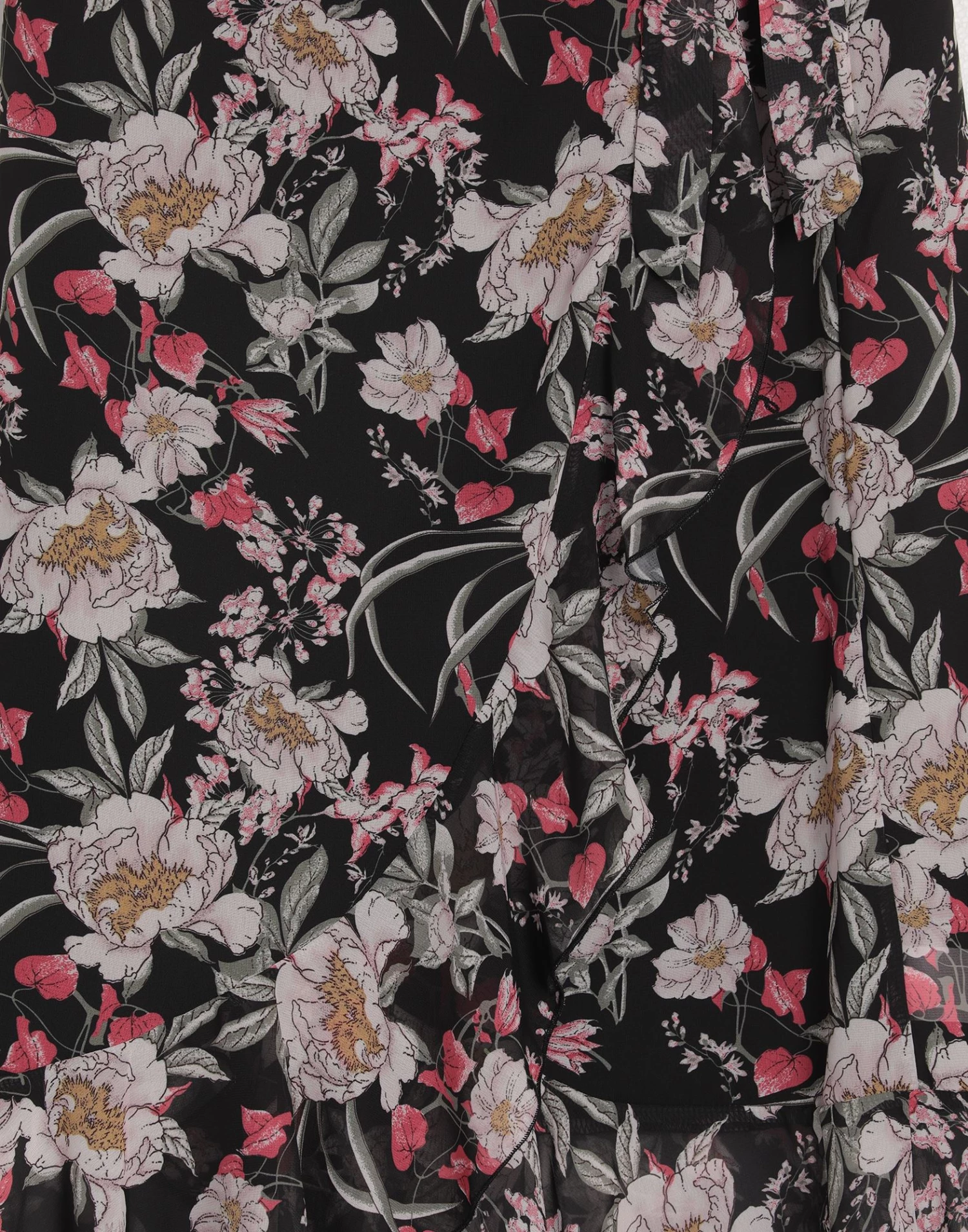 crepe, no appliqués, floral design, fully lined, self-tie closure, no pockets, wrap skirt
