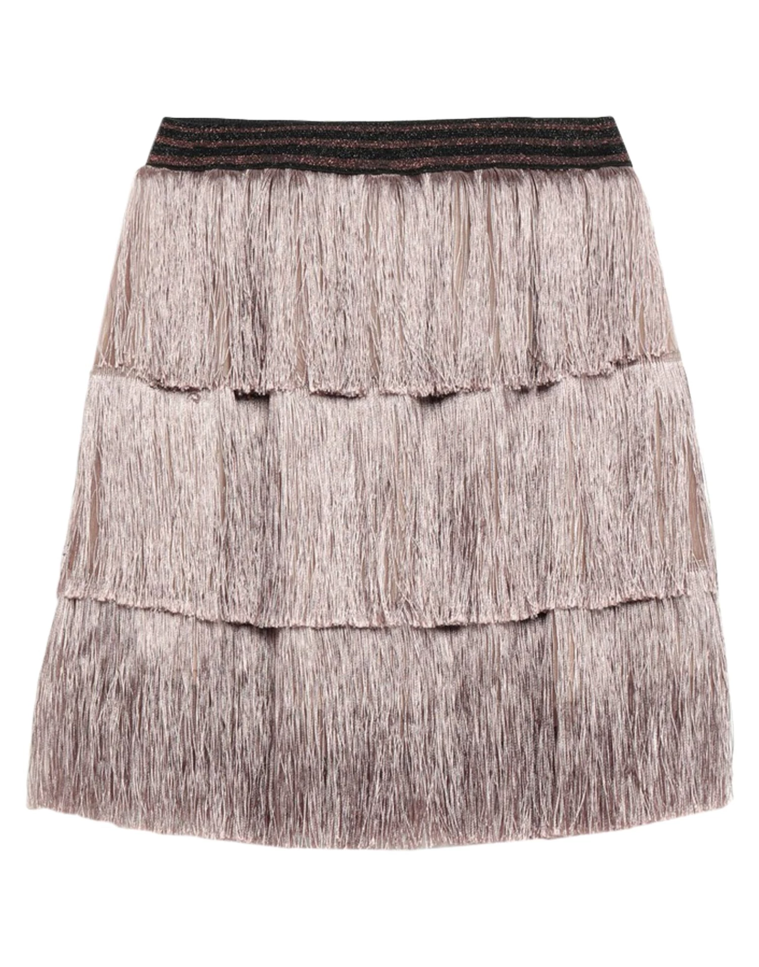 tulle, fringed, solid color, no pockets, fully lined, stretch, lamé, elasticized waist