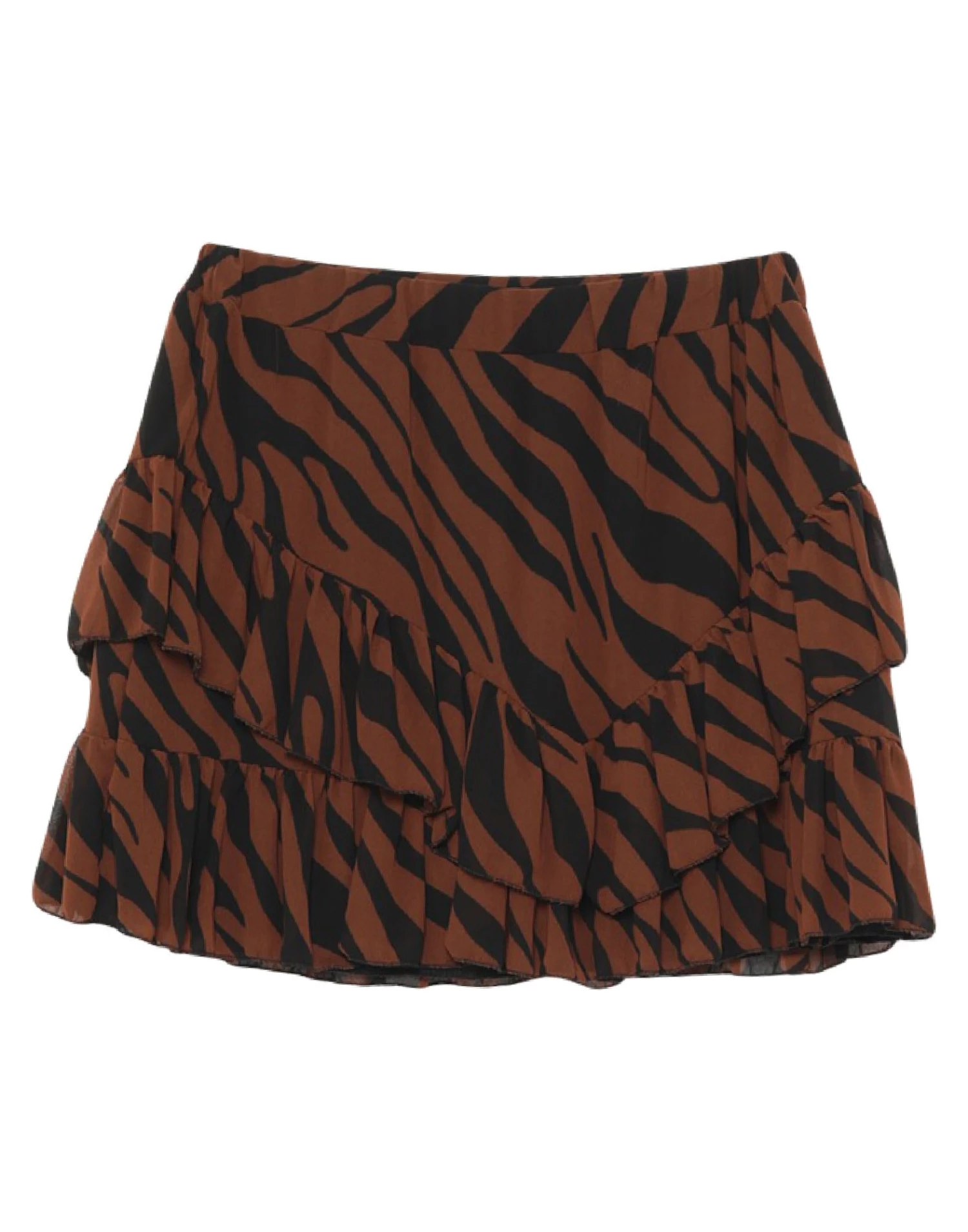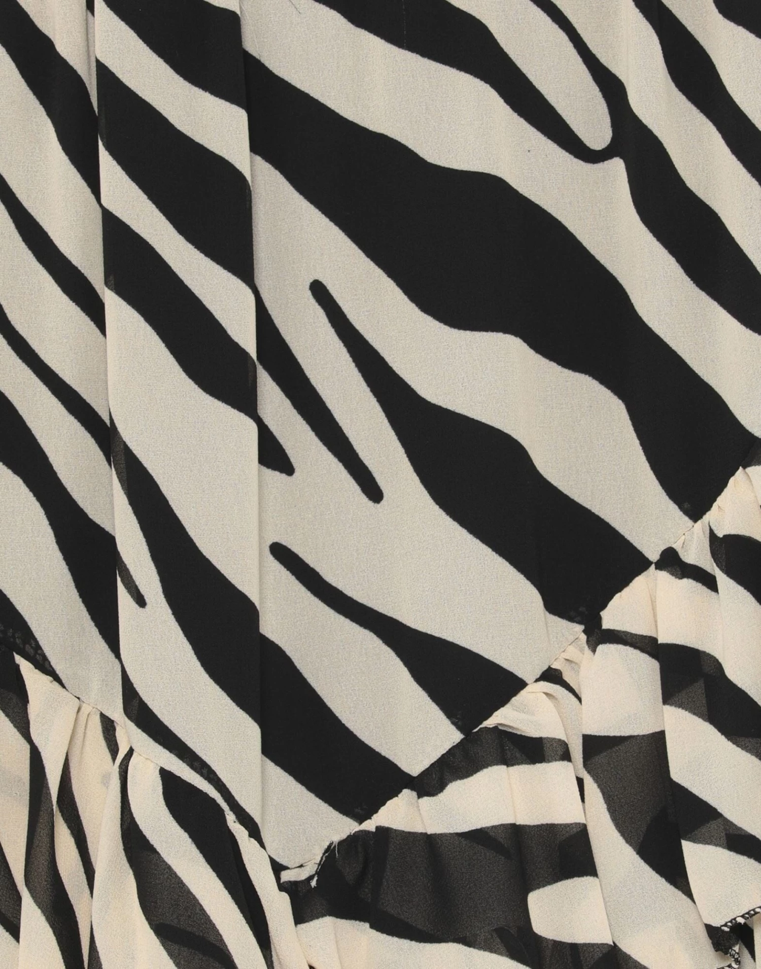 crepe, ruffles, zebra stripes, elasticized waist, no pockets, no fastening, fully lined