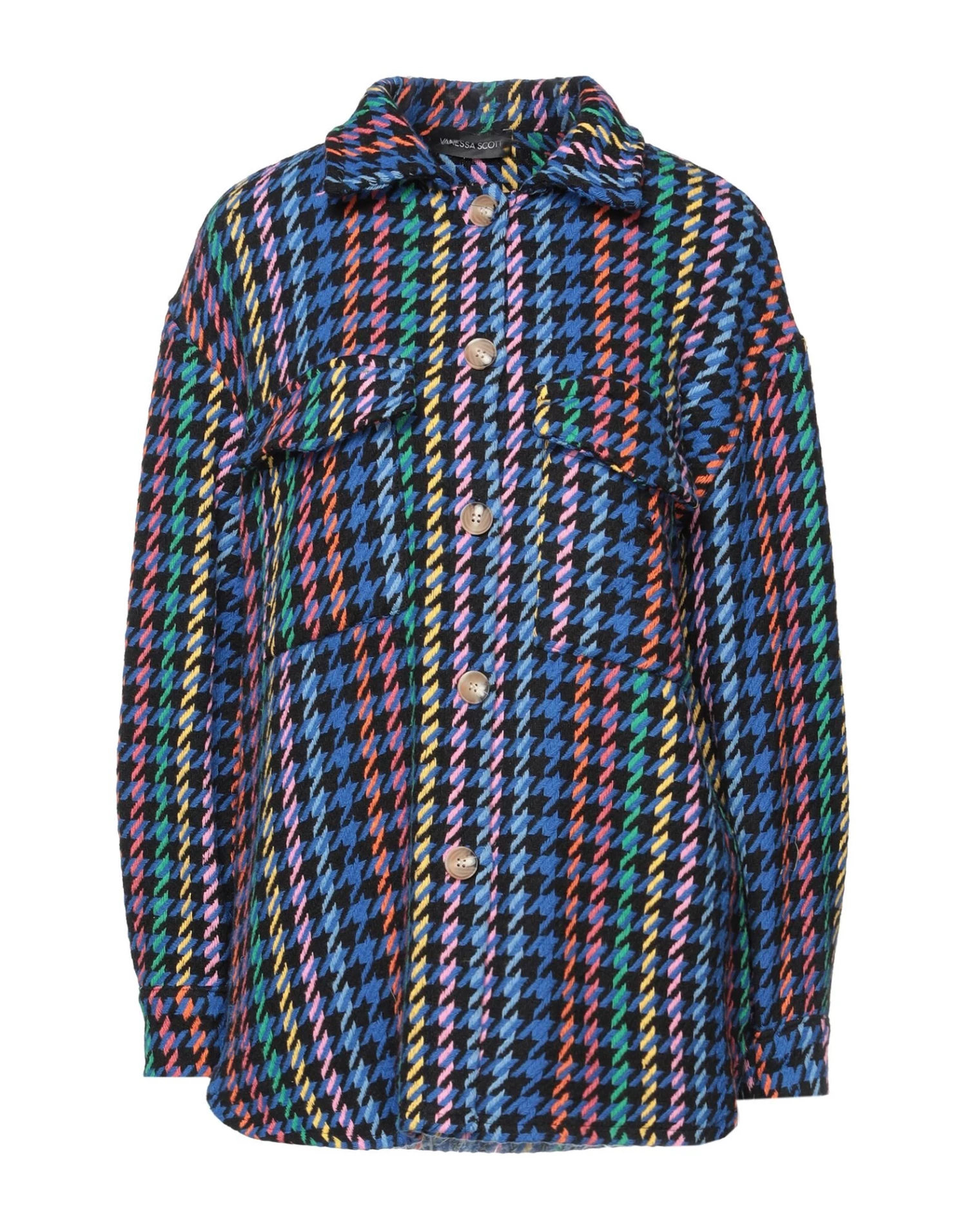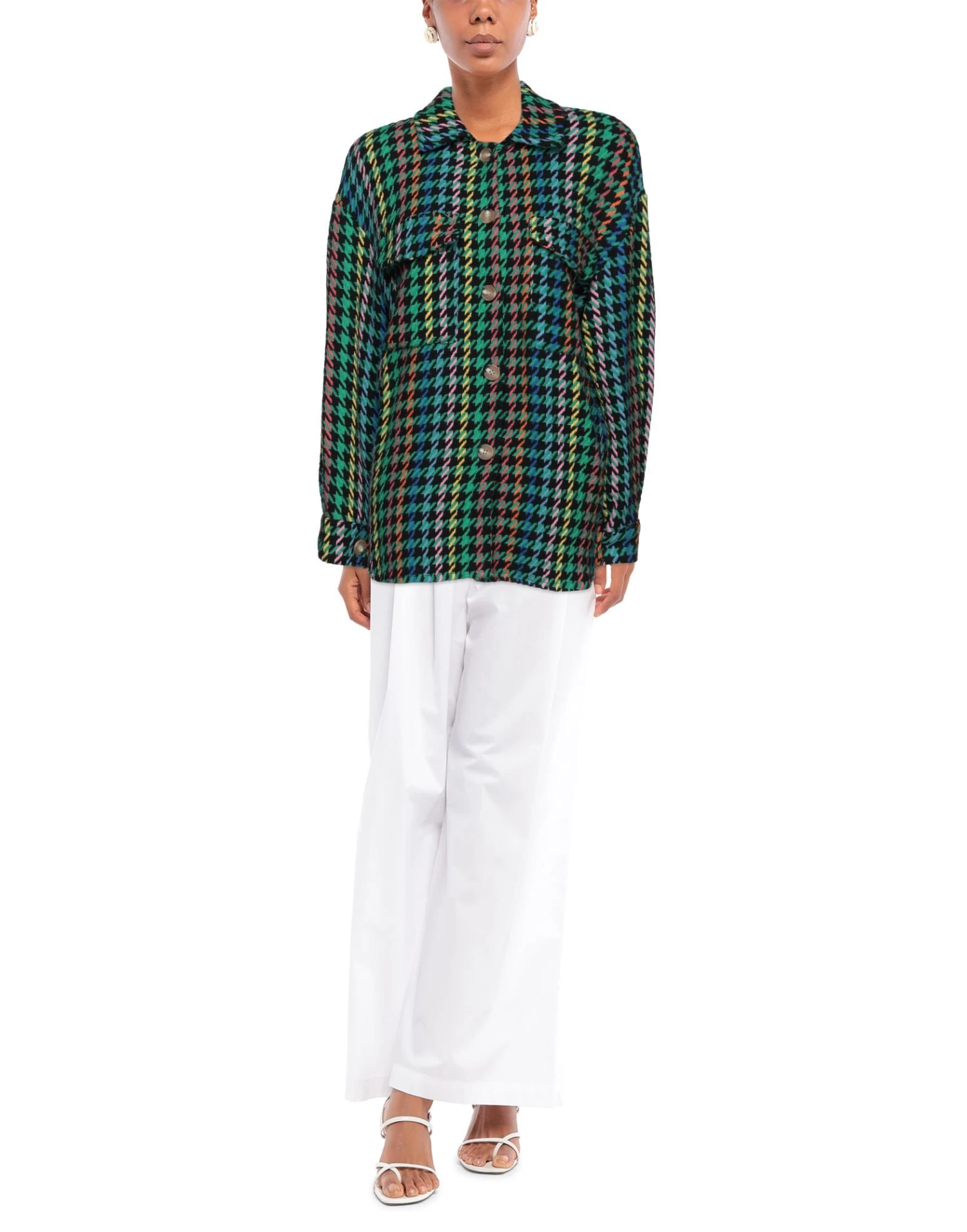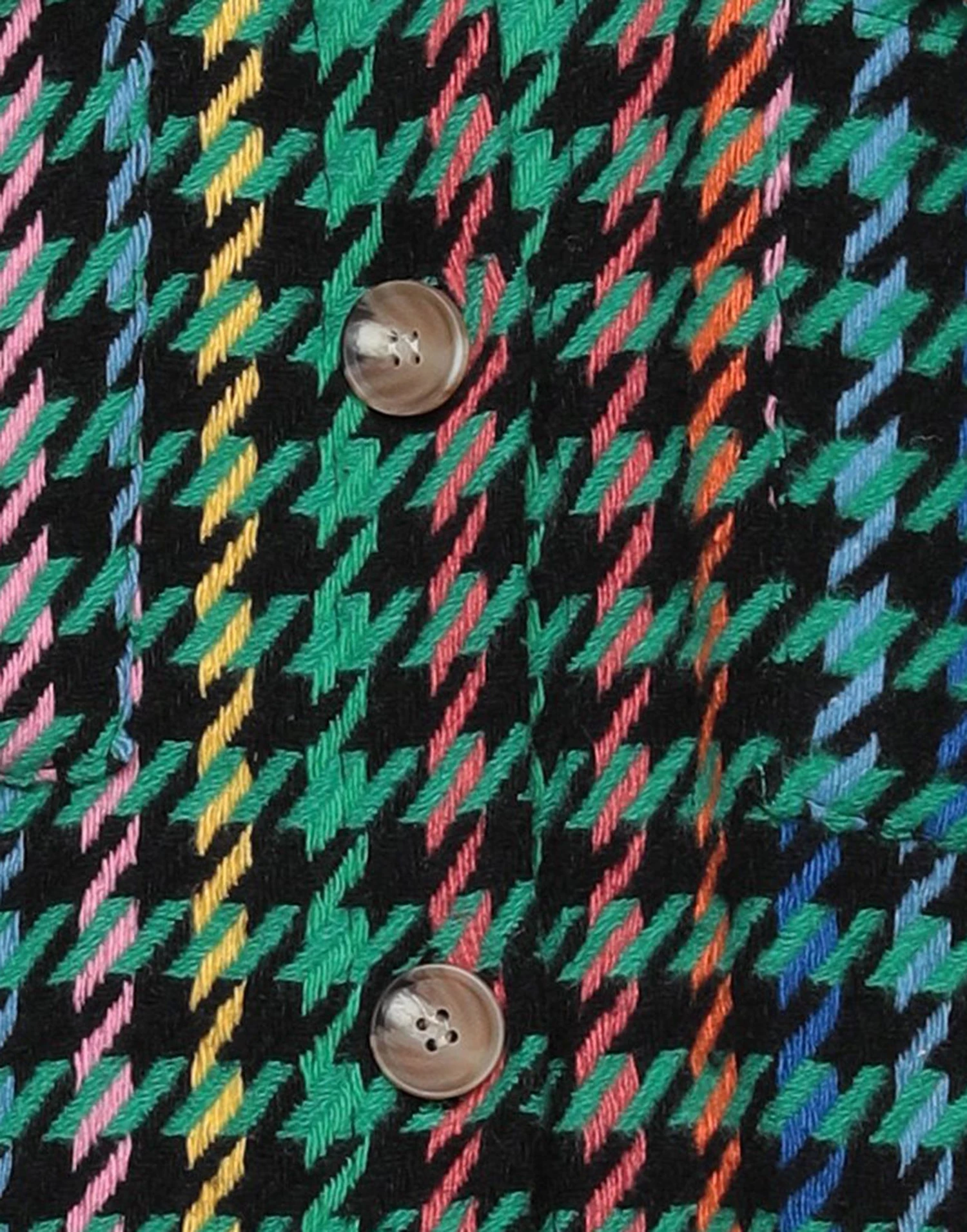 tweed, no appliqués, houndstooth, classic neckline, long sleeves, buttoned cuffs, button closing, two breast pockets