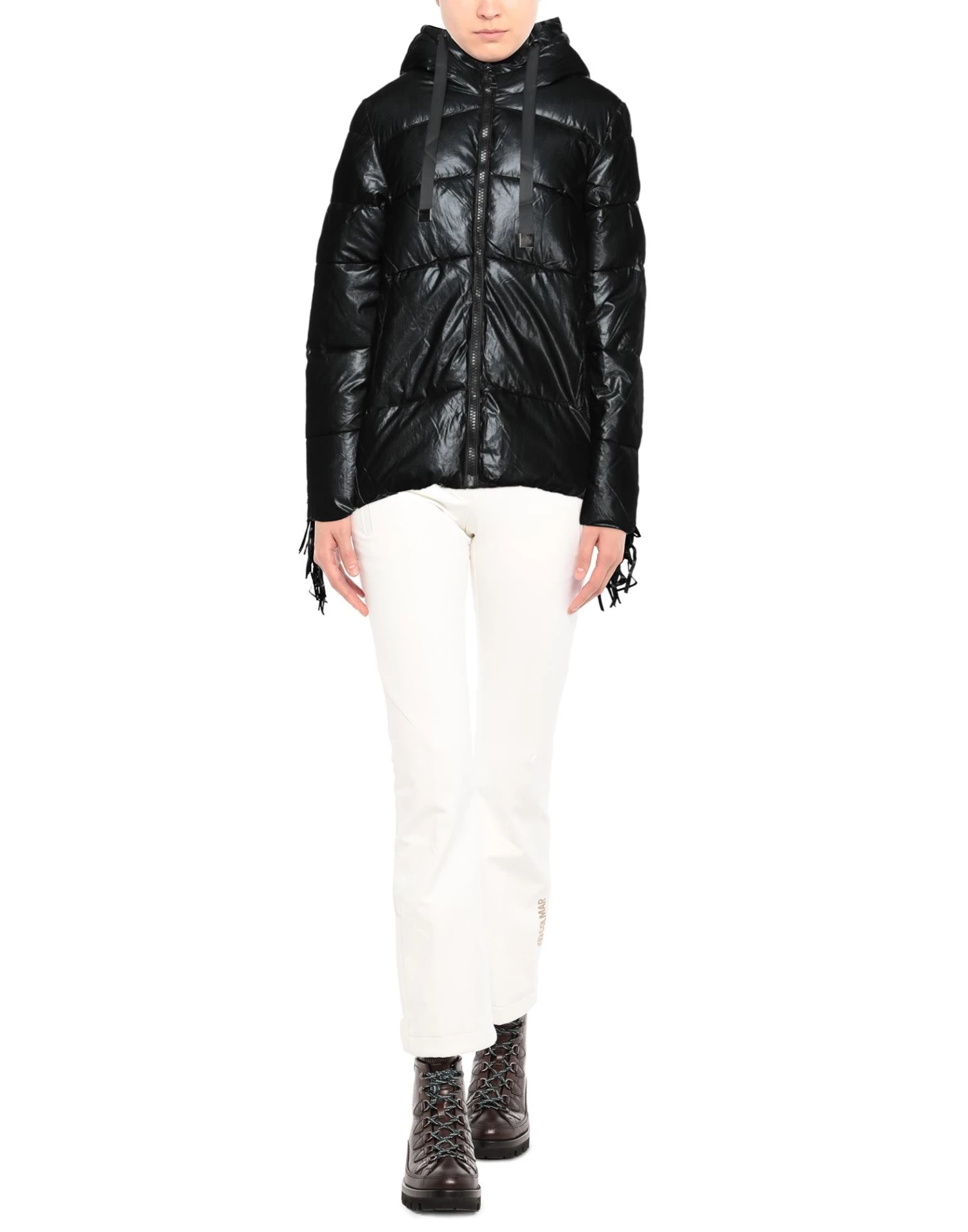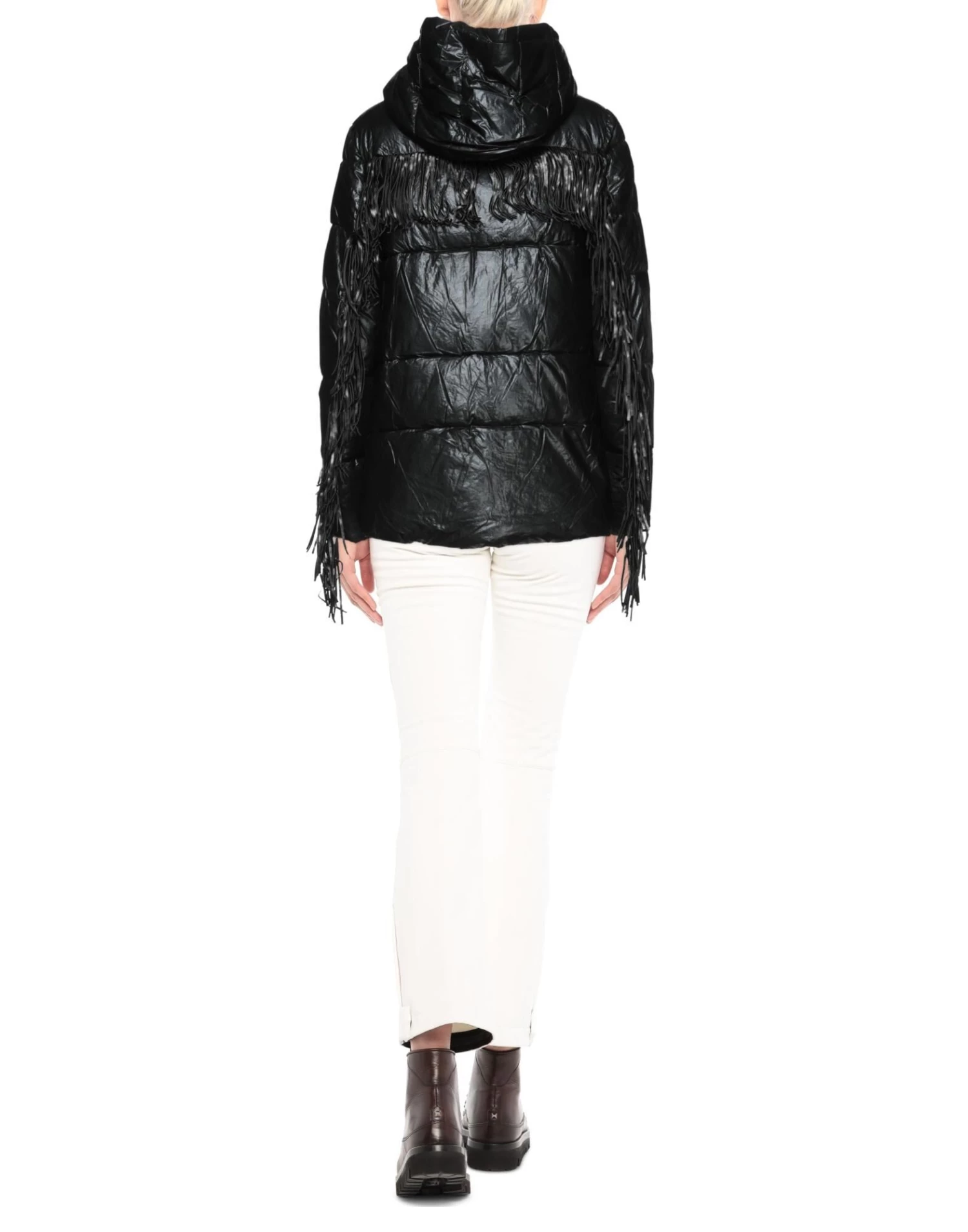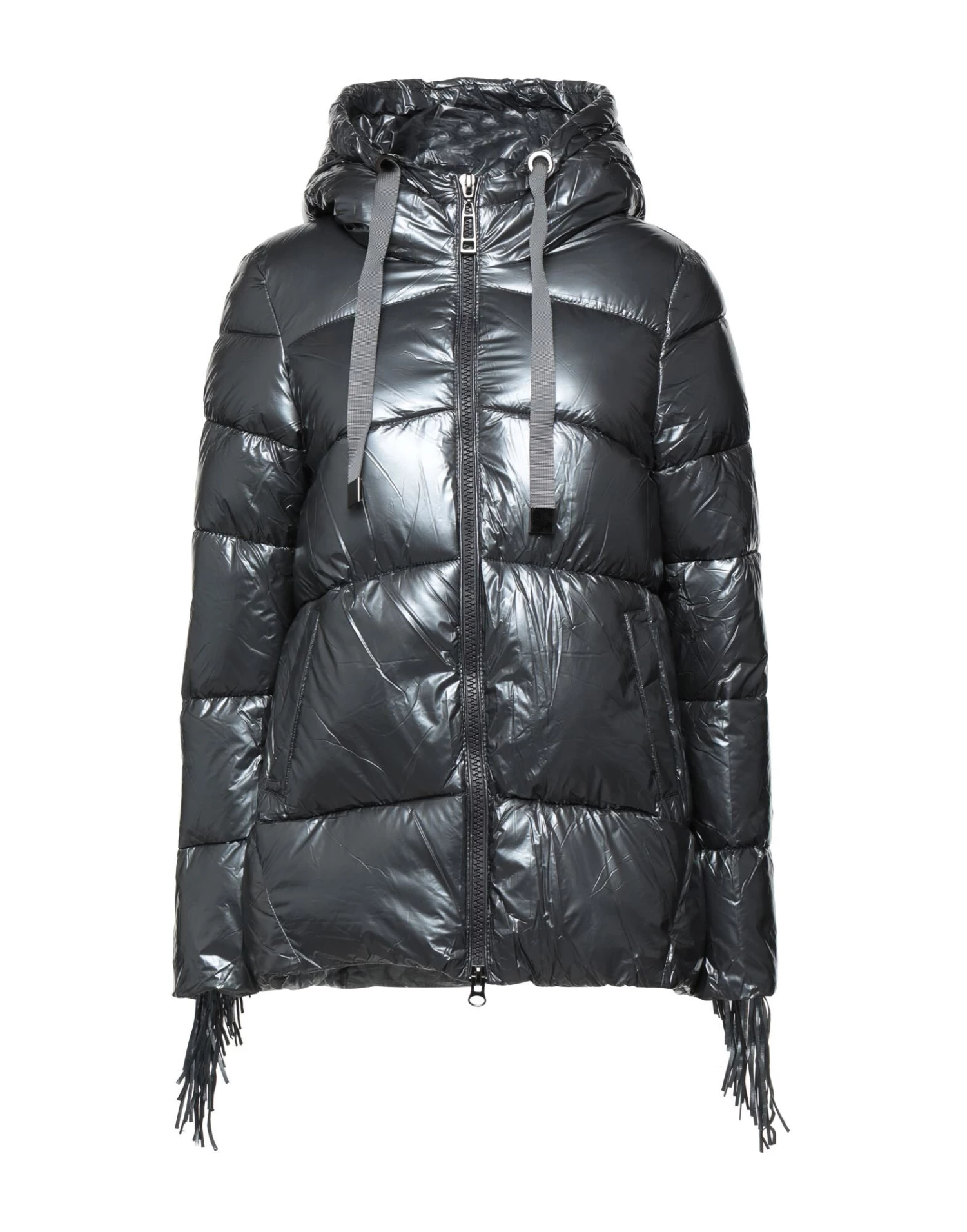 techno fabric, quilted, fringes, solid color, hooded collar, single-breasted , long sleeves, internal padding, zipper closure, multipockets