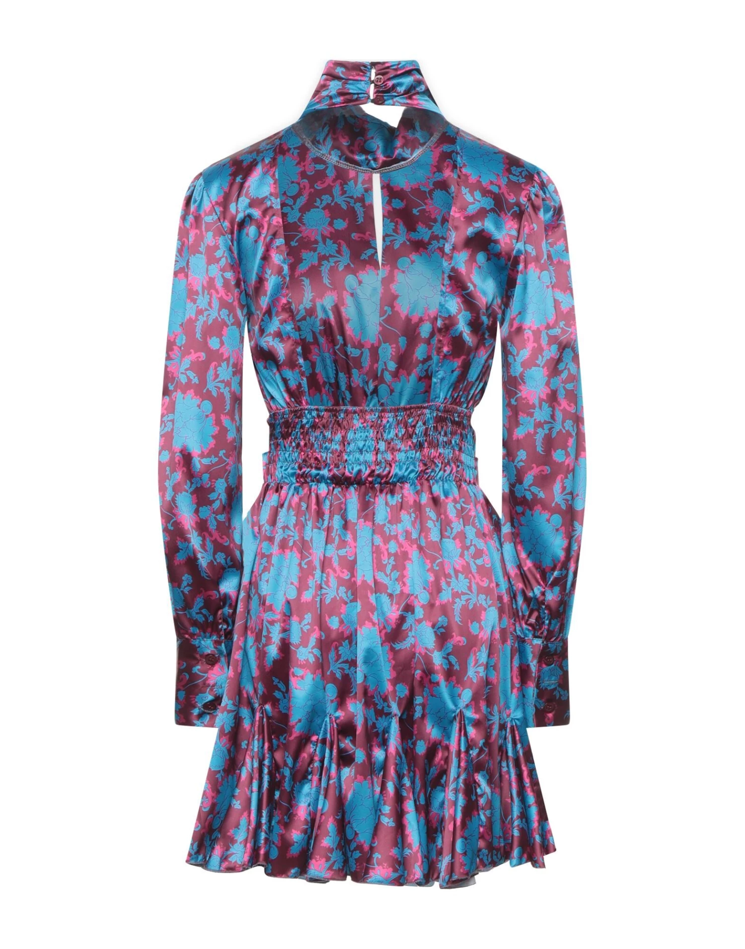 satin, no appliqués, floral design, turtleneck, long sleeves, unlined, button closing, no pockets