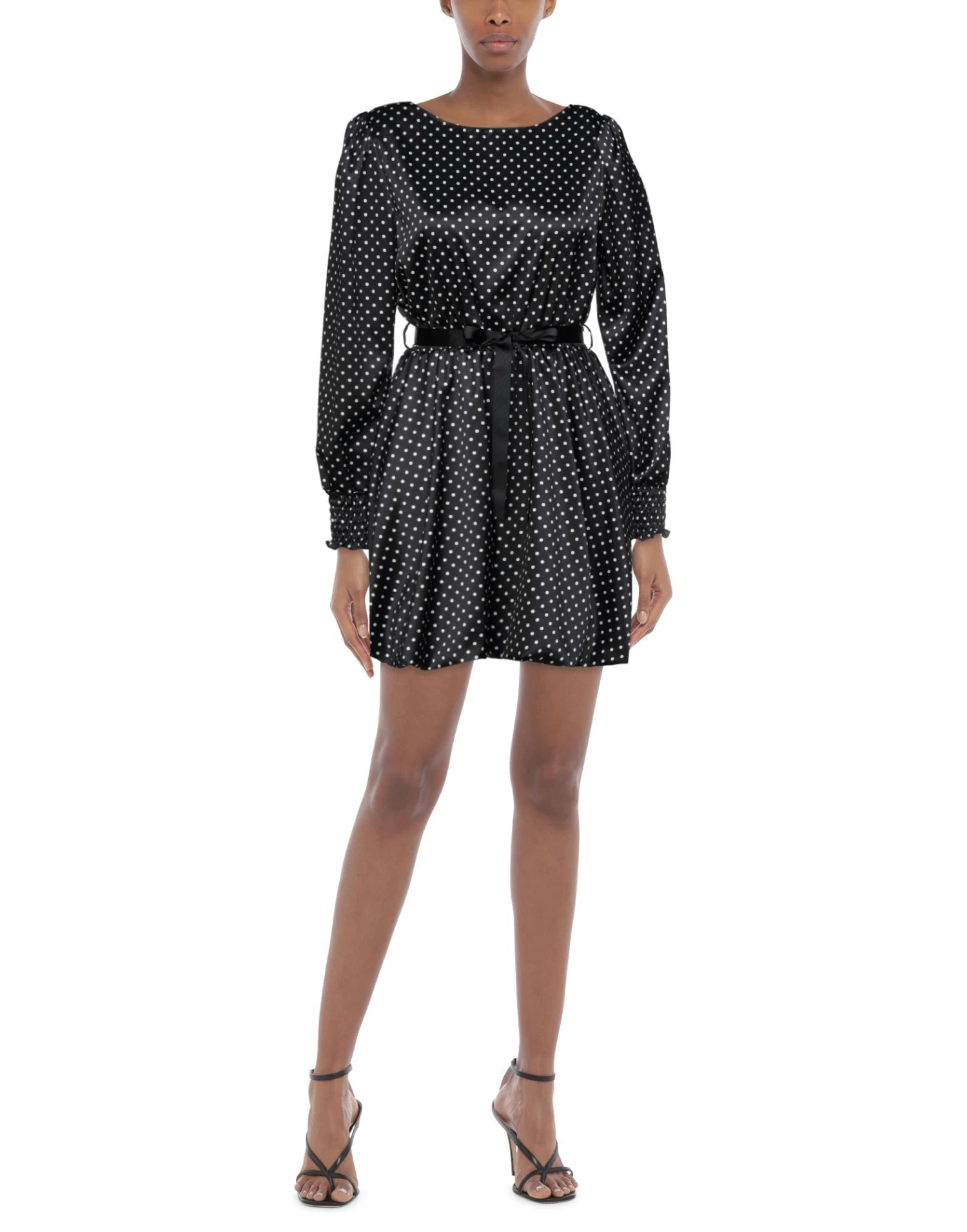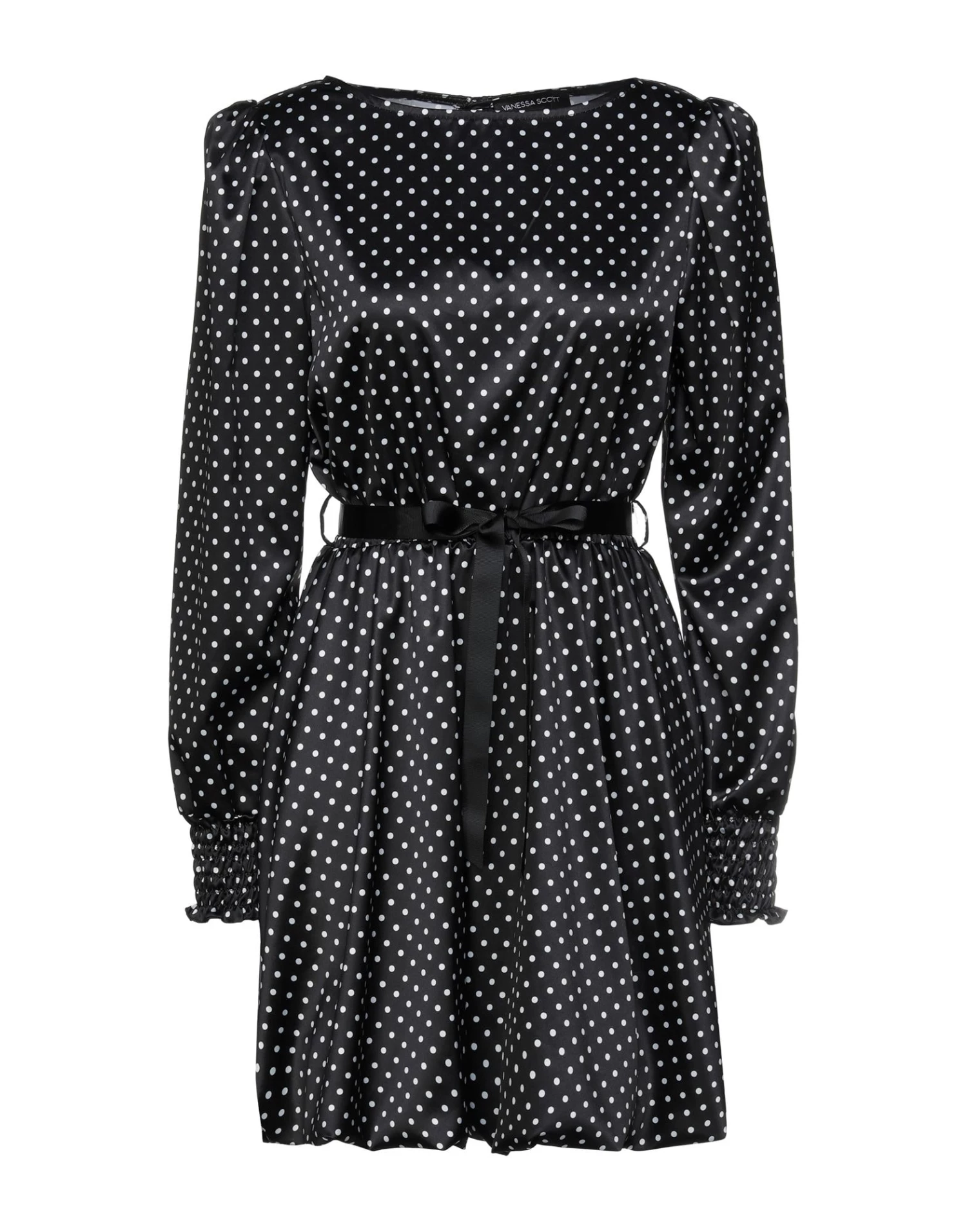 satin, sash, polka-dot, wide neckline, long sleeves, with shoulder pad, fully lined, 1 button, no pockets
