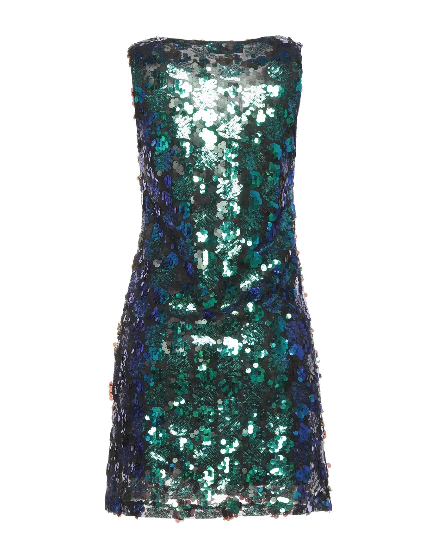 tulle, sequins, multicolor pattern, v-neck, sleeveless, fully lined, no pockets
