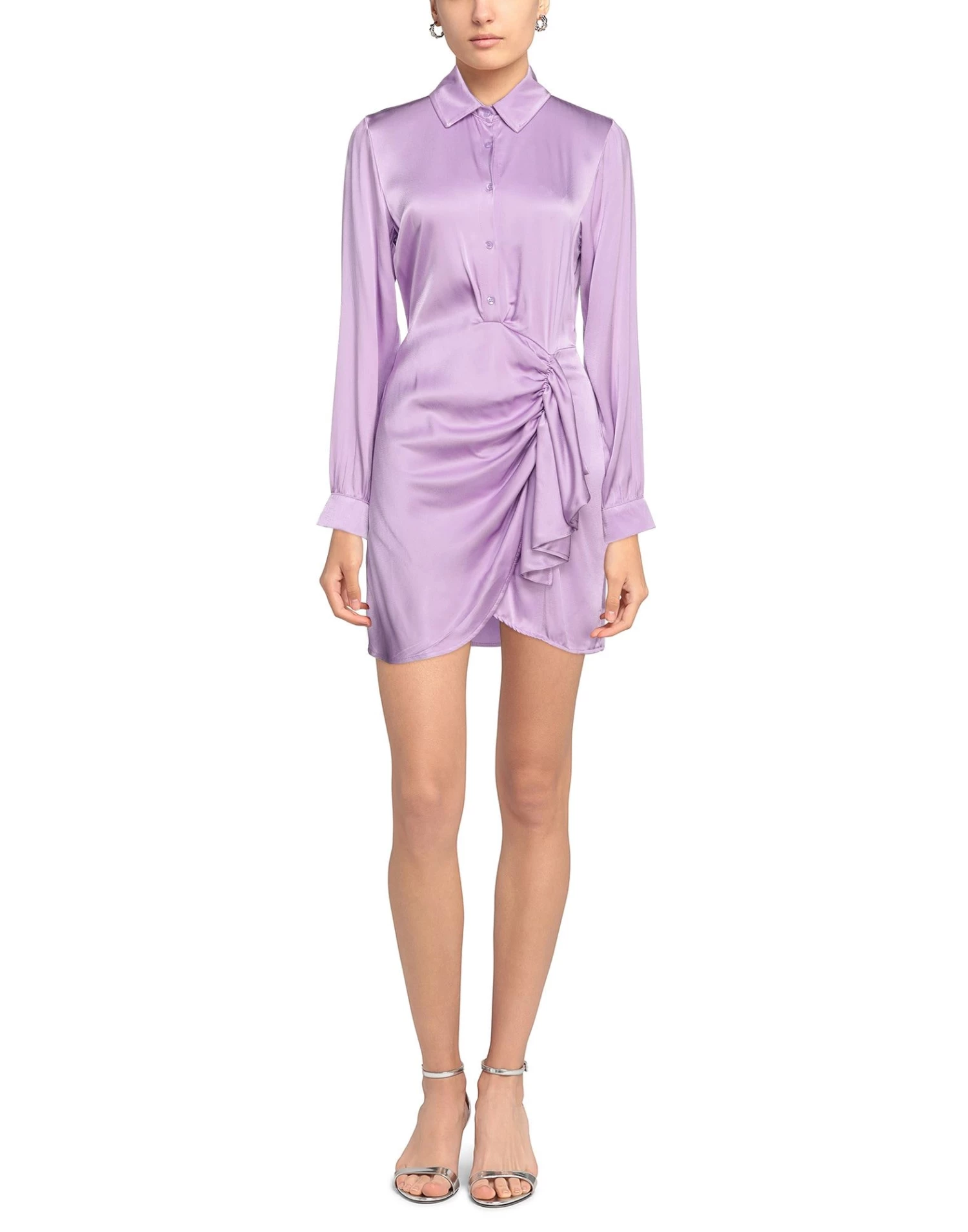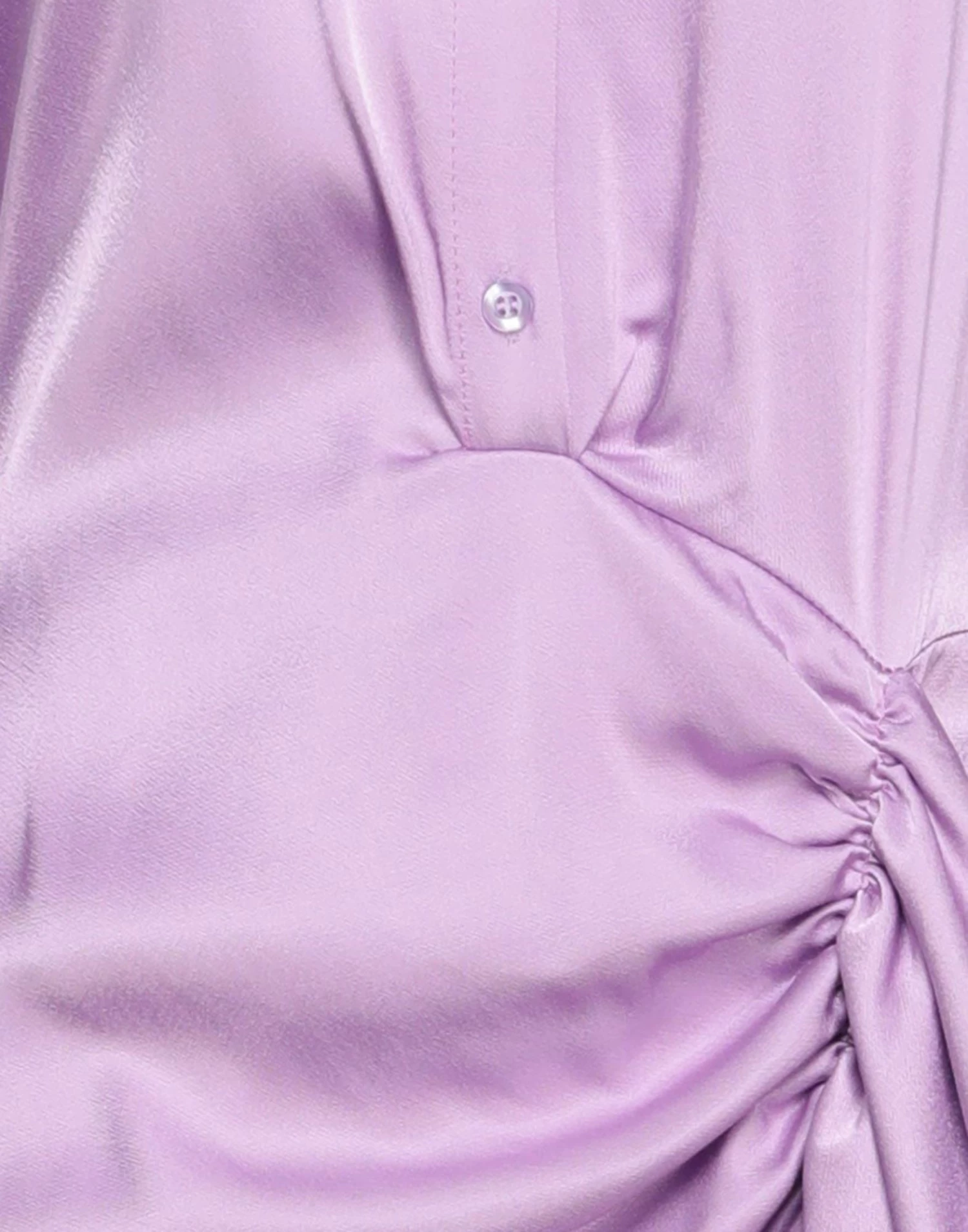 satin, no appliqués, solid color, classic neckline, long sleeves, unlined, button closing, zipper closure, no pockets, shirt dress