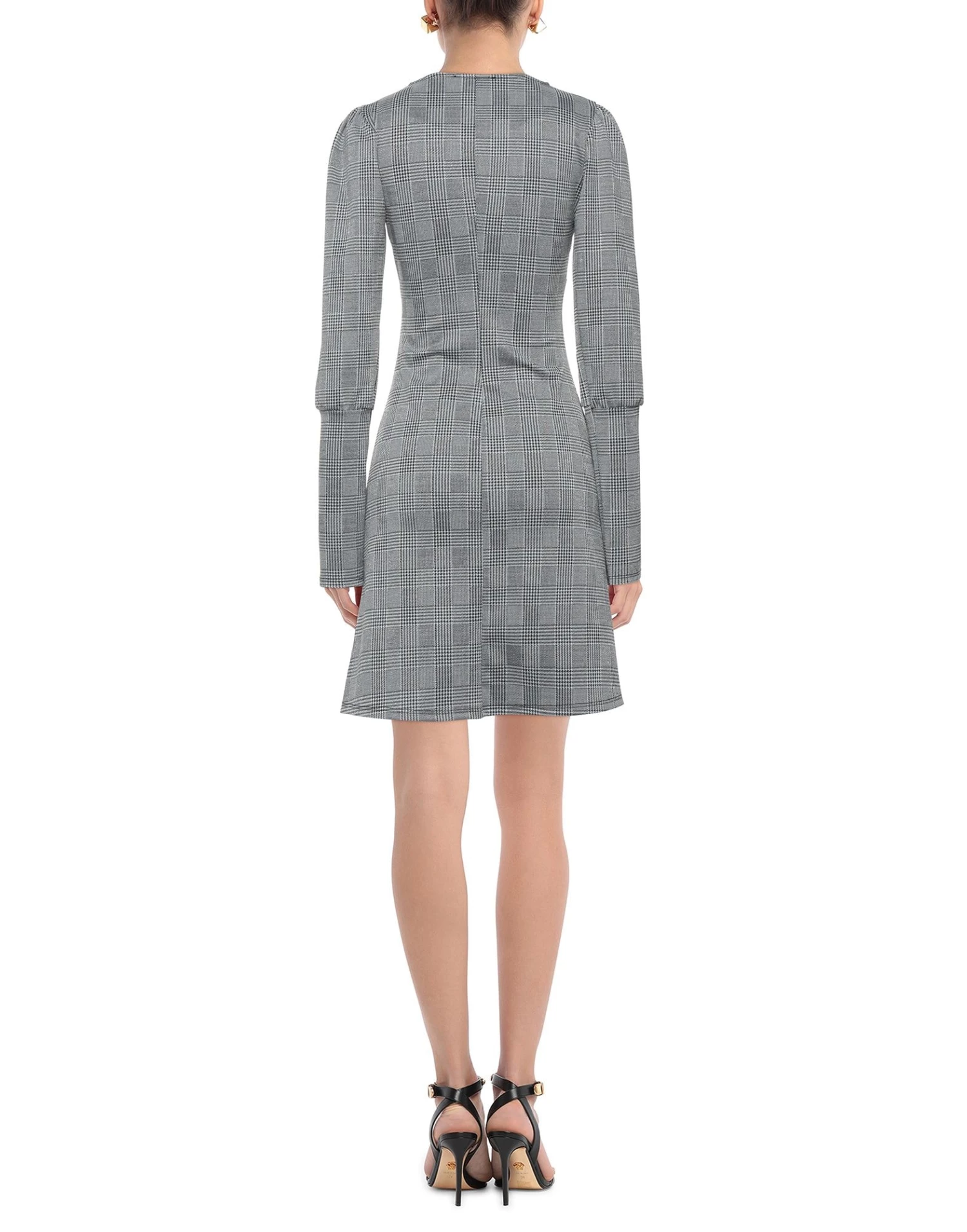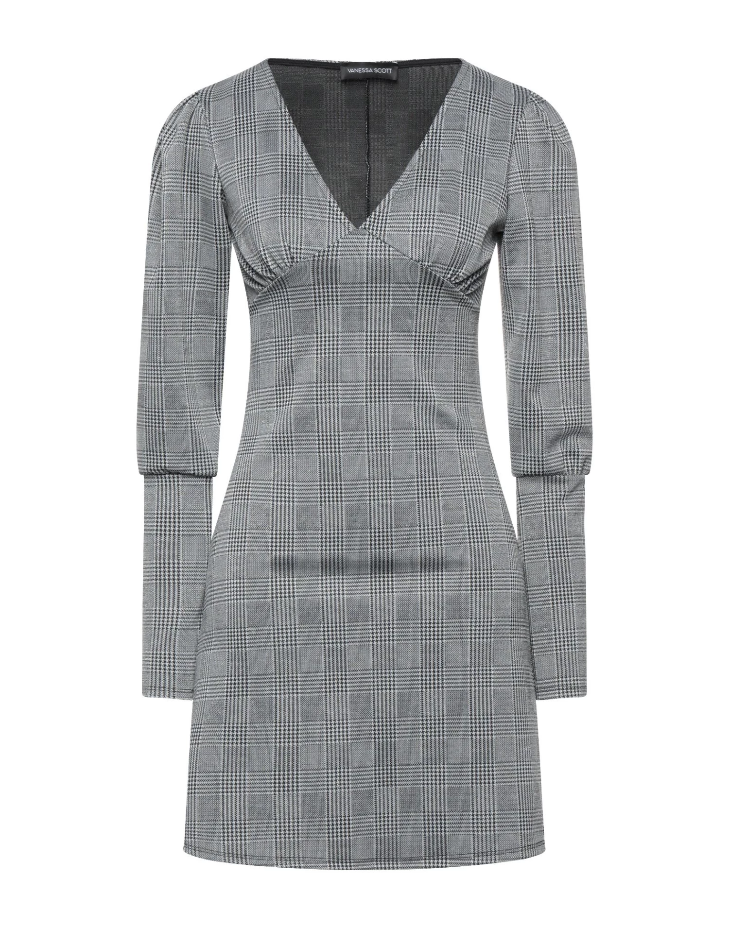 jersey, lamé, frills, glen plaid, unlined, v-neck, long sleeves, stretch