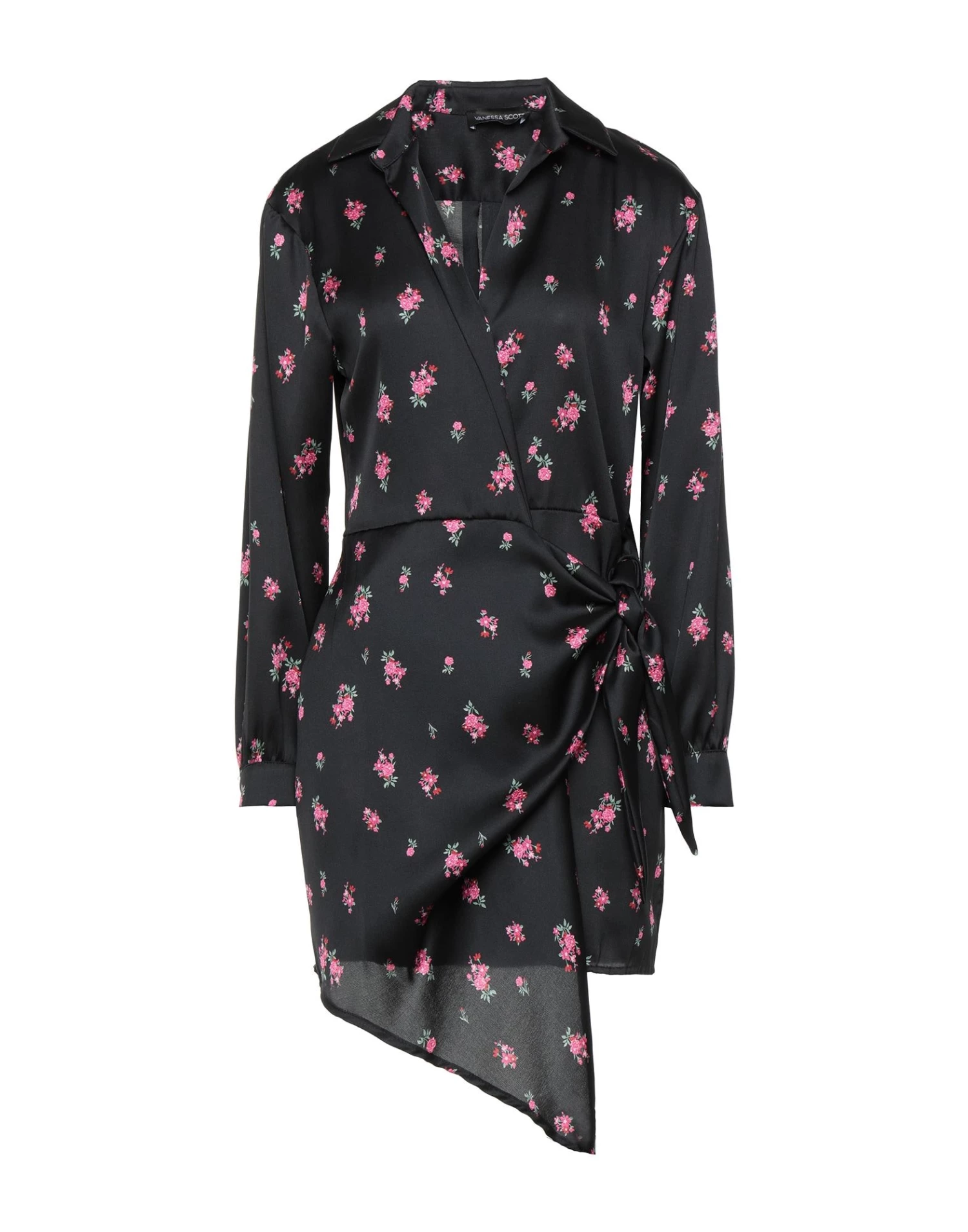 twill, no appliqués, floral design, deep neckline, long sleeves, buttoned cuffs, self-tie closure, no pockets, unlined