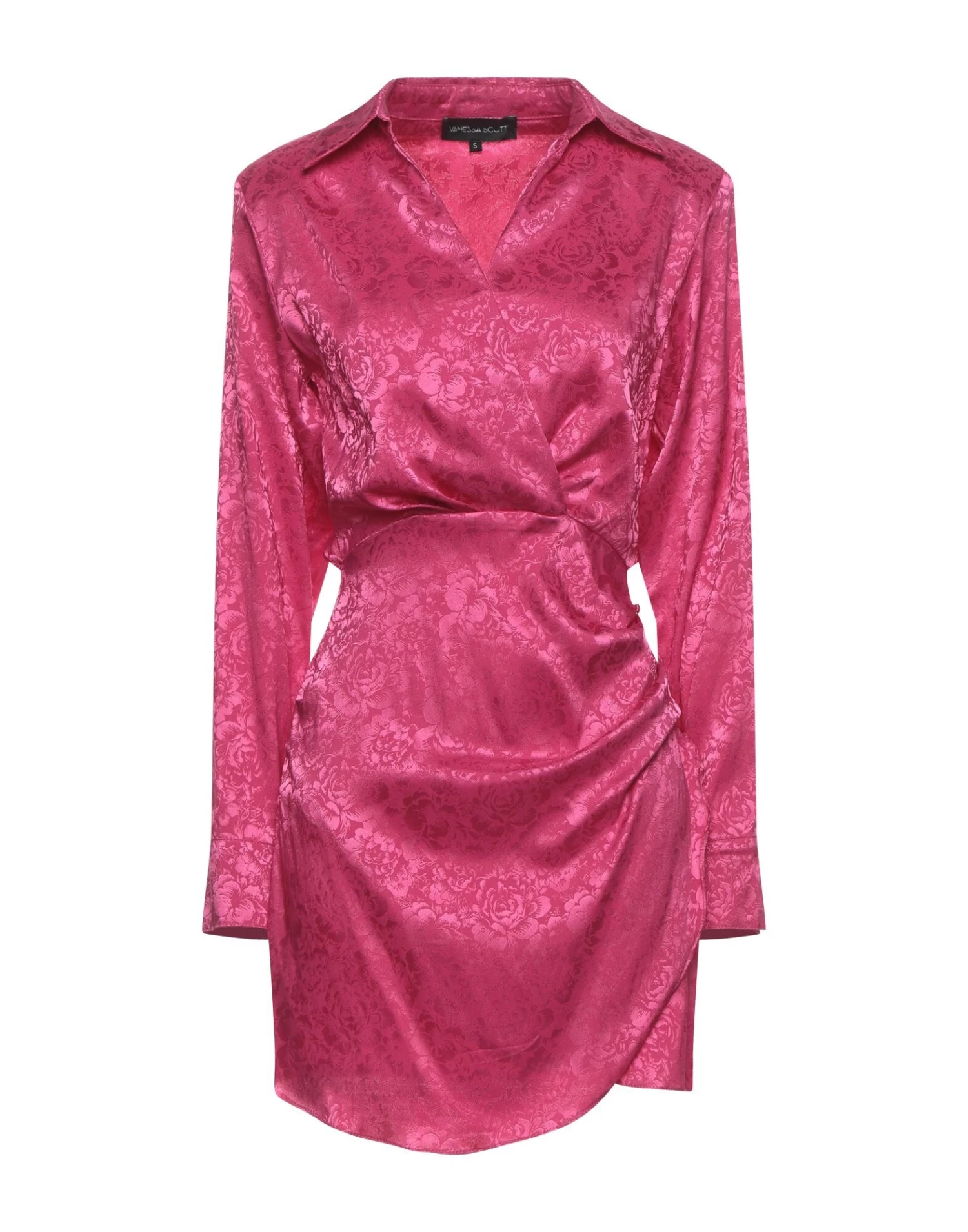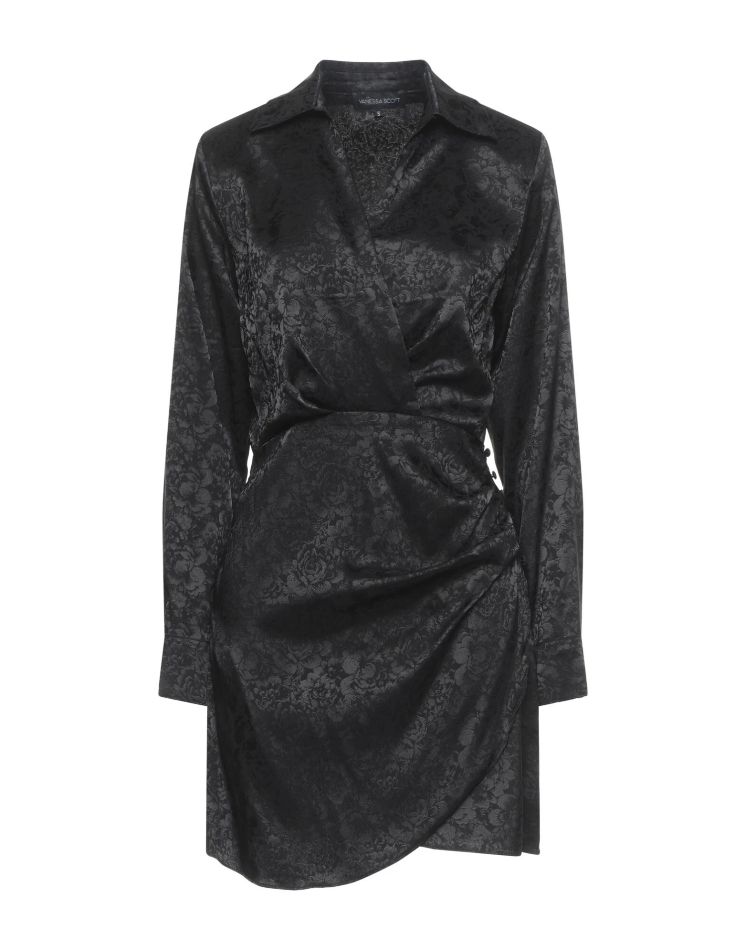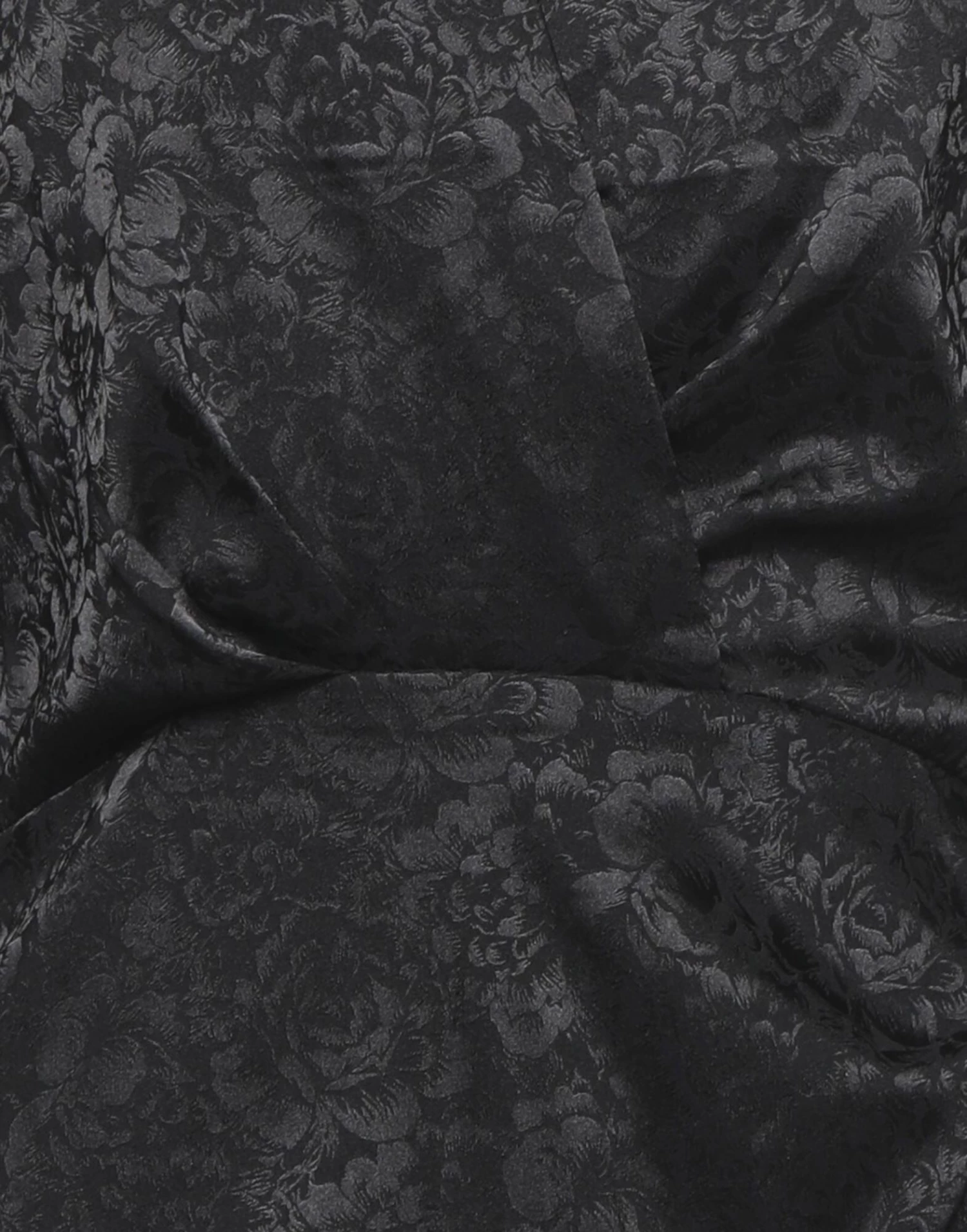 jacquard, satin, folds, draped detailing, solid color, deep neckline, long sleeves, unlined, zipper closure, no pockets