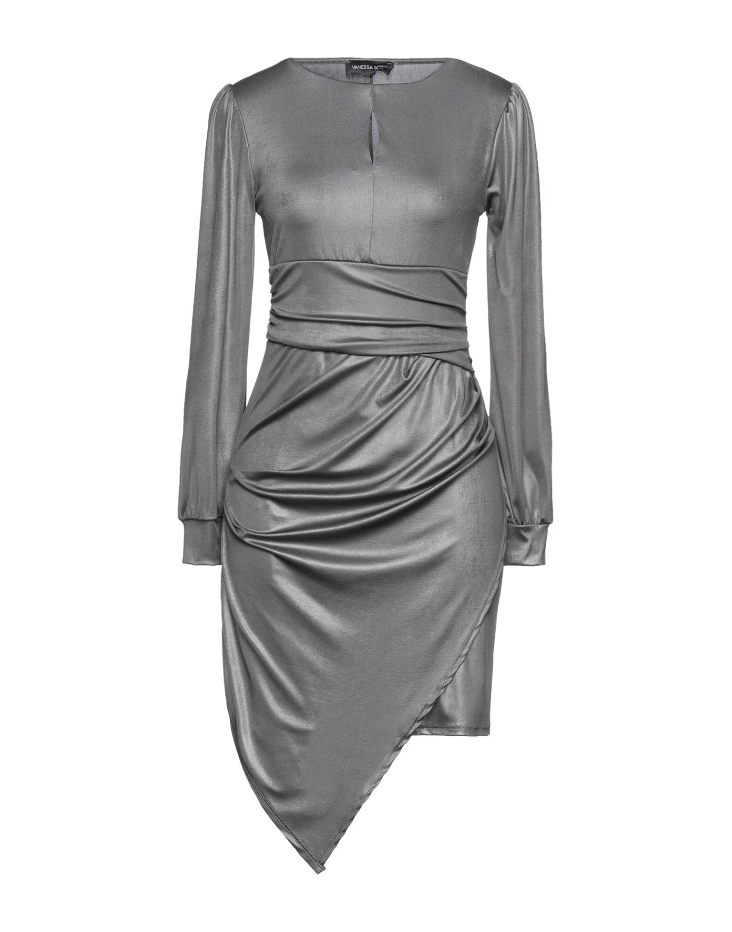 jersey, draped detailing, solid color, round collar, long sleeves, unlined, asymmetrical hemline, stretch, no pockets
